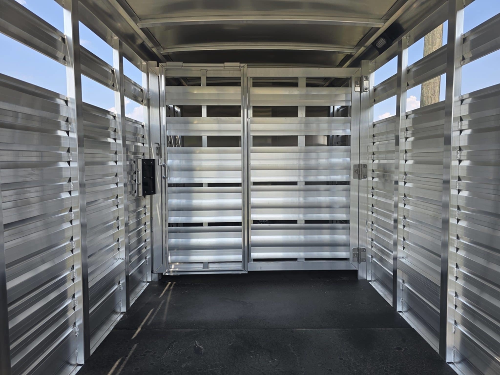 đź’Ą Welcome to Best Trailers & Supply – Your Ultimate Trailer Destination! đź’Ą 📍 Location: Byron, GA 🍑 📞 Call us at 478.654.5350 for Expert Advice and Unbeatable Deals! 🆓 Don’t Miss Out! Get a FREE White Wheel Spare Tire when you Pay Cash at Pick Up! 🆓 Exiss Express STK 613 BP Stock Trailer – Aluminum, 6′8″ Wide / 6′8″ Tall Built tough for hauling livestock, the Exiss Express STK 613 BP offers reliability, lightweight construction, and features tailored for rugged rural or farm use. Key Features: Outside Width: 6′8″ with inside height also 6′8″ – allows ample space for many types of livestock Length: 13′ floor box – compact yet very functional for shorter hauls or smaller lots Construction: All-aluminum exterior & frame for durability, corrosion resistance, and lighter towing effort Axles: (2) 3,500-lb rubber torsion axles with electric brakes for smoother ride and better handling Floorin Interlocking extruded aluminum non-skid plank floor, mounted over 2″×4″ I-beams spaced on approx. 12″ centers for strength & traction Gates & Access:• Full-swing center gate with a slider and heavy-duty slam latch for sorting/separating livestock• Full-swing rear gate with air gaps & an easy-glide slider rear door handle for smooth operation• 32″ side access (unload) door with dual air gaps for ventilation and ease of use Other Build Details:• Single piece aluminum roof for durability and watertight protection• Heavy-duty exterior lightin LED on both inside and out for visibility• Matching spare tire included• Tear-drop style aluminum fenders, full-width rubber bumper, treadplate gravel guard at nose to protect from road debris Why It’s a Smart Choice: This trailer is ideal for those who need a reliable, no-frills stock trailer that still delivers premium build quality. Perfect for weekend use, small ranches, or transporting livestock short distances, the STK 613 BP provides strength, functionality, and ease of towing. đźšš Delivery Available at $2 per Loaded Mile! đźšš 📞 For any questions, concerns, or info on this trailer, don’t hesitate to call our dedicated sales team at 478.654.5350! 📍 Visit us at Best Trailers & Supply in Byron, GA or call 478.654.5350 for more information! 🌟