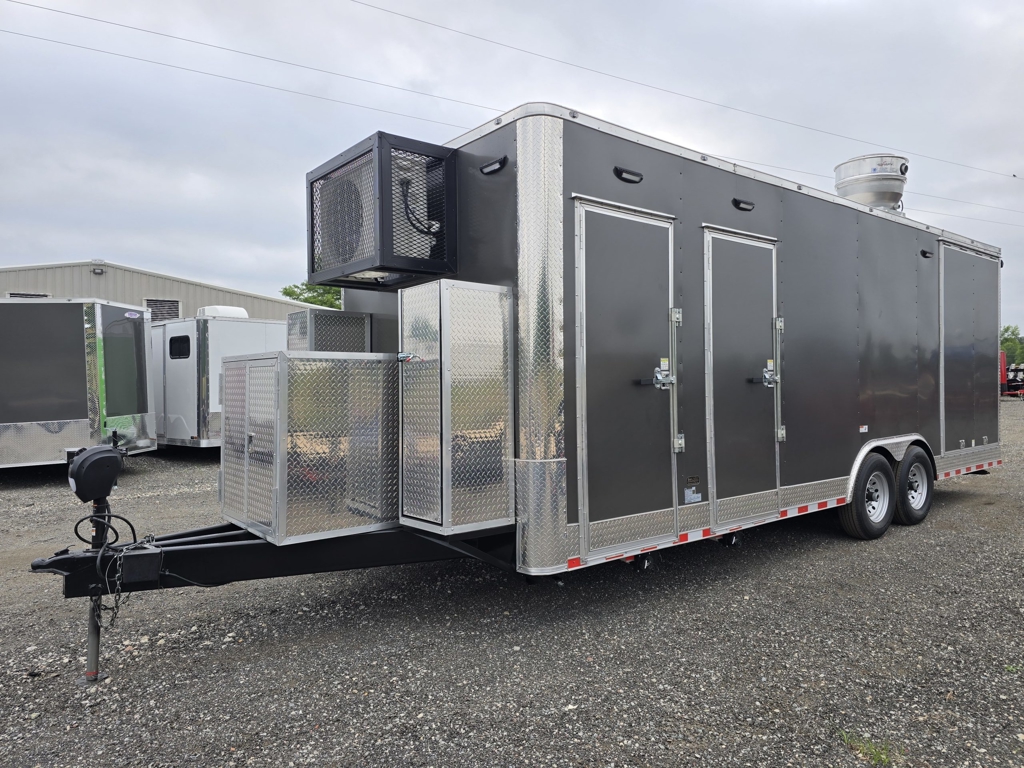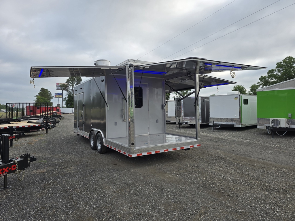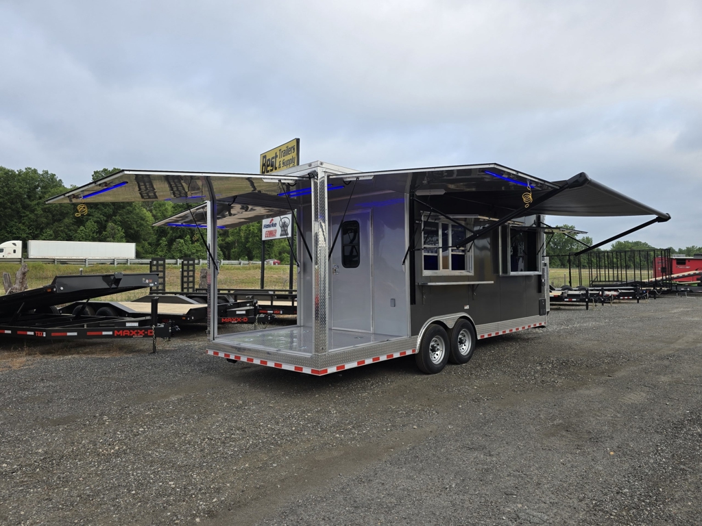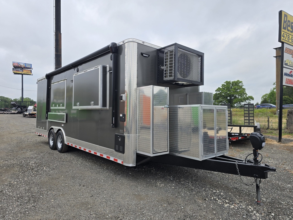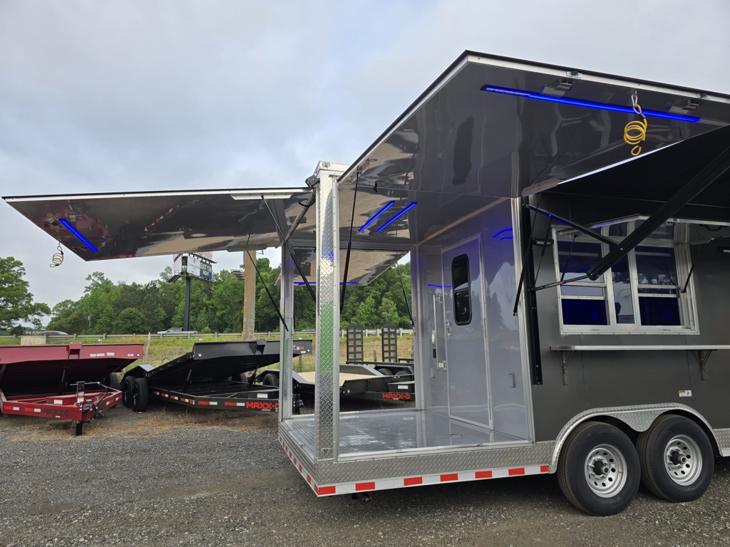 πŸ’₯ Welcome to Best Trailers & Supply – Your Ultimate Trailer Destination! πŸ’₯ πŸ“ Location: Byron, GA πŸ‘ πŸ“ž Call us at 478.654.5350 for Expert Advice and Unbeatable Deals! πŸ†“ Don’t Miss Out! Get a FREE White Wheel Spare Tire when you Pay Cash at Pick Up! πŸ†“ Empire Cargo 8.5×24 Concession Porch Trailer – Full Gull Wings + Bathroom Setup Take your mobile business to the next level with this Empire Cargo 8.5×24 Concession Porch Trailer, designed for serious vendors and event professionals. Packed with high-end features and built for functionality, this trailer delivers style, space, and convenienceβ€”all in one sharp-looking package. Key Features: Size: 8.5′ x 24′ enclosed plus porch Axles: Tandem 7,000 lb axles for a 10K GVWR Exterior: Full-height gull wing doors on the porch for wide-open serving space Interior Finish: Sleek silver metal walls and ceiling with rubber coin flooring Lightin 3 Function White and blue LED lighting throughout the trailer Service & Utility Features: 50 Amp Electrical Package for all your appliances and equipment Mini Split A/C Unit for climate control and comfort Sinks installed in the V-nose, with an overhead storage shelf 6′ Vent Hood Package – ready for your cook line setup Radio with built-in speakers to keep your workspace energized 16′ Electric Awning for shade and customer comfort Bathroom & Convenience: Built-in half bathroom at the front with a separate entrance – great for staff use Side entry door for easy access Generator box on extended tongue with slide-out tray for ventilation and service Two propane tank holders mounted for cooking equipment Porch Setup: Spacious rear porch with aluminum tread plate flooring for durability and grip Ideal for grilling, vending, or displaying product Full-height gull wings create a dynamic, inviting presentation space Built for mobile food service, merchandising, or event activation, this trailer is as functional as it is eye-catching. With comfort, convenience, and serious cooking capability, the Empire Cargo Concession Porch Trailer checks every box. 🚚 Delivery Available at $2 per Loaded Mile! 🚚 πŸ“ž For any questions, concerns, or info on this trailer, don’t hesitate to call our dedicated sales team at 478.654.5350! πŸ“ Visit us at Best Trailers & Supply in Byron, GA or call 478.654.5350 for more information! 🌟