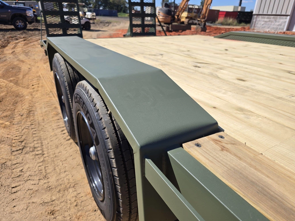 πŸ’₯ Welcome to Best Trailers & Supply – Your Ultimate Trailer Destination! πŸ’₯ πŸ“ Location: Byron, GA πŸ‘ πŸ“ž Call us at 478.654.5350 for Expert Advice and Unbeatable Deals! πŸ†“ Don’t Miss Out! Get a FREE White Wheel Spare Tire when you Pay Cash at Pick Up! πŸ†“ 8β€² x 24β€² Drive-Over Fender Trailer with Dovetail and Ramps Built for versatility and durability, the 8β€² x 24β€² Drive-Over Fender Trailer is perfect for transporting wide equipment, vehicles, or heavy loads. With a rugged design, premium components, and a high load capacity, this trailer is engineered to handle demanding jobs while providing convenience and reliability. Key Features Heavy-Duty Capacity: Equipped with (2) 8000 lb E-Z Lube axles, offering a 16,000 lb GVWR for heavy-duty hauling. Electric brakes on both axles ensure safe and efficient stopping power. Convenient Loading Features: Drive-over fenders allow easy loading of wider equipment or vehicles. Dovetail with loading ramps provides smooth and efficient loading and unloading. Durable Construction: Wood deck made of 2Γ—8 treated pine for strength and durability. Heavy-duty headache bar for added safety and protection. Stake pockets and DOT reflective tape ensure secure cargo tie-downs and visibility. Reliable Components: 10K jack and 2-5/16β€³ coupler for stable towing and easy hitching. LED lights and sealed wiring harness for enhanced safety and low-maintenance operation. Fully NATM compliant, meeting the highest industry standards. Options and Customization Upgrade to a steel tread plate deck for added durability. Choose from multiple color options to match your style. Add a spare tire mount and spare tire for added convenience. The 8β€² x 24β€² Drive-Over Fender Trailer is ideal for contractors, landscapers, and anyone needing a reliable and versatile trailer for transporting wide or heavy loads. Contact us today to learn more about this trailer and customize it to meet your specific needs! 🚚 Delivery Available at $2 per Loaded Mile! 🚚 πŸ“ž For any questions, concerns, or info on this trailer, don’t hesitate to call our dedicated sales team at 478.654.5350! πŸ“ Visit us at Best Trailers & Supply in Byron, GA or call 478.654.5350 for more information! 🌟