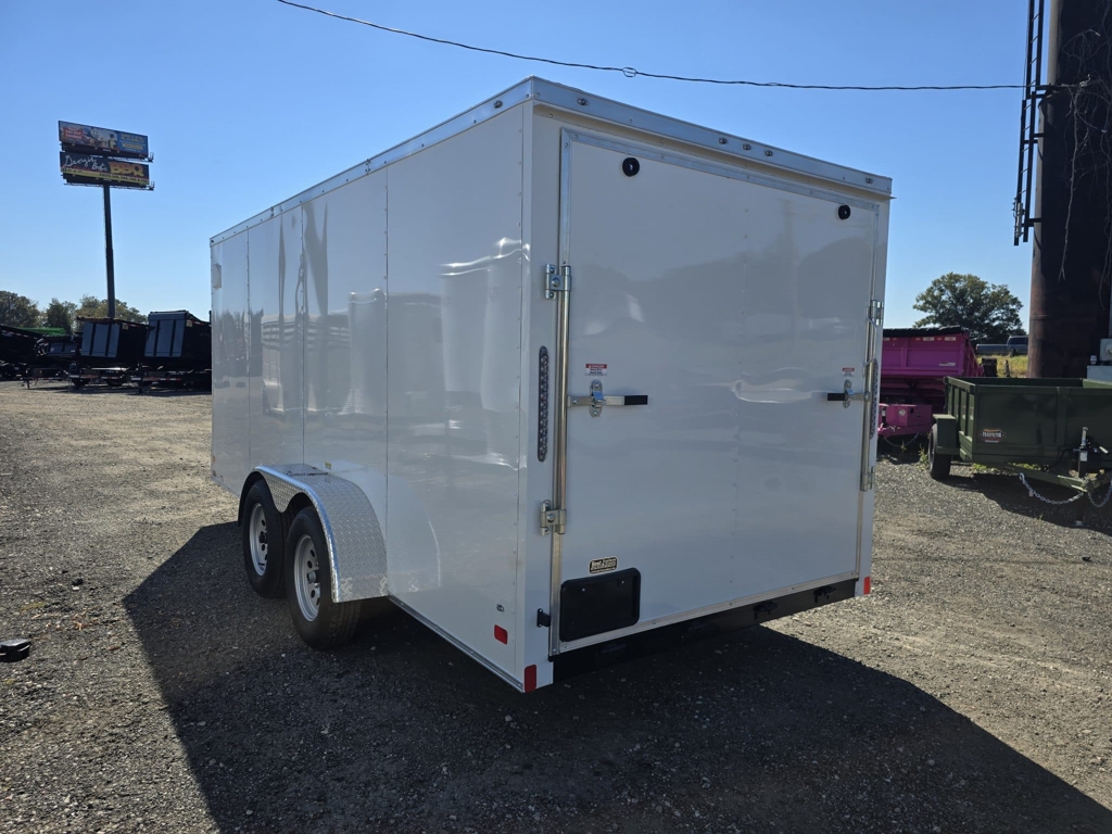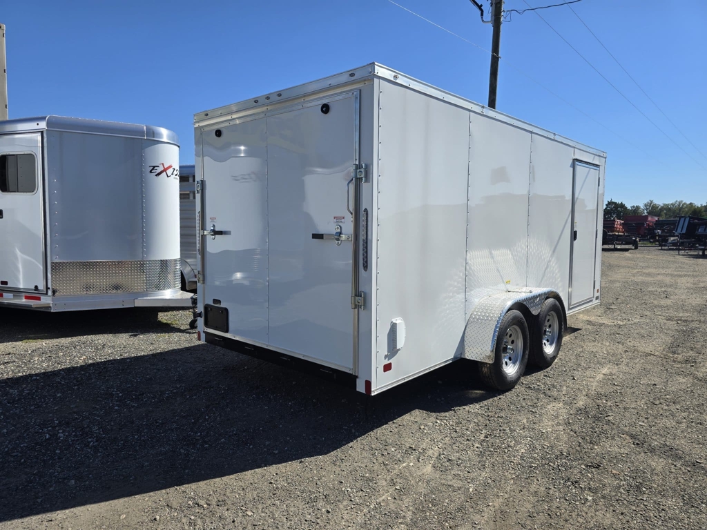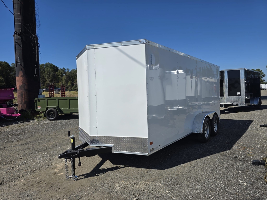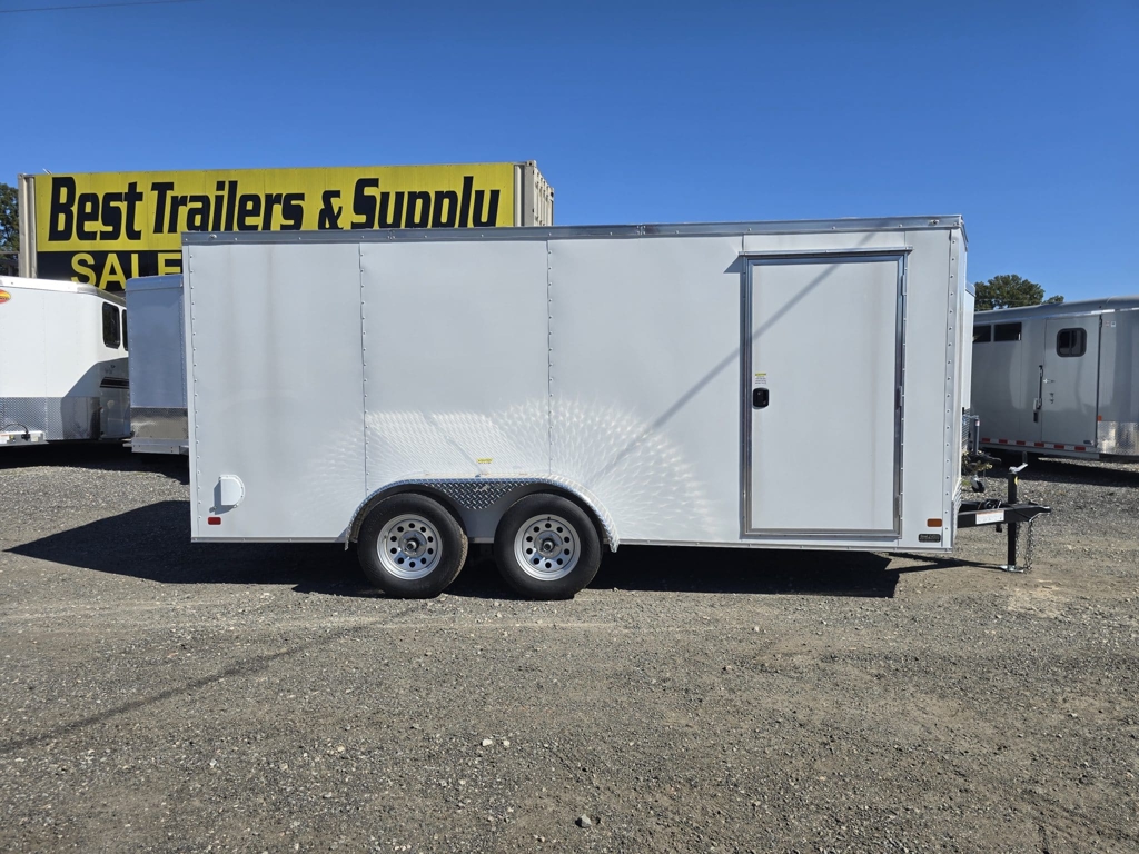πŸ’₯ Welcome to Best Trailers & Supply – Your Ultimate Trailer Destination! πŸ’₯ πŸ“ Location: Byron, GA πŸ‘ πŸ“ž Call us at 478.654.5350 for Expert Advice and Unbeatable Deals! 7Γ—16 Economy Grade Trailer with Upgrades This 7Γ—16 economy-grade trailer is an excellent option for light-duty use and personal projects. Please note that this trailer is not recommended for commercial applications. Standard Features Enhanced Space: V-nose design adds 2β€² of interior space. Durable Build: Screwed exterior, galvalume roof, and 24β€³ on-center roof members for added strength. Reliable Axle System: 3500# leaf spring drop axle with electric brakes and E-Z lube hubs for smooth operation. Interior Construction: 3/8β€³ plywood walls for durability. 16β€³ on-center floor supports with plywood flooring. Convenience Features: 12-volt LED dome light for interior visibility. Non-powered roof vent for ventilation. 36β€³ side door with RV-style locks for secure access. Functional Ramp Design: Trimmed ramp for easier loading and unloading. Additional Safety: 7-way connector and electric breakaway system. 2-5/16β€³ coupler for secure towing. Protective Elements: 12β€³ ATP stone guard and J-rail. Aluminum teardrop-style fenders. Stylish Look: .024 aluminum exterior. White mod rims with ST205 15β€³ steel-belted tires. Lighting and Visibility: Full LED light package and deluxe tag bracket for better visibility on the road. This trailer is built with an economy-grade 4β€³ tube frame, making it ideal for personal use but not suited for heavy-duty or commercial tasks. 🚚 Delivery Available at $2 per Loaded Mile! 🚚 πŸ“ž For any questions, concerns, or info on this trailer, don’t hesitate to call our dedicated sales team at 478.654.5350! πŸ“ Visit us at Best Trailers & Supply in Byron, GA or call 478.654.5350 for more information! 🌟