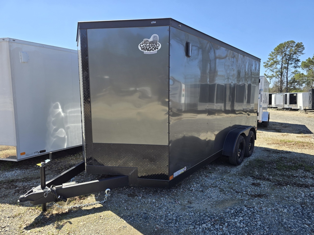 Price: $6,595.00 Enclosed 2024 7X16 Covered Wagon Trailers 7×16 blackout enclosed trailer w extra wide doors E Year: 2024 Model: 7X16 Blackout Enclosed Trailer W Extra Wide Doors Make: Covered Wagon Trailers Condition: New Contact Us