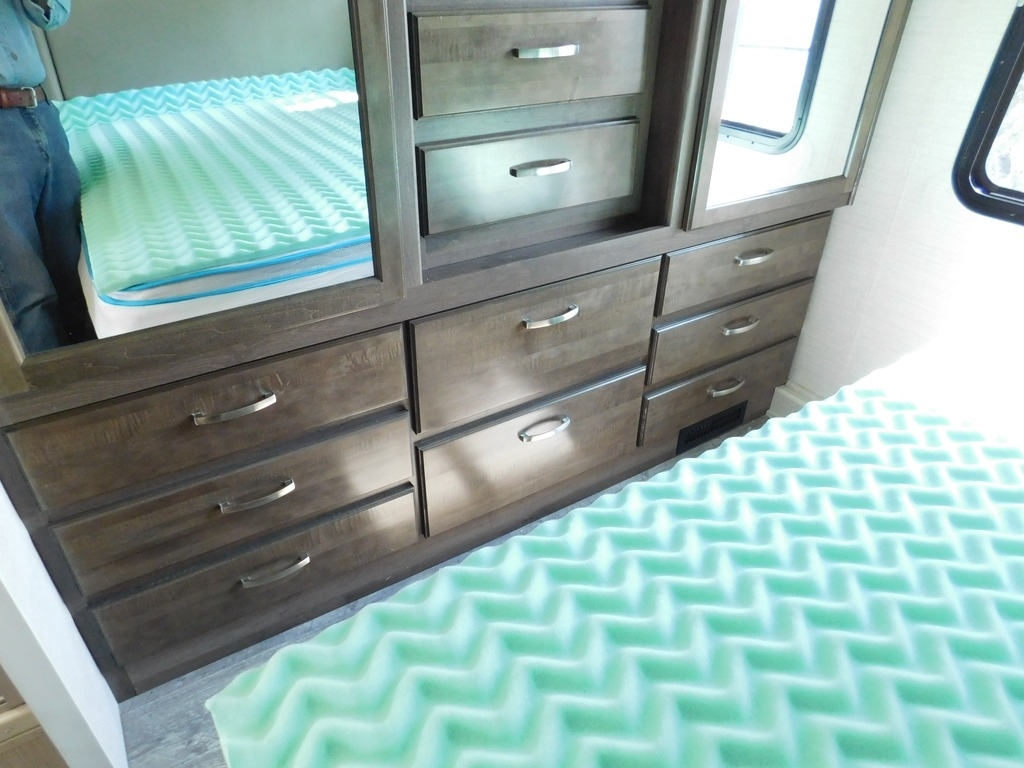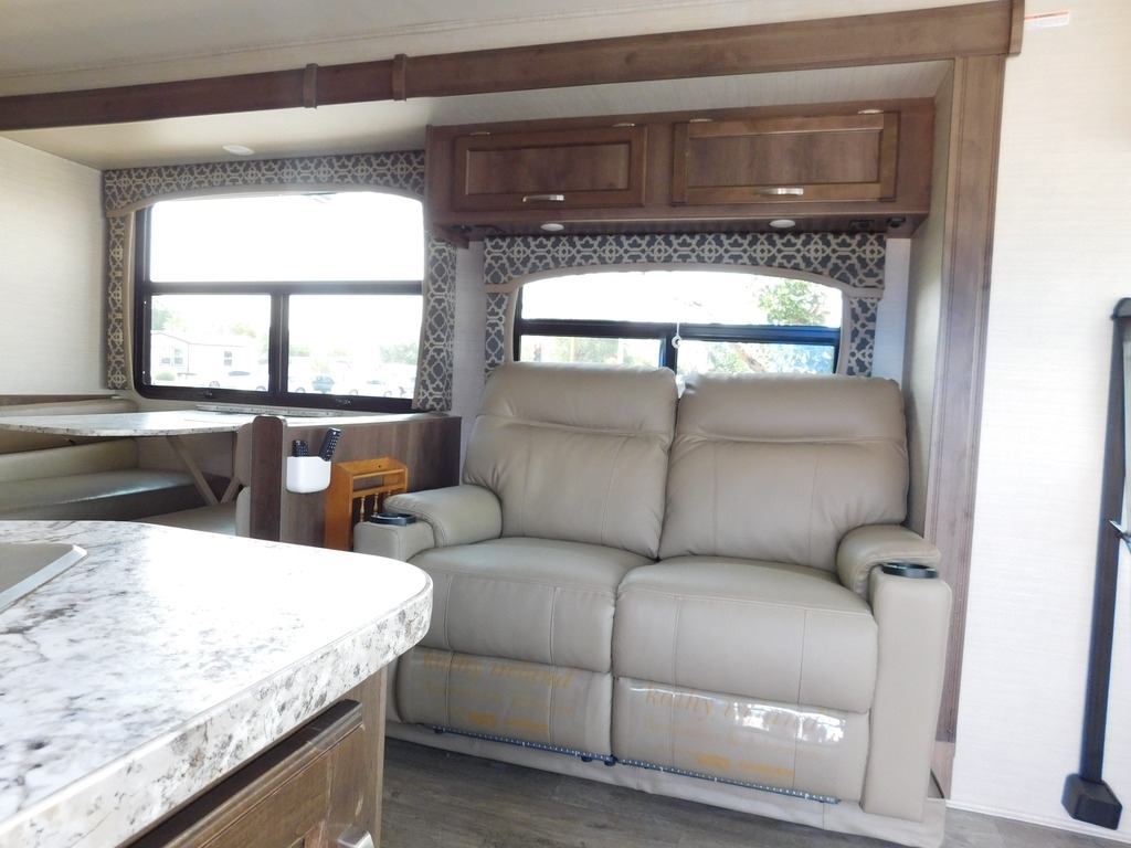 Featuring a walk around bed in the master bedroom, and large cabinets for whatever you have. The dinette folds down into a double bed. Two recliners that could be used for sleeping.