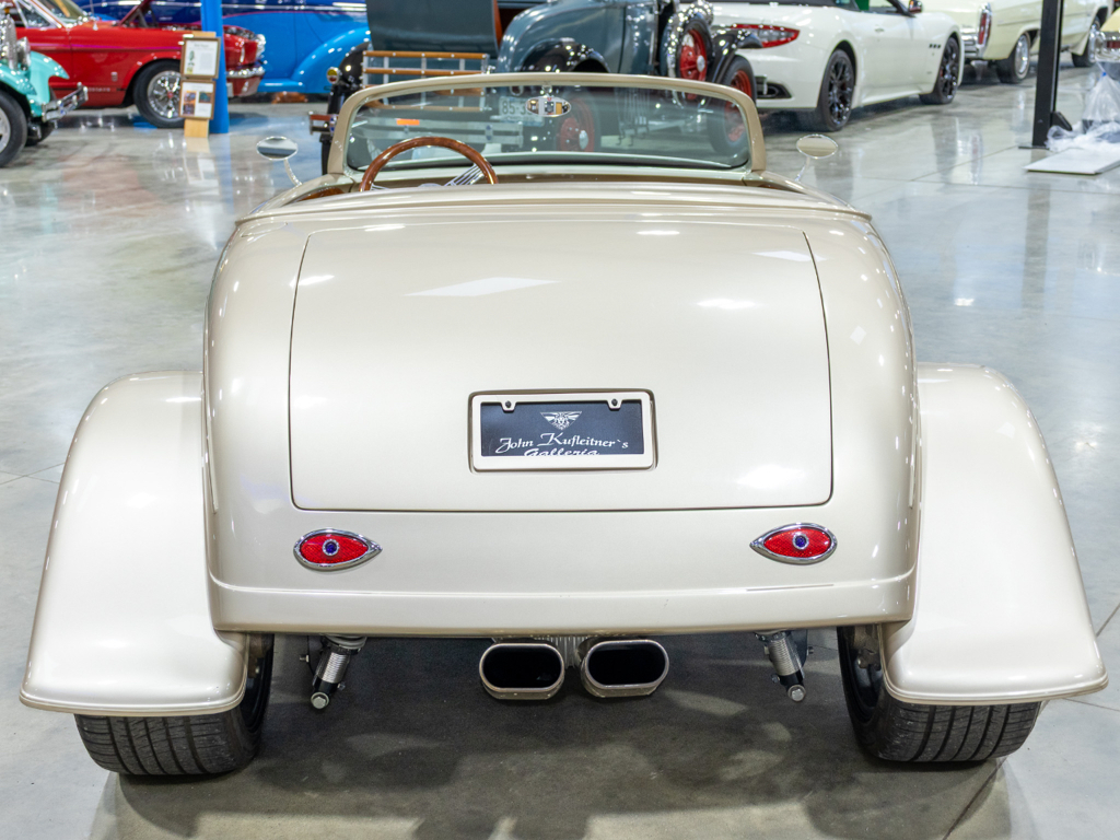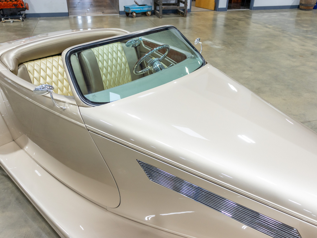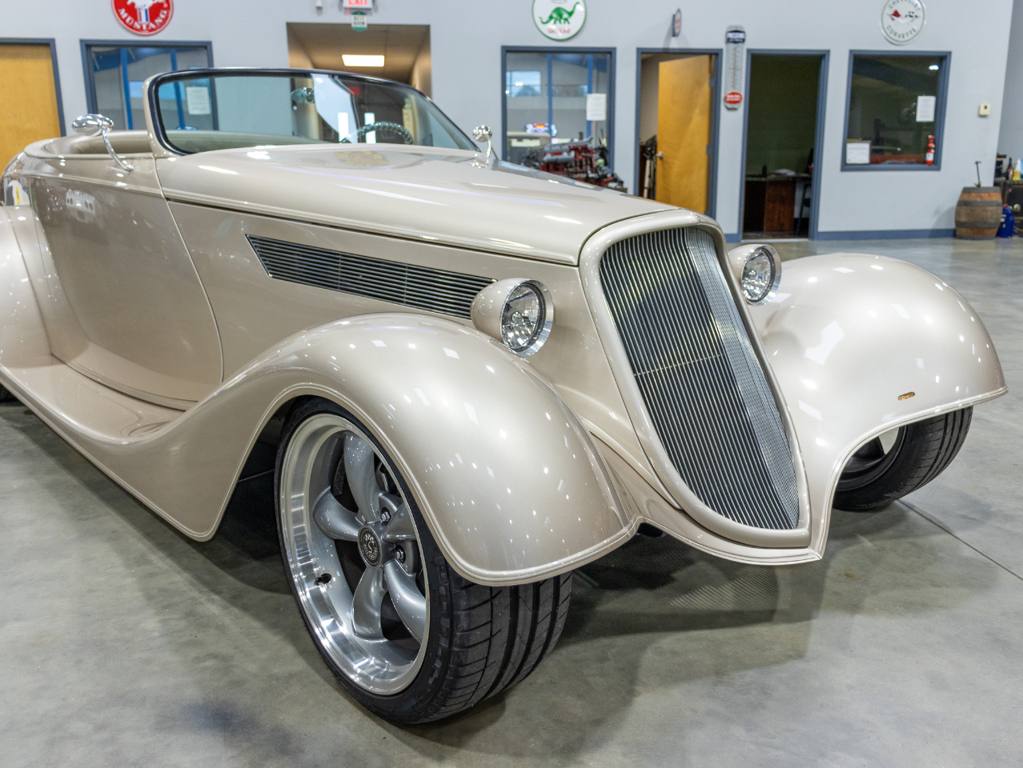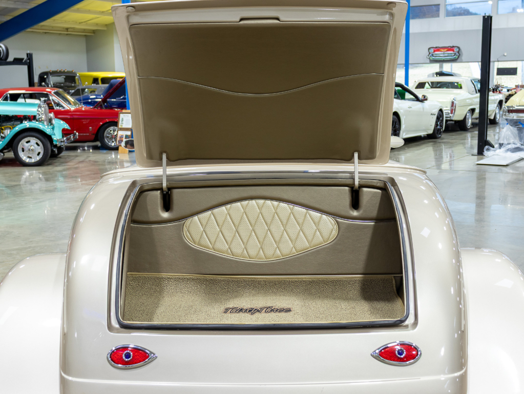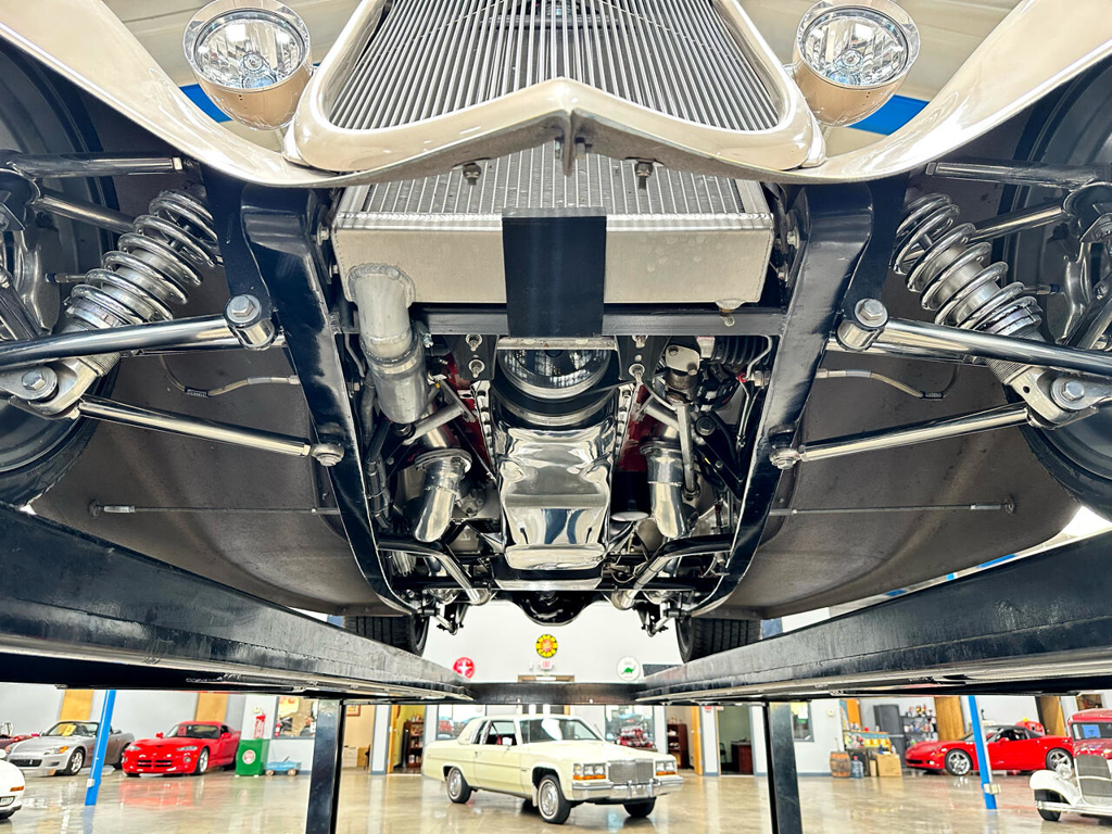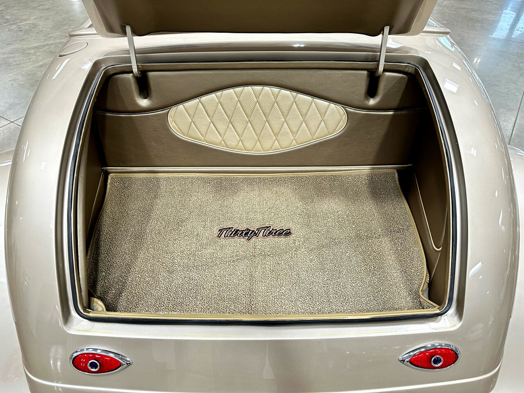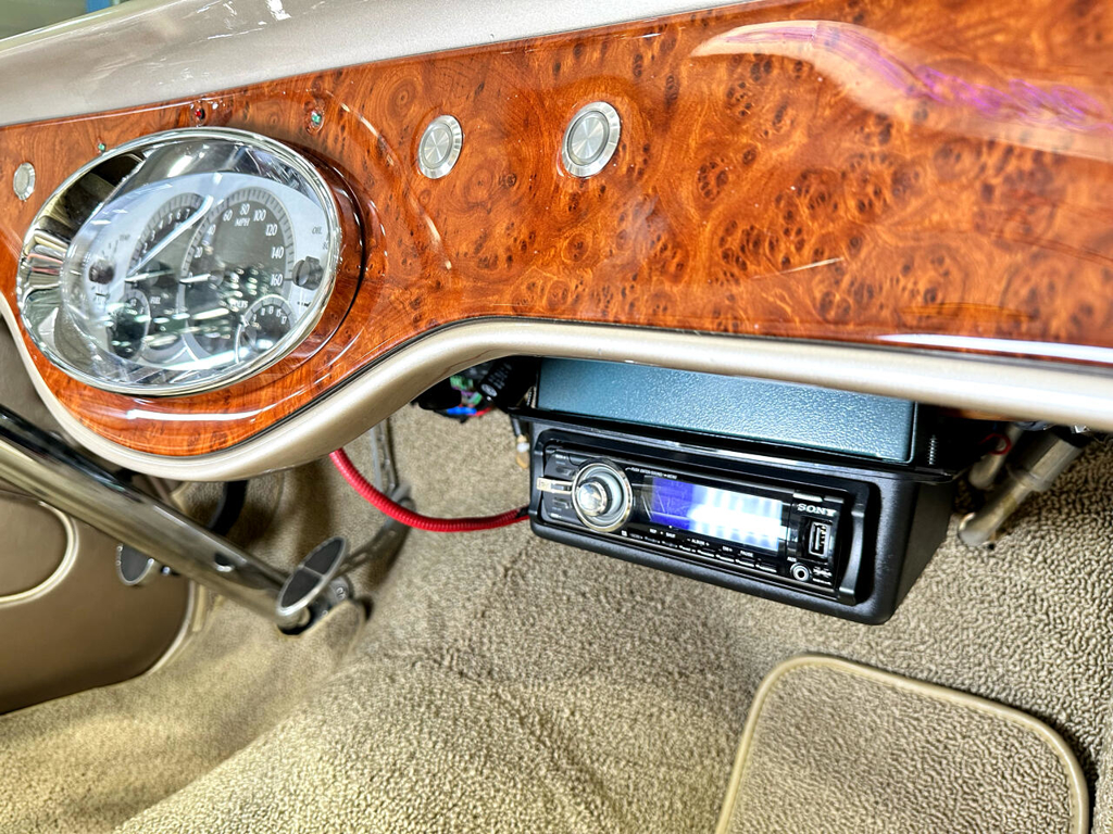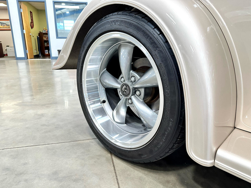 This street rod was built under previous ownership utilizing a full-fendered Factory Five Racing fiberglass body styled to resemble a 1933 Ford Roadster. It is finished in champagne beige and mounted on the Factory Five boxed steel frame. Power is provided by a 468ci stroker V8 paired with a four-speed automatic transmission, and the build also incorporates independent front suspension, a four-link rear setup, adjustable coilovers, rack-and-pinion steering, four-wheel disc brakes, staggered-diameter Torq Thrust-style wheels, a power-operated trunk, and a Ford 9 rear end. The cabin features two-tone dark beige and gold vinyl upholstery, bucket seats, wood veneer trim, a tilt-adjustable steering column, and Digital Dakota instrumentation. The full-fendered fiberglass body is finished in champagne beige, and it rides on a black-painted boxed steel frame. Exterior details include hood side-panel vents, running boards, reverse-hinged doors, and dual mirrors with integrated signal lights as well as a power-operated trunk lid and flush-mounted LED taillights. Staggered-diameter Torq Thrust-style wheels are finished in pewter and mounted with 245/35-17 front and 285/35-18 rear tires. Independent front suspension incorporates polished tubular A-arms and adjustable coilovers from Kugel Komponents, while the rear utilizes a triangulated four-link setup and adjustable QA1 coilovers. Braking is provided by four-wheel discs with polished Wilwood calipers up front, and the car is also equipped with rack-and-pinion steering.The interior features bucket seats and door panels trimmed in dark beige vinyl with gold diamond-quilted inserts, and the trunk is upholstered to match. The color-coordinated carpeting is overlaid with matching embroidered mats, and additional amenities include a push-button starter, a hard-wired remote control for the power trunk lid, and a Sony CD receiver.A woodgrain banjo-style steering wheel mounted atop a chrome tilt-adjustable column fronts a wood-veneer dashboard and a Dakota Digital elliptical instrument panel with an overlapping 160-mph speedometer, 8k-rpm tachometer, fuel-level gauge, and voltmeter flanked by coolant-temperature and oil-pressure gauges. The digital odometer indicates 522 miles.The Chevrolet 468ci stroker V8 is said to be based on a 427 block, and it breathes through a Holley four-barrel carburetor, an Edelbrock intake manifold, a K&N open-element air filter, and block-hugger headers flowing into a ceramic-coated dual exhaust system equipped with Magnaflow mufflers. Additional equipment includes an aluminum radiator, an electric fan, Smeding Performance valve covers, and an MSD Blaster 2 coil. Power is sent to the rear wheels through a 700R4 four-speed automatic transmission with a frame-rail-mounted cooler and a Ford 9? rear end with a 3.73:1 final gear set.The car has a clear Ohio title. It was assigned a VIN Identification Number CA959463 in California at time of completion where it was Inspected and first titled. Local to our Dealership? We are Open Monday-Friday 9-5!Not Local... NO Problem! We can organize delivery right to your door We ship over 200 vehicles every year...We are your Collector car Specialist and Shipping Experts! Financing is Available on all vehicles! Call with any Questions-*** HAVE QUESTIONS? No Problem!! *** Call or Text: -Mark (Showroom Manager) 808-286-8101 or-Chris (Online Sales) 330-990-6970