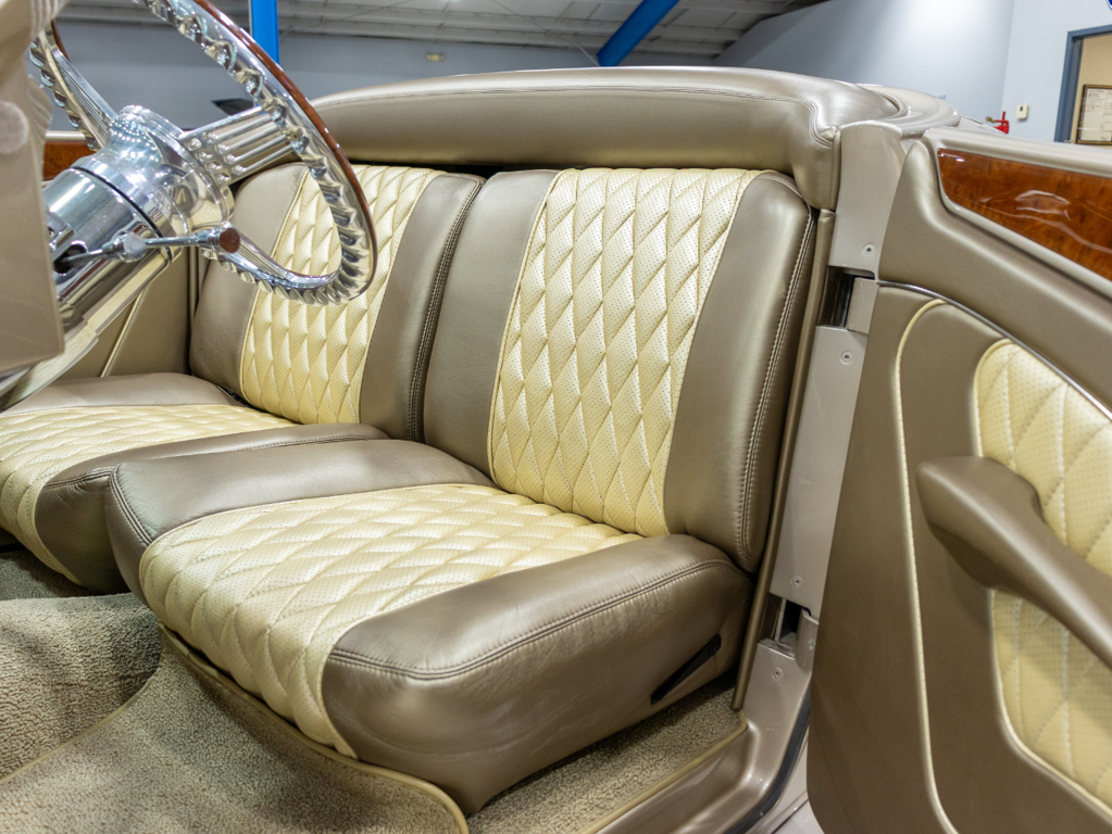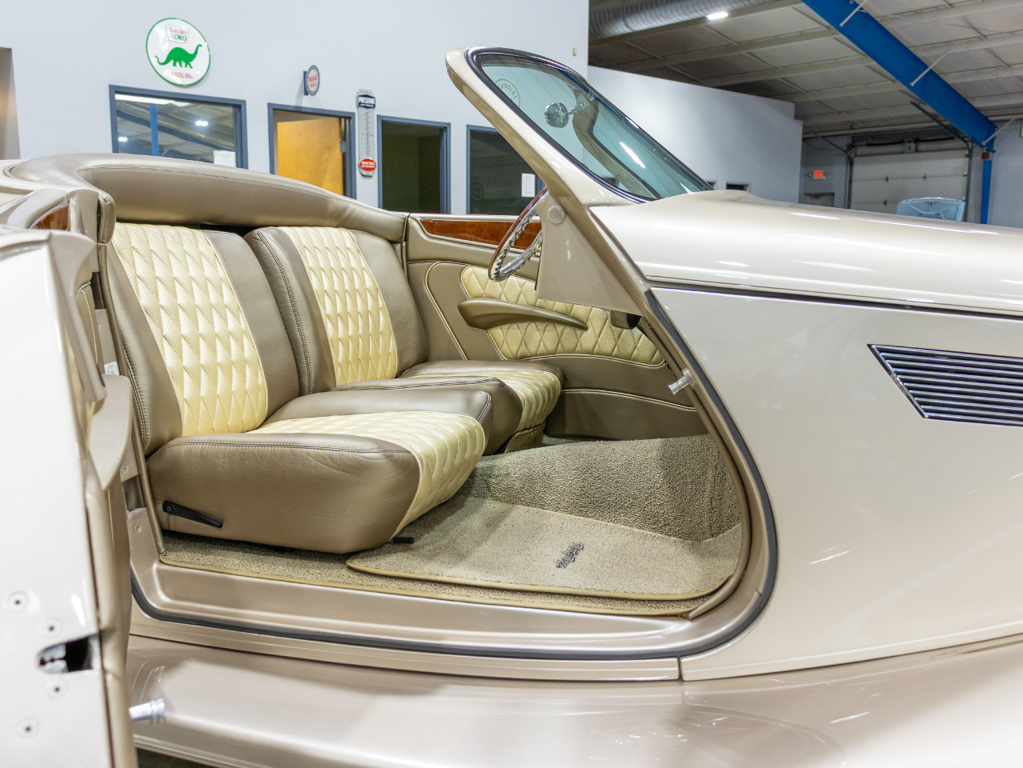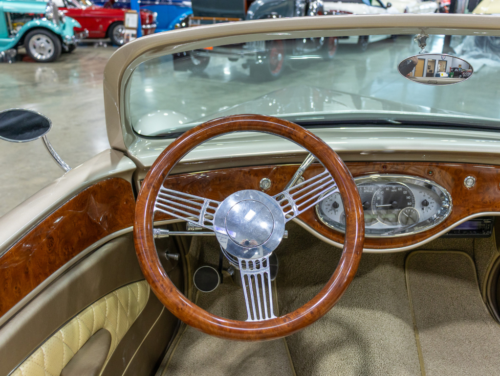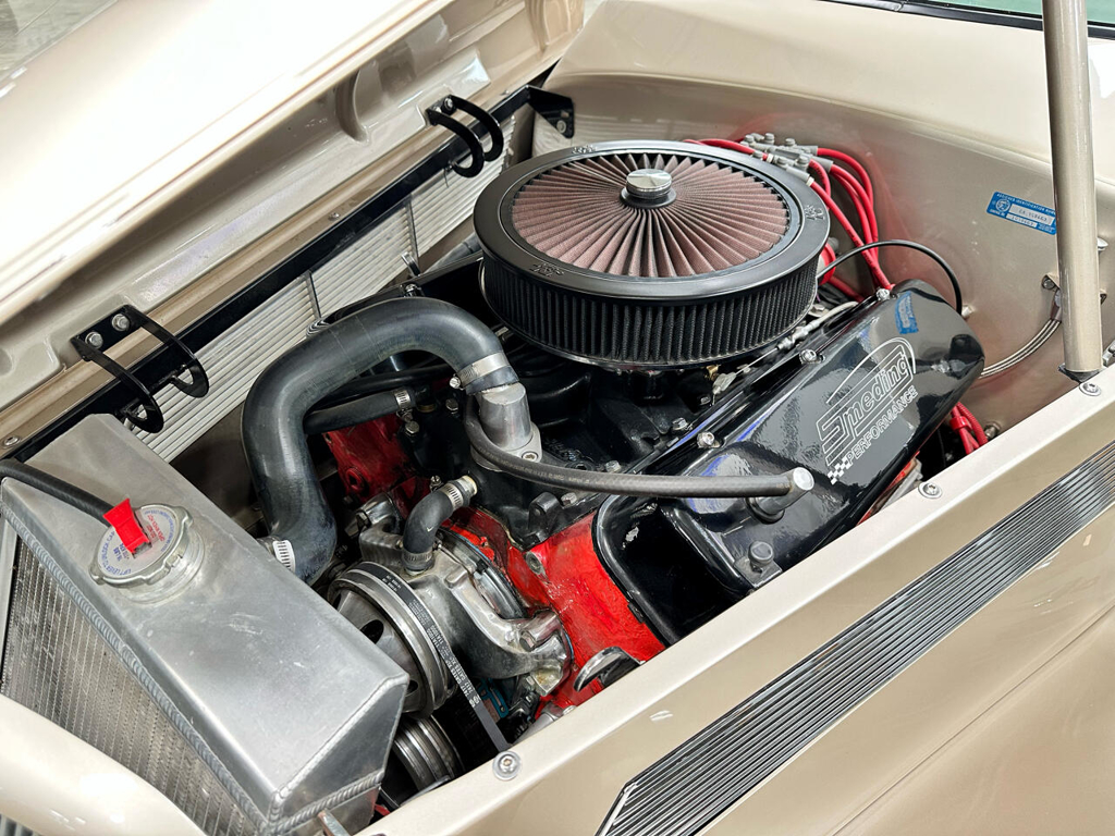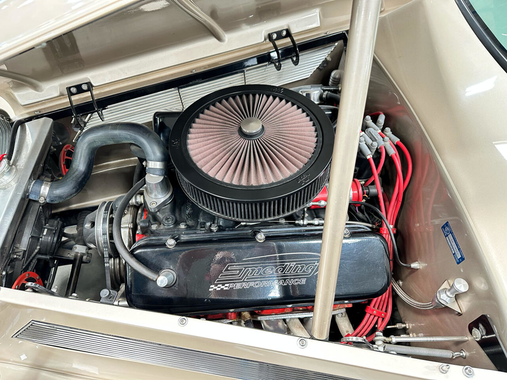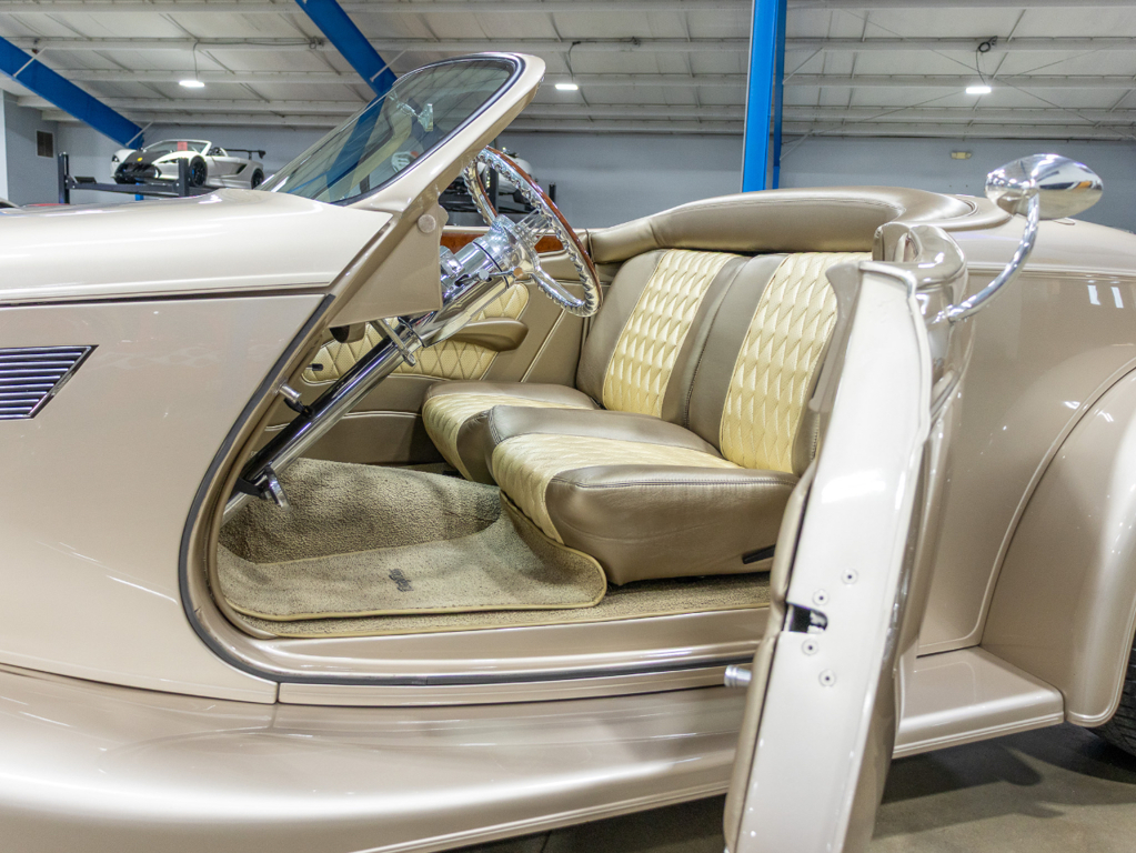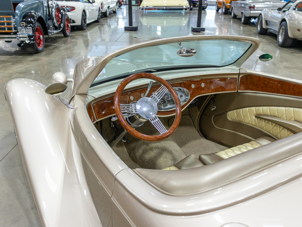 This street rod was built under previous ownership utilizing a full-fendered Factory Five Racing fiberglass body styled to resemble a 1933 Ford Roadster. It is finished in champagne beige and mounted on the Factory Five boxed steel frame. Power is provided by a 468ci stroker V8 paired with a four-speed automatic transmission, and the build also incorporates independent front suspension, a four-link rear setup, adjustable coilovers, rack-and-pinion steering, four-wheel disc brakes, staggered-diameter Torq Thrust-style wheels, a power-operated trunk, and a Ford 9 rear end. The cabin features two-tone dark beige and gold vinyl upholstery, bucket seats, wood veneer trim, a tilt-adjustable steering column, and Digital Dakota instrumentation. The full-fendered fiberglass body is finished in champagne beige, and it rides on a black-painted boxed steel frame. Exterior details include hood side-panel vents, running boards, reverse-hinged doors, and dual mirrors with integrated signal lights as well as a power-operated trunk lid and flush-mounted LED taillights. Staggered-diameter Torq Thrust-style wheels are finished in pewter and mounted with 245/35-17 front and 285/35-18 rear tires. Independent front suspension incorporates polished tubular A-arms and adjustable coilovers from Kugel Komponents, while the rear utilizes a triangulated four-link setup and adjustable QA1 coilovers. Braking is provided by four-wheel discs with polished Wilwood calipers up front, and the car is also equipped with rack-and-pinion steering.The interior features bucket seats and door panels trimmed in dark beige vinyl with gold diamond-quilted inserts, and the trunk is upholstered to match. The color-coordinated carpeting is overlaid with matching embroidered mats, and additional amenities include a push-button starter, a hard-wired remote control for the power trunk lid, and a Sony CD receiver.A woodgrain banjo-style steering wheel mounted atop a chrome tilt-adjustable column fronts a wood-veneer dashboard and a Dakota Digital elliptical instrument panel with an overlapping 160-mph speedometer, 8k-rpm tachometer, fuel-level gauge, and voltmeter flanked by coolant-temperature and oil-pressure gauges. The digital odometer indicates 522 miles.The Chevrolet 468ci stroker V8 is said to be based on a 427 block, and it breathes through a Holley four-barrel carburetor, an Edelbrock intake manifold, a K&N open-element air filter, and block-hugger headers flowing into a ceramic-coated dual exhaust system equipped with Magnaflow mufflers. Additional equipment includes an aluminum radiator, an electric fan, Smeding Performance valve covers, and an MSD Blaster 2 coil. Power is sent to the rear wheels through a 700R4 four-speed automatic transmission with a frame-rail-mounted cooler and a Ford 9? rear end with a 3.73:1 final gear set.The car has a clear Ohio title. It was assigned a VIN Identification Number CA959463 in California at time of completion where it was Inspected and first titled. Local to our Dealership? We are Open Monday-Friday 9-5!Not Local... NO Problem! We can organize delivery right to your door We ship over 200 vehicles every year...We are your Collector car Specialist and Shipping Experts! Financing is Available on all vehicles! Call with any Questions-*** HAVE QUESTIONS? No Problem!! *** Call or Text: -Mark (Showroom Manager) 808-286-8101 or-Chris (Online Sales) 330-990-6970