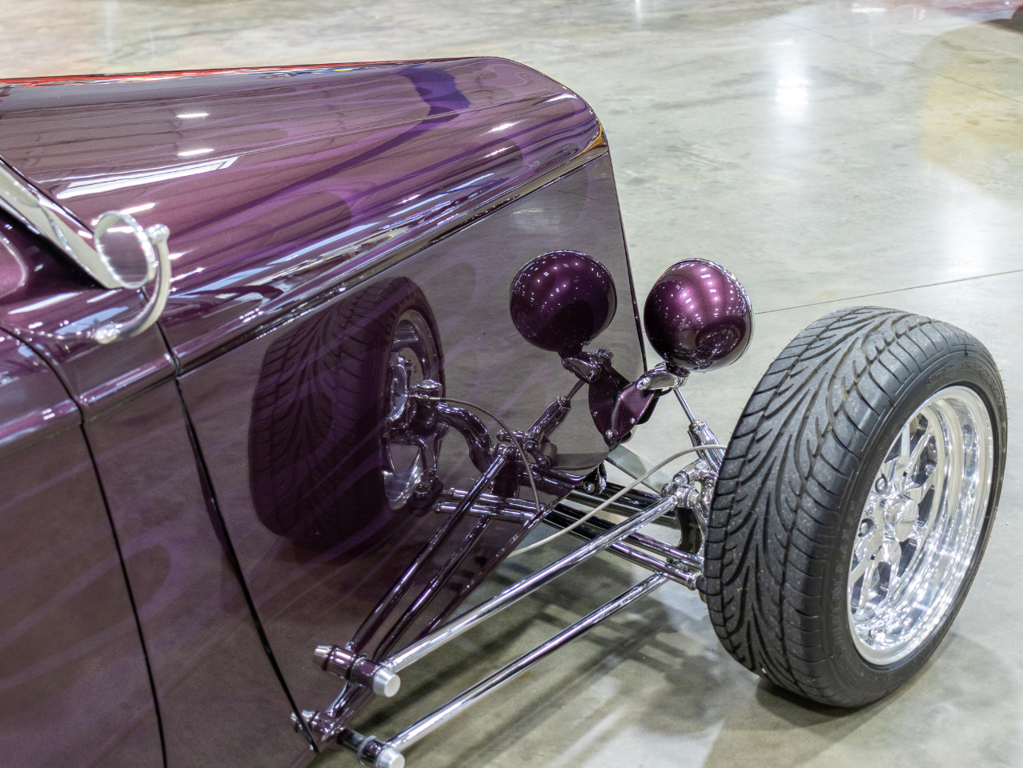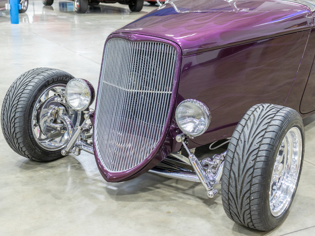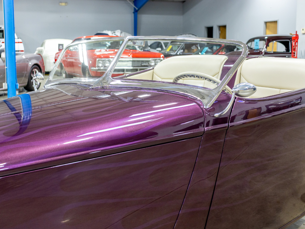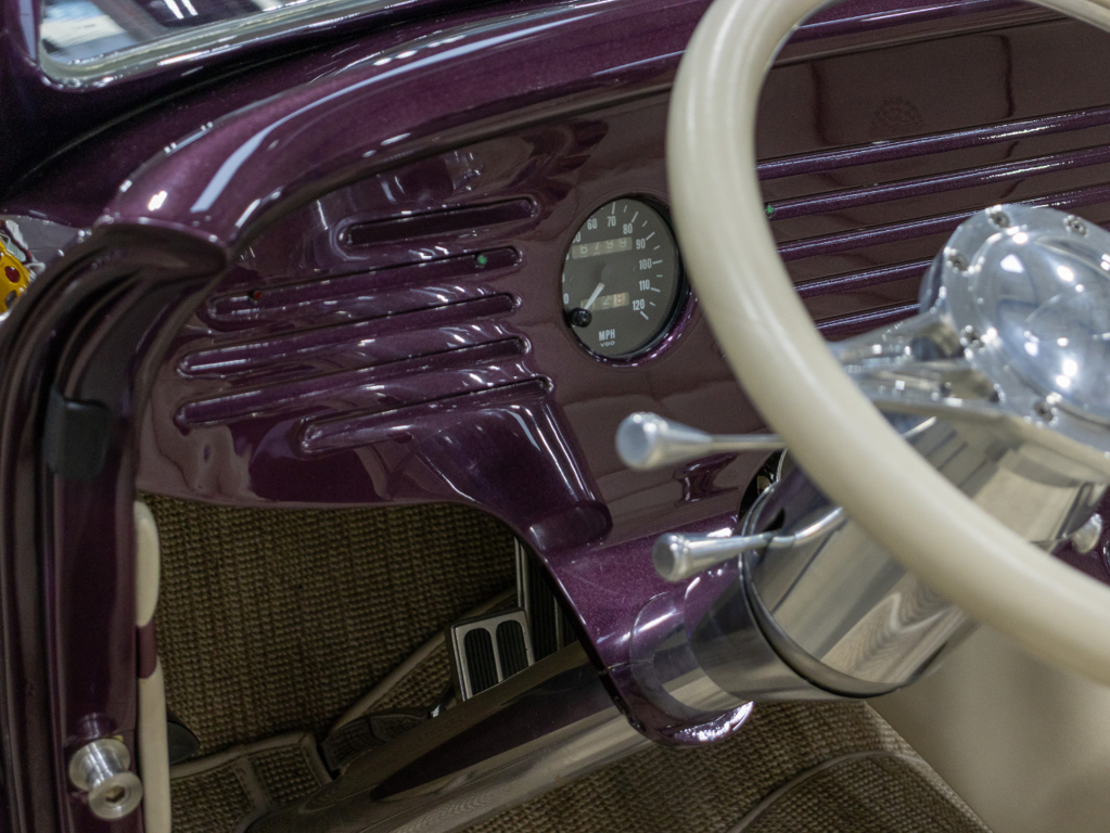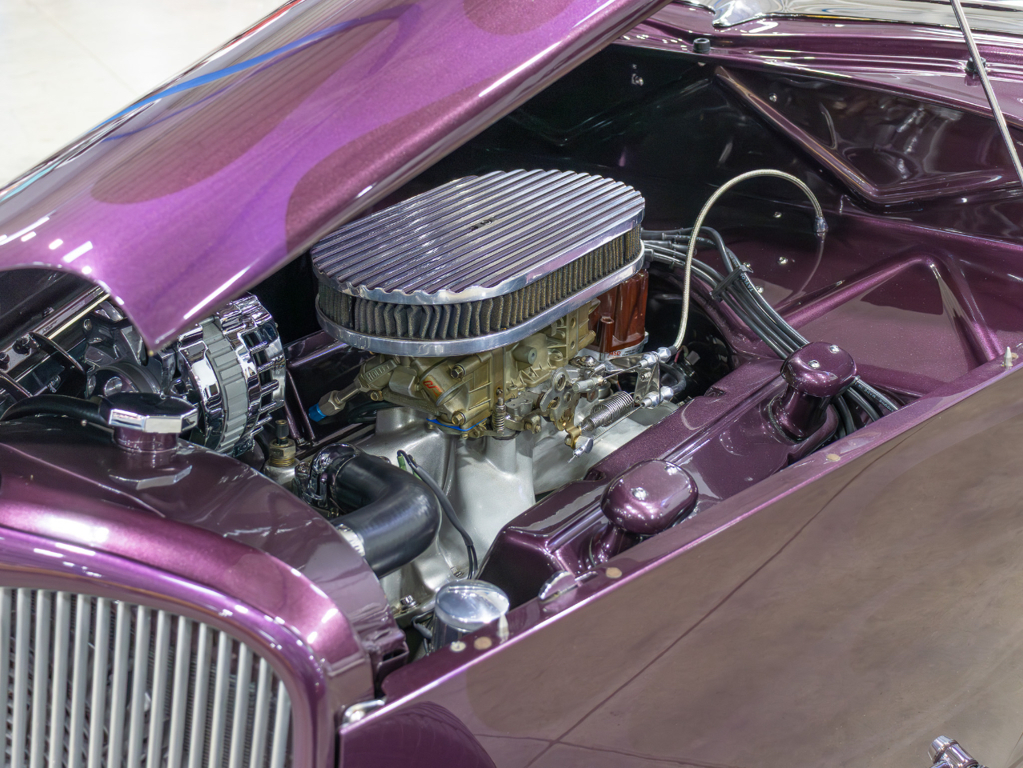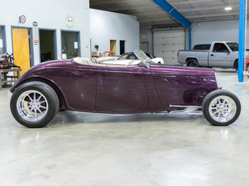 This unique 34 Roadster showcases beautiful custom purple paint with ghost flames, side open hood & a chrome front end sitting on top of a beautiful set of Budnik wheels. The underside is just as pretty as the top with a custom painted undercarriage, custom stainless exhaust, chrome 4 link rear end, & a custom roll pan to hide it from the rear for a super smooth look. Under the side tilt hood, is an impressive 383 stroker with a heavy cam smoothed & painted to match down to the radiator. The interior is as nice as it gets with a custom aluminum waterfall console & aluminum dash. Custom waterfall seats will have you riding in comfort while looking thru the awesome chrome DuVall windshield. In the rear is a power trunk lid & matching custom upholstered trunk cargo bay. This is well over a 6 figure build that will not disappoint. It is truly one of the nicest 34 roadsters that we've ever laid our eyes on!!! Local to our Dealership? We are Open Monday-Friday 9-5!Not Local... NO Problem! We can organize delivery right to your door We ship over 200 vehicles every year...We are your Collector car Specialist and Shipping Experts! Financing is Available on all vehicles! Call with any Questions-*** HAVE QUESTIONS? No Problem!! *** Call or Text: -Mark (Showroom Manager) 808-286-8101 or-Chris (Online Sales) 330-990-6970