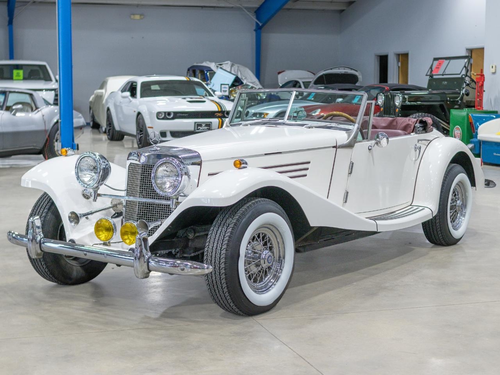 This 1936 Mercedes 500K Marlene replica offers prewar roadster styling without the seven-figure price tag, and its now listed for sale and located inside our Classic Car Showroom in Salem, OH.Built in 1988 by Classic Roadsters Ltd. of Fargo, North Dakota, this tribute rides on a 1978 Ford Mustang II chassis and is powered by a 2.8-liter V6 paired with a four-speed manual transmission. Finished in a stunning white gel coat with Maroon soft top and matching maroon interior, this kit car has only around 3,489 miles since completion and is described as a fun, attention-grabbing weekend toy. The seller notes that it runs and drives well and comes with a clean Ohio title, Temp Tag and Registration will also be issued at time of purchase.Classic Roadsters Ltd. was one of the better-known kit manufacturers of the 1980s, producing fiberglass-bodied tributes to European icons like the Mercedes 500K. This Marlene model captures much of the visual drama of the original, from its sweeping fenders and prominent grille to the faux supercharged side exhaust pipes and chrome accent trim. Real wire wheels with radial tires complete the period look, while the heavy fiberglass body means no rust worries.The interior is surprisingly well-detailed for a kit car of this era. A wood dash with VDO gauges, a wood-rimmed steering wheel, maroon seats, and matching door panels give it a period-correct vibe, while clean dark red carpeting adds a touch of luxury. The roll-up windows and removable soft top make it practical for weekend cruising, and the trunk is large enough for road trip luggage or show gear.While this tribute looks like a 1930s supercharged Mercedes, its underpinnings are pure Ford. The Mustang II-derived 2.8-liter V6 is mated to a four-speed manual transmission, and the seller says its reliable, easy to service, and that parts are readily available at any auto parts store. The engine bay is described as clean, and the cars undercarriage shows no major issues thanks to its tubular steel frame.The seller states there are a few cosmetic flaws to be expected from a vehicle of this erra and the top does have some separation at seems. The title states 1988 Assembled 500K and mileage is Actual. For someone looking for vintage European style with simple American mechanicals, this replica could be the perfect weekend cruiser. Would you keep it as-is for casual drives, or invest in a full detailing to make it stand out at local shows?Replica built by Classic Roadsters, Ltd.V-6 2.8L Ford EngineAutomatic transmissionBucket seatsTilt steering columnWood dashboardWood-rimmed steering wheelChrome wire wheelsWide whitewall style tires Local to our Dealership? We are Open Monday-Friday 9-5!Not Local... NO Problem! We can organize delivery right to your door We ship over 200 vehicles every year...We are your Collector car Specialist and Shipping Experts! Financing is Available on all vehicles! Call with any Questions-*** HAVE QUESTIONS? No Problem!! *** Call or Text: -Mark (Showroom Manager) 808-286-8101 or-Chris (Online Sales) 330-990-6970