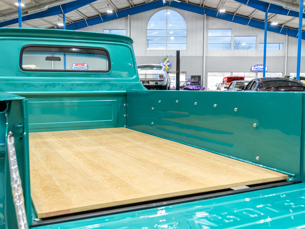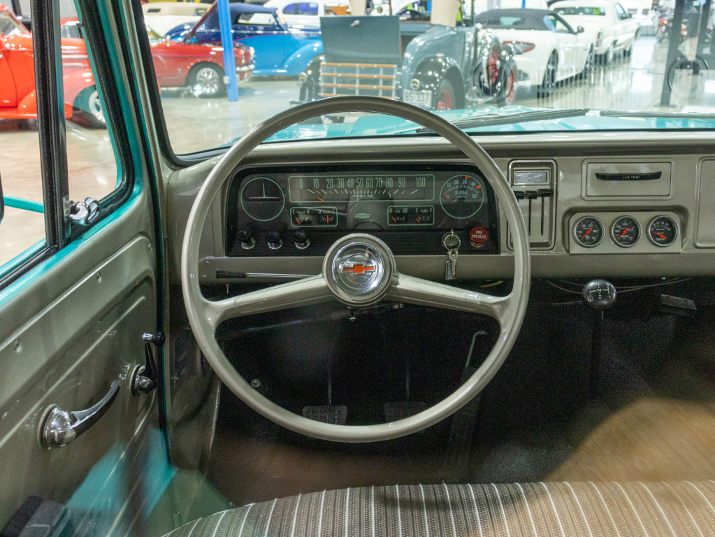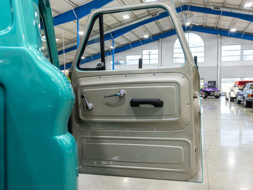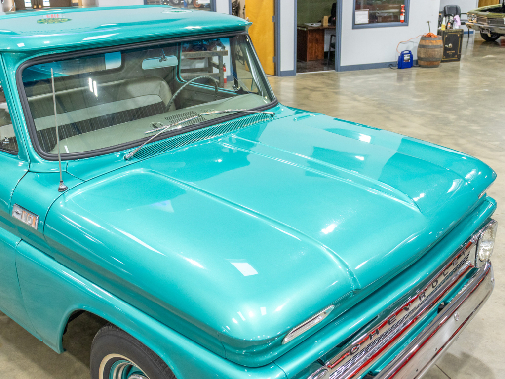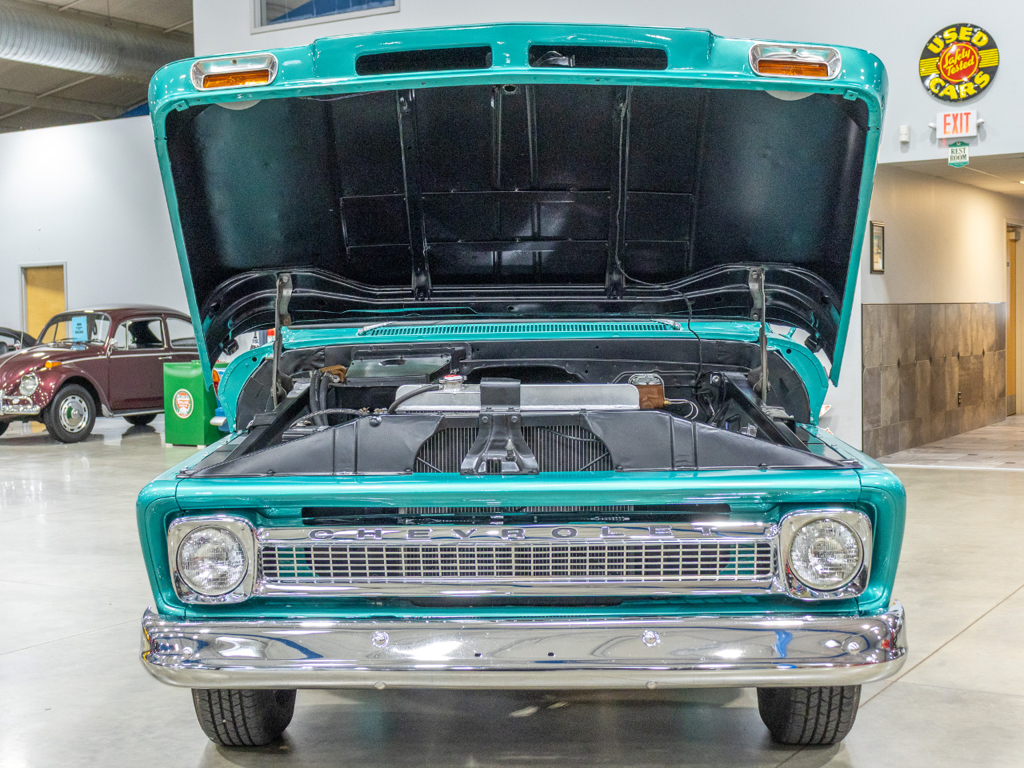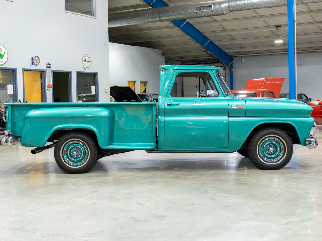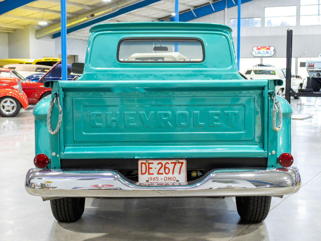 This 1965 Chevrolet C-10 stepside is a stunning example of a frame-off restored classic, presented in a vibrant Turquoise with a complementary beige vinyl and cloth interior. Since its professional restoration, this rare long wheelbase stepside has seen only 2,014 miles of road use, maintaining an overall Show Ready/Very Good condition grade.Mechanical & DrivetrainAt the heart of this C-10 is a completely rebuilt 350 small block Chevrolet V8 engine (sourced from a 1975 heay duty, engine #V0618TYU). It is paired with a 4-speed manual transmission, providing an engaging, vintage driving experience. The engine compartment is exceptionally clean, featuring: Performance Upgrades: Edelbrock 4 bbl. carburetor and aluminum radiator. Aesthetics: Chrome air cleaner, valve covers, and thermostat housing. Reliability: Rebuilt drivetrain, updated dual reservoir master cylinder, and a battery disconnect switch. Exhaust: Stainless steel fuel lines, brake lines, and exhaust tips.Chassis & ExteriorThe truck underwent a meticulous frame-off restoration, leaving the chassis solid, rust-free, and finished in sleek black. Body: The Turquoise paint is smooth and highly polished, accentuating the seldom-seen long stepside bed. While the body panel gaps are excellent, the rear of the cab shows a few minor dents preserved under the paint for character. Wheels & Tires: It sits on painted steel wheels with chrome lug nuts, wrapped in Cooper radial tires. Chrome & Trim: All brightwork, including the bumpers and polished wiper arms, is in excellent condition.Interior & ComfortThe cabin has been beautifully restored to balance original charm with functional upgrades. Upholstery: A classic bench seat featuring beige vinyl with striped fabric inserts. Instrumentation: A factory in-dash tachometer is supplemented by a suite of Autometer gauges (oil pressure, water temp, volts, and fuel). Detailing: The dash, steering wheel, carpet, and glass are all in excellent, defect-free condition. Bed: The interior bed floor is currently finished in plywood sheeting, consistent with its utilitarian roots but kept in clean condition.Condition NotesThis vehicle has been maintained to a high standard. Noted minor imperfections include light rust coating on the master cylinder and manifolds (typical for driven vehicles), light cracking on the quarter window seals, and sun visors that currently require re-covering (frames and upholstery fabric are included). Local to our Dealership? We are Open Monday-Friday 9-5!Not Local... NO Problem! We can organize delivery right to your door We ship over 200 vehicles every year...We are your Collector car Specialist and Shipping Experts! Financing is Available on all vehicles! Call with any Questions-*** HAVE QUESTIONS? No Problem!! *** Call or Text: -Mark (Showroom Manager) 808-286-8101 or-Chris (Online Sales) 330-990-6970