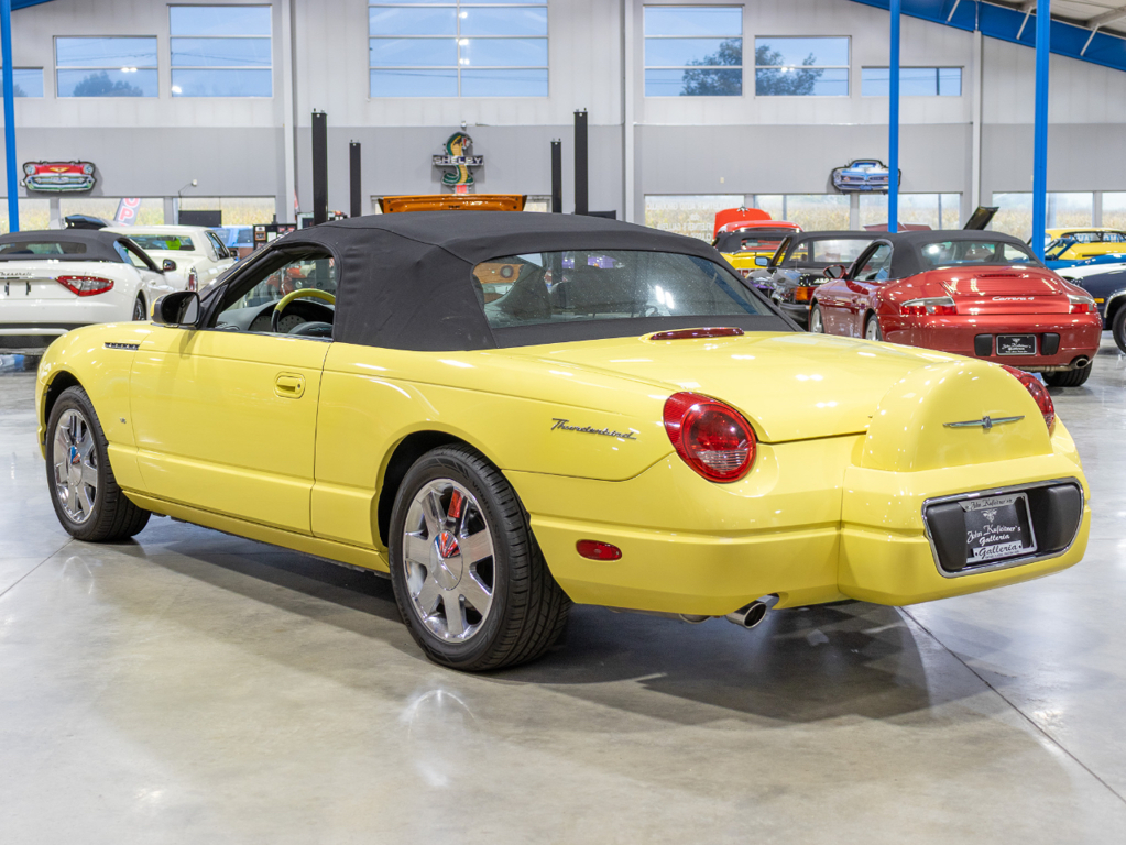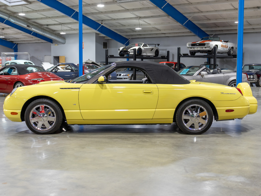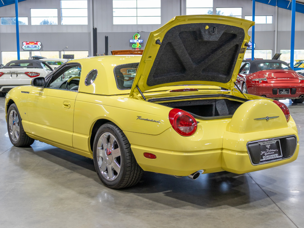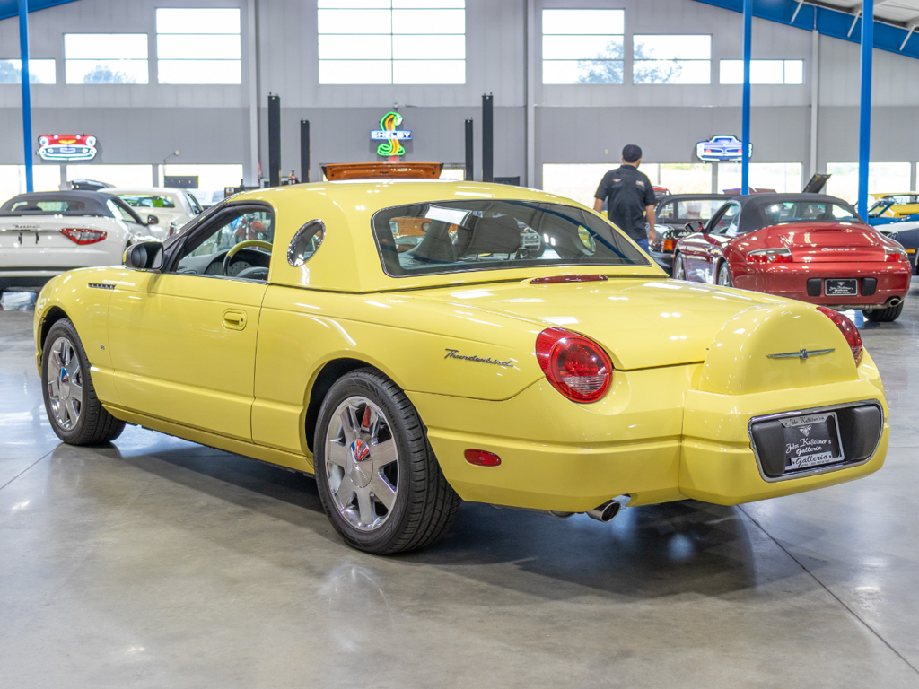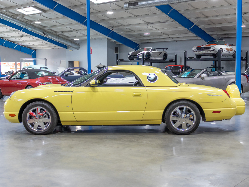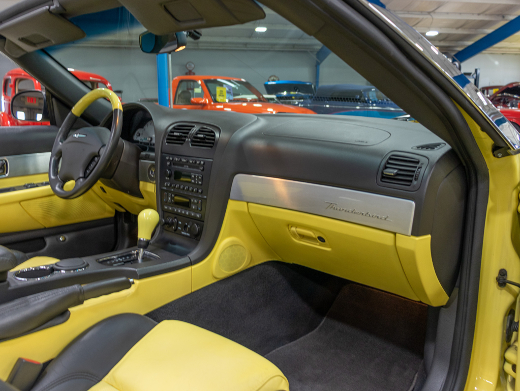 2002 Ford Thunderbird Convertible with Removable Hardtop TopOnly 9k miles on this stunning inspiration yellow 2002 Ford Thunderbird. Optioned with 2-Tone interior, Power black convertible top and color matched yellow hardtop. The car is a 2-owner vehicle with clean Carfax, No Accidents, No damage and extremely well maintained in a temperature controlled garage. This is a rare and stunning time capsule that features the Thunderbird Specialties classic continental kit. It has been serviced with routine maintenance including replacement battery, new tires, regular oil change as well as regular wash and wax. The car has only seen indoors and beautiful sunny days. This car is in showroom condition and everything is working as it should including cold AC. I have been selling these since they came out and this is one of the nicest I have seen in many years! The power convertible top looks like new, the leather seats look like new, the hardtop is in new condition and the paint has a showroom mirror shine. Fun Facts about this 11th generation Thunderbird:In 2002, Ford re-introduced an American icon, the Thunderbird, capturing the essence of its 1950s predecessor while infusing it with modern engineering and style. The 2002 Ford Thunderbird, a two-seater convertible, pays homage to its vintage roots while incorporating contemporary features to deliver a unique driving experience.The 2002 Thunderbird is a visual masterpiece, blending nostalgic design elements with modern touches. Its sleek lines, prominent front grille, and rounded headlights echo the classic T-Bird silhouette, captivating enthusiasts and casual observers alike. Available in a range of vibrant colors including this charming Inspiration Yellow, the Thunderbird's exterior design exudes timeless charm.Another notable aftermarket available option for the 2002 Thunderbird is the Thunderbird Specialties Classic Continental package. This feature harks back to the classic roadsters of the 1950s, where a rear-mounted spare tire was a common sight. This 2002 Thunderbird embraces this vintage aesthetic by incorporating the Continental-style spare tire kit, adding a touch of sophistication and individuality to the car's rear end.Under the hood, it boasts a powerful 3.9-liter V8 engine mated to a smooth 5-speed automatic transmission and coupled with responsive handling to offer a blend of comfort and performance. The convertible top can be raised or lowered at the touch of a button, allowing drivers to enjoy the wind in their hair on a sunny day or opt for a more sheltered driving experience when needed.The 2002 Ford Thunderbird successfully revived the spirit of the original T-Bird, capturing the hearts of automotive enthusiasts and collectors alike. Its combination of classic design elements, modern features, and optional accessories like the Continental package make this example a strong future classic, and a standout in the market.This cars Features: Continental Package Only 9k Miles! 3.7L V8 Engine - 252HP 5-Speed Automatic Transmission w/ overdrive Desirable Inspiration Yellow Power Adjustable Leather Front Bucket Seats w/ Driver Lumbar Support Leather Rear Seats Power Windows Power Steering w/ Tilt Steering Wheel 17 Chrome Aluminum Alloy Wheels 8 Speaker Audiophile AM/ FM Radio Sound System 6 Disc CD Changer Steering Wheel Audio Controls Dual Zone A/C Front and Side Impact Airbag System Independent Front and Rear Suspension 4 Wheel Power Disc Brakes w/ ABS Security Alarm Power Convertible Top, Black Cloth Body Color Optional Hard Top Cruise Control Stainless Steel Exhaust w/ Bright Exhaust Tips Driver 1-Touch Down Power Window Remote Trunk Release Remote Keyless Entry Power Door Locks Illuminated Entry Dual power Remote Mirrors Halogen Headlights Variable Intermittent Wipers Local to our Dealership? We are Open Monday-Friday 9-5!Not Local... NO Problem! We can organize delivery right to your door We ship over 200 vehicles every year...We are your Collector car Specialist and Shipping Experts! Financing is Available on all vehicles! Call with any Questions-*** HAVE QUESTIONS? No Problem!! *** Call or Text: -Mark (Showroom Manager) 808-286-8101 or-Chris (Online Sales) 330-990-6970