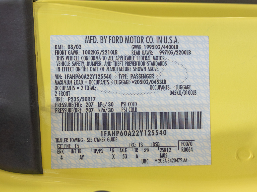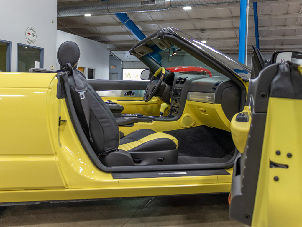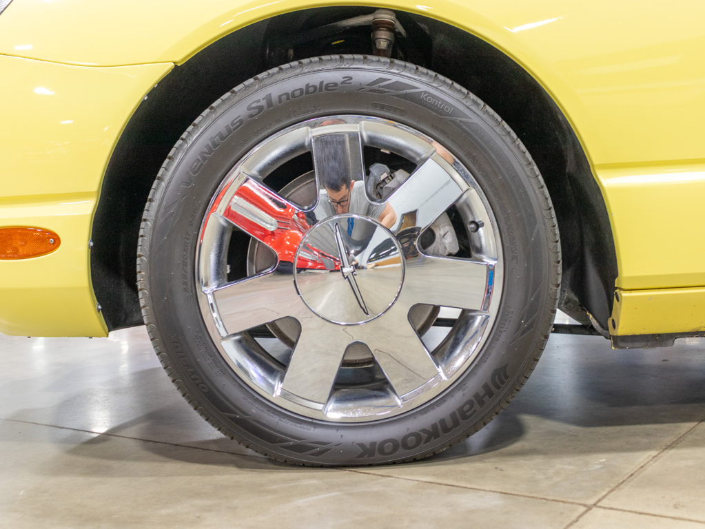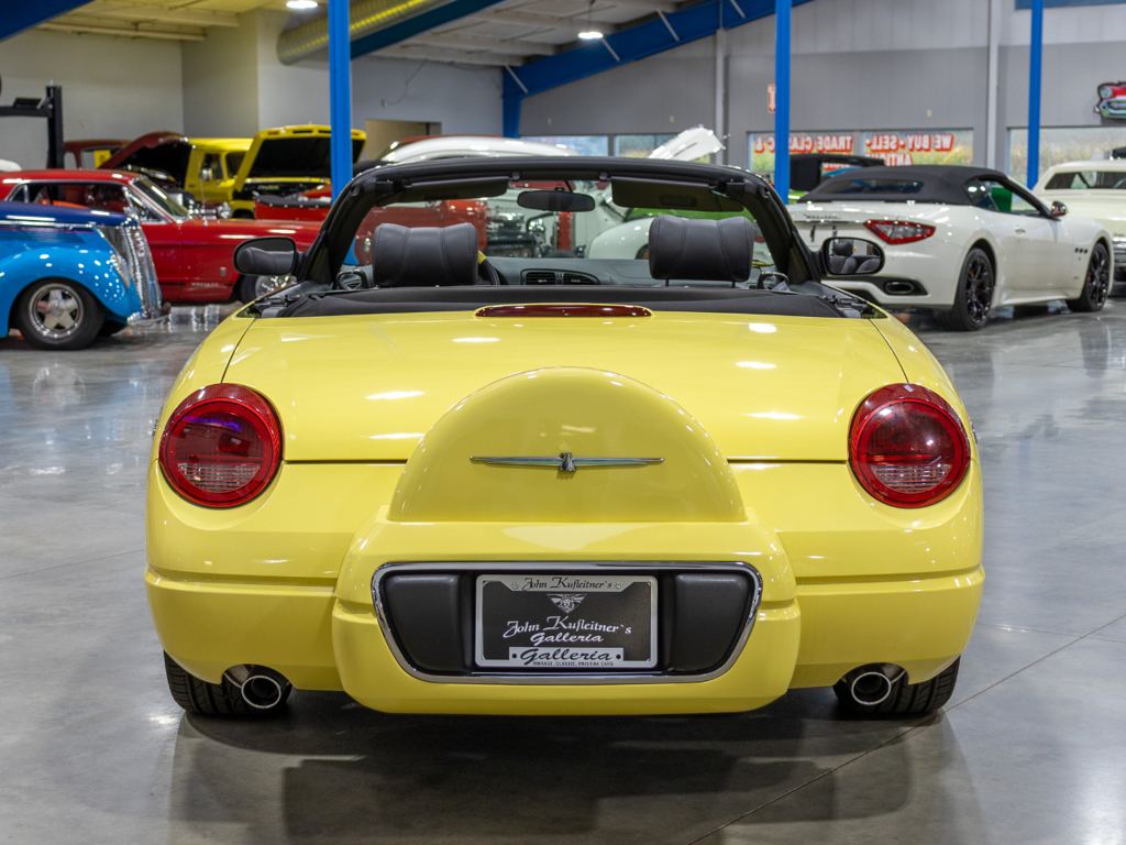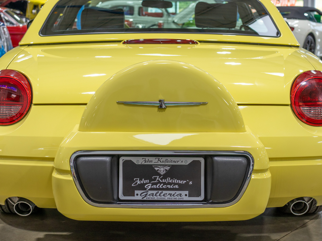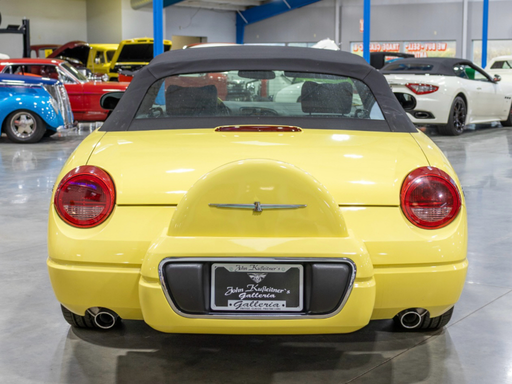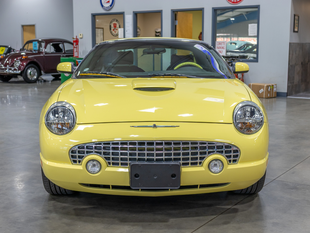 2002 Ford Thunderbird Convertible with Removable Hardtop TopOnly 9k miles on this stunning inspiration yellow 2002 Ford Thunderbird. Optioned with 2-Tone interior, Power black convertible top and color matched yellow hardtop. The car is a 2-owner vehicle with clean Carfax, No Accidents, No damage and extremely well maintained in a temperature controlled garage. This is a rare and stunning time capsule that features the Thunderbird Specialties classic continental kit. It has been serviced with routine maintenance including replacement battery, new tires, regular oil change as well as regular wash and wax. The car has only seen indoors and beautiful sunny days. This car is in showroom condition and everything is working as it should including cold AC. I have been selling these since they came out and this is one of the nicest I have seen in many years! The power convertible top looks like new, the leather seats look like new, the hardtop is in new condition and the paint has a showroom mirror shine. Fun Facts about this 11th generation Thunderbird:In 2002, Ford re-introduced an American icon, the Thunderbird, capturing the essence of its 1950s predecessor while infusing it with modern engineering and style. The 2002 Ford Thunderbird, a two-seater convertible, pays homage to its vintage roots while incorporating contemporary features to deliver a unique driving experience.The 2002 Thunderbird is a visual masterpiece, blending nostalgic design elements with modern touches. Its sleek lines, prominent front grille, and rounded headlights echo the classic T-Bird silhouette, captivating enthusiasts and casual observers alike. Available in a range of vibrant colors including this charming Inspiration Yellow, the Thunderbird's exterior design exudes timeless charm.Another notable aftermarket available option for the 2002 Thunderbird is the Thunderbird Specialties Classic Continental package. This feature harks back to the classic roadsters of the 1950s, where a rear-mounted spare tire was a common sight. This 2002 Thunderbird embraces this vintage aesthetic by incorporating the Continental-style spare tire kit, adding a touch of sophistication and individuality to the car's rear end.Under the hood, it boasts a powerful 3.9-liter V8 engine mated to a smooth 5-speed automatic transmission and coupled with responsive handling to offer a blend of comfort and performance. The convertible top can be raised or lowered at the touch of a button, allowing drivers to enjoy the wind in their hair on a sunny day or opt for a more sheltered driving experience when needed.The 2002 Ford Thunderbird successfully revived the spirit of the original T-Bird, capturing the hearts of automotive enthusiasts and collectors alike. Its combination of classic design elements, modern features, and optional accessories like the Continental package make this example a strong future classic, and a standout in the market.This cars Features: Continental Package Only 9k Miles! 3.7L V8 Engine - 252HP 5-Speed Automatic Transmission w/ overdrive Desirable Inspiration Yellow Power Adjustable Leather Front Bucket Seats w/ Driver Lumbar Support Leather Rear Seats Power Windows Power Steering w/ Tilt Steering Wheel 17 Chrome Aluminum Alloy Wheels 8 Speaker Audiophile AM/ FM Radio Sound System 6 Disc CD Changer Steering Wheel Audio Controls Dual Zone A/C Front and Side Impact Airbag System Independent Front and Rear Suspension 4 Wheel Power Disc Brakes w/ ABS Security Alarm Power Convertible Top, Black Cloth Body Color Optional Hard Top Cruise Control Stainless Steel Exhaust w/ Bright Exhaust Tips Driver 1-Touch Down Power Window Remote Trunk Release Remote Keyless Entry Power Door Locks Illuminated Entry Dual power Remote Mirrors Halogen Headlights Variable Intermittent Wipers Local to our Dealership? We are Open Monday-Friday 9-5!Not Local... NO Problem! We can organize delivery right to your door We ship over 200 vehicles every year...We are your Collector car Specialist and Shipping Experts! Financing is Available on all vehicles! Call with any Questions-*** HAVE QUESTIONS? No Problem!! *** Call or Text: -Mark (Showroom Manager) 808-286-8101 or-Chris (Online Sales) 330-990-6970