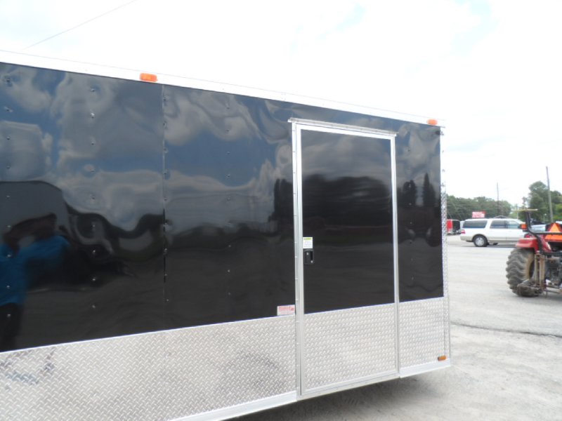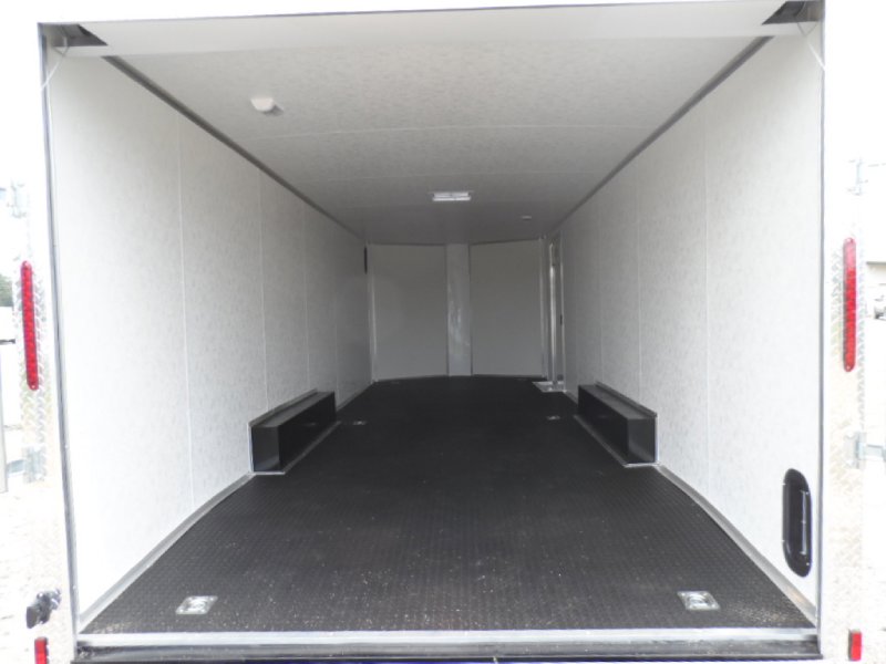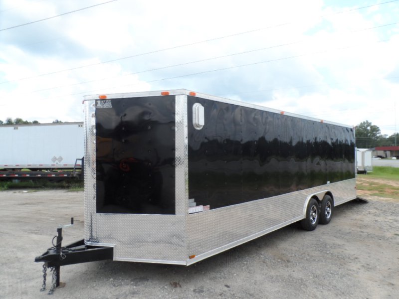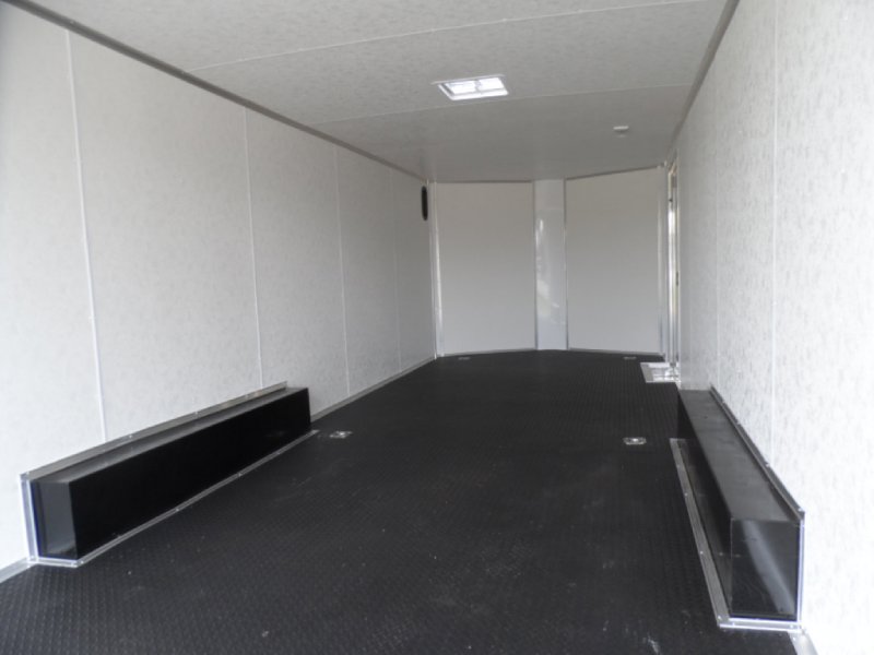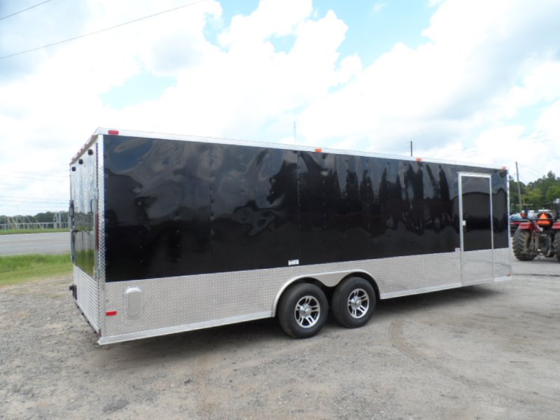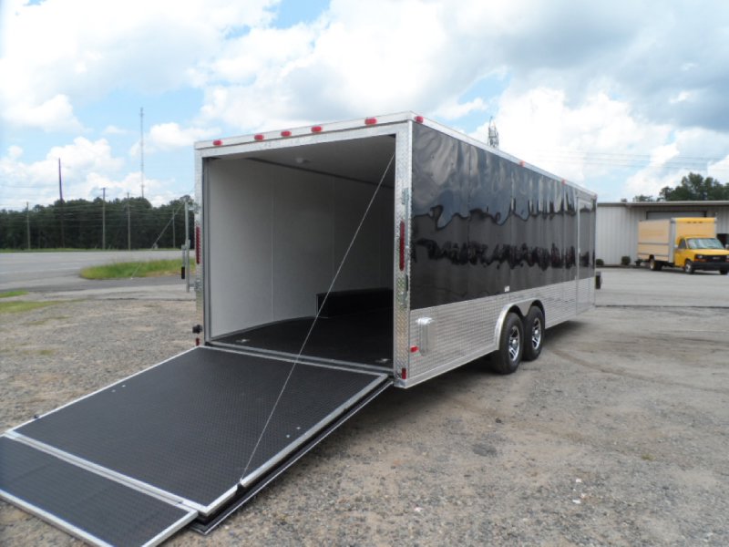 You are bidding on a brand new 8.5x24 v nose carhauler cargo trailer White or Black and anodized sides with ramp, and side door. This trailer is loaded with options.