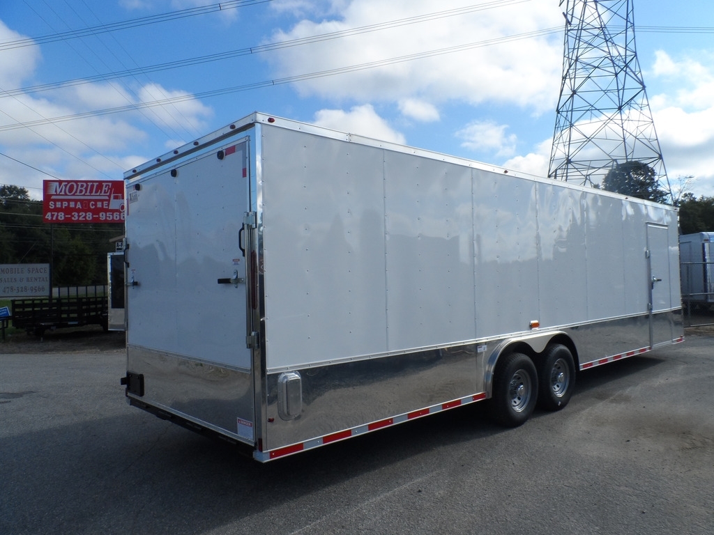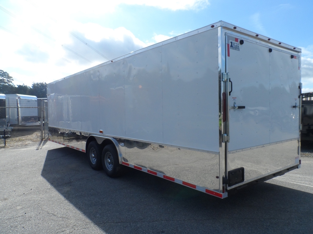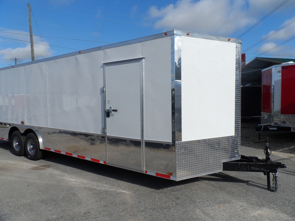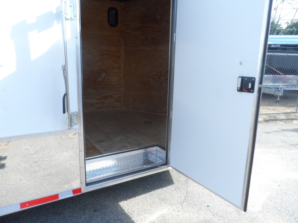 You are bidding on a brand new 8.5x28 carhauler cargo trailer White and anodized sides with ramp, and side door. This trailer is loaded with options.
