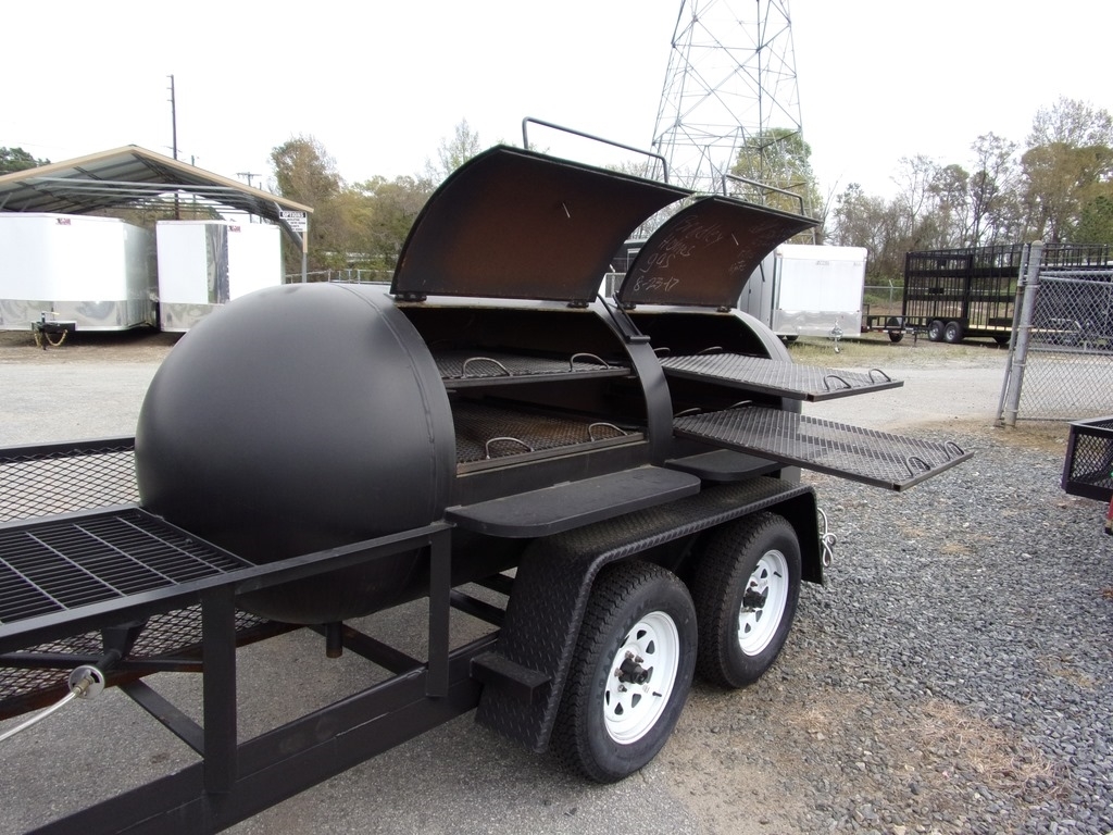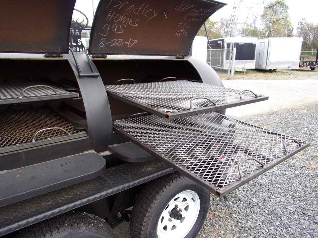 BBQ PIT SMOKER competition trailer w/ gas starter Smoke Box and Double Burners