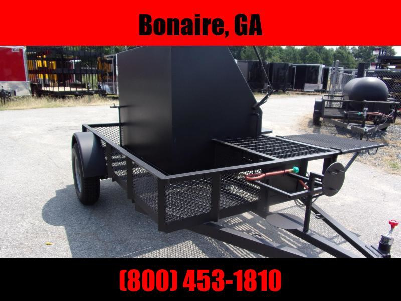 Hog Box Bubba Grill Smoker concession trailer on 6x12 utility trailer with storage down one side. This BBQ PIT SMOKER has gas starter in the fire box and has Double Burners on the front for anything from fish frying to low country boil. It also has a char coal pan inside. You can grill steaks chicken hamburger and more. Large fire box inside the grill no wasted heat. Great for smoking baby back ribs Boston butts brisket.and more