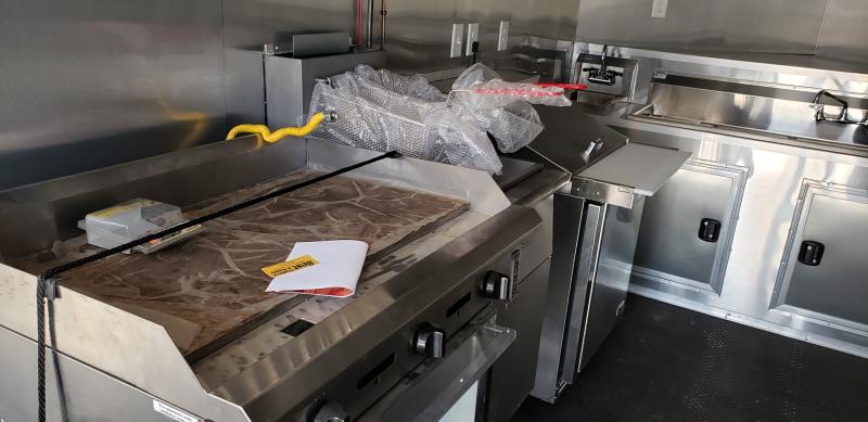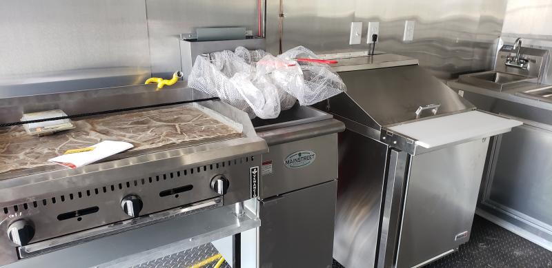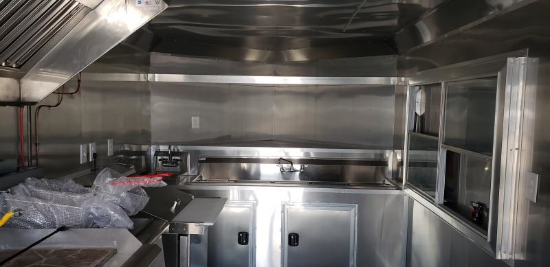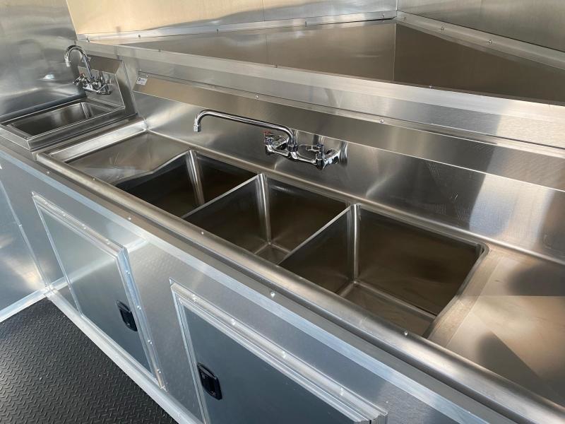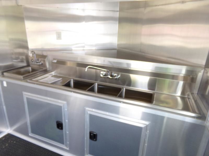 8.5x16 turn key Enclosed cargo 3x6 glass and sceen 3 Bay Sink Concession Vending Concession Trailer