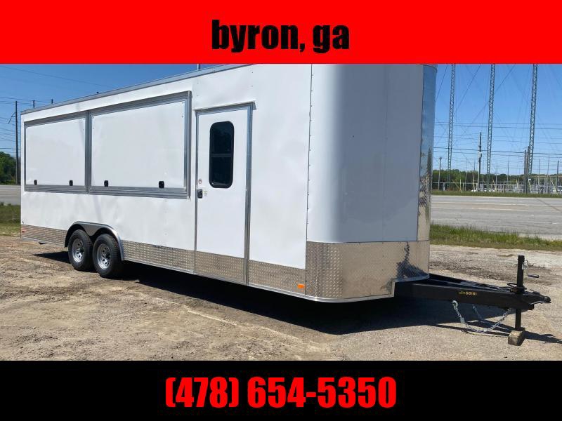 This food trailer is ready to be customized just for you! This 8.5x24 1st Place Cargo Trailer is a great start for a restaurant on wheels. All appliances that we use are commercial kitchen rated. The specs of this trailer are as follows: