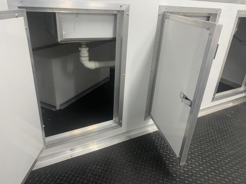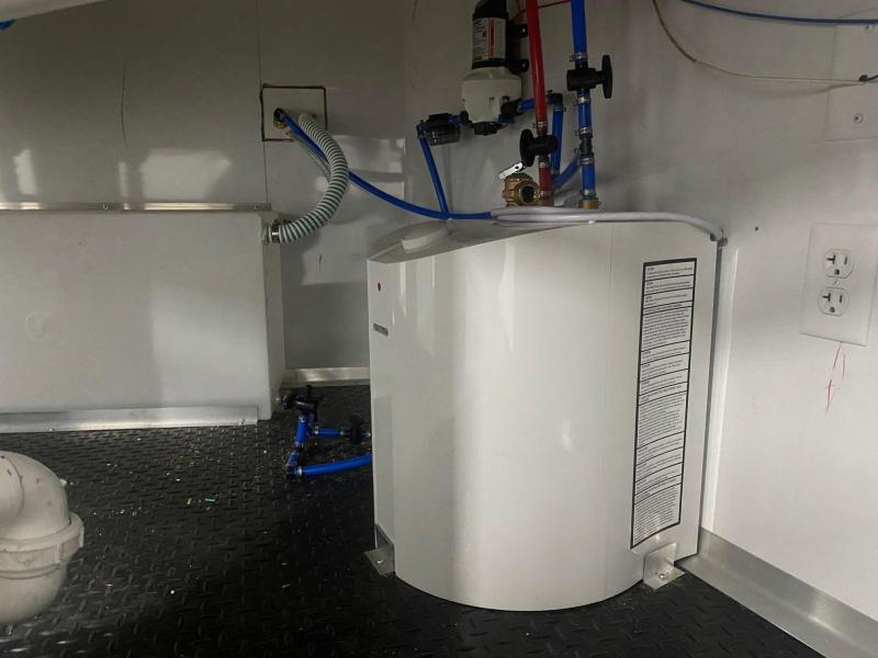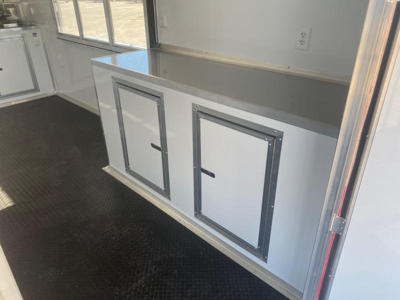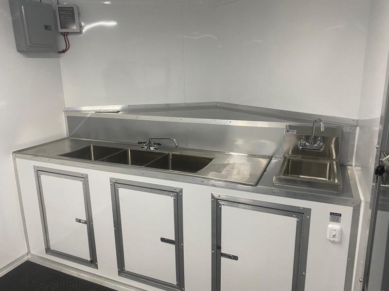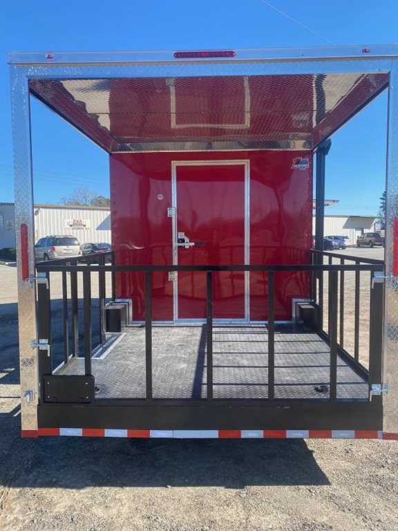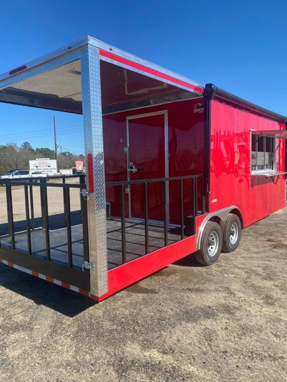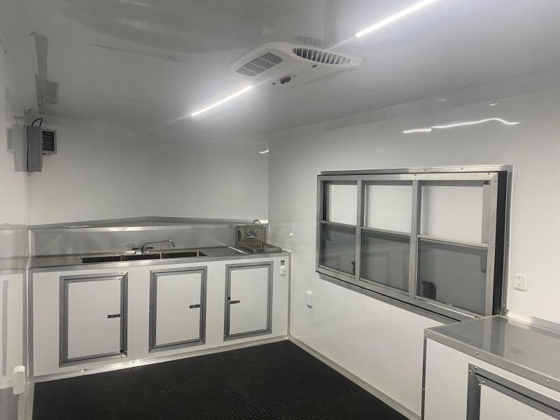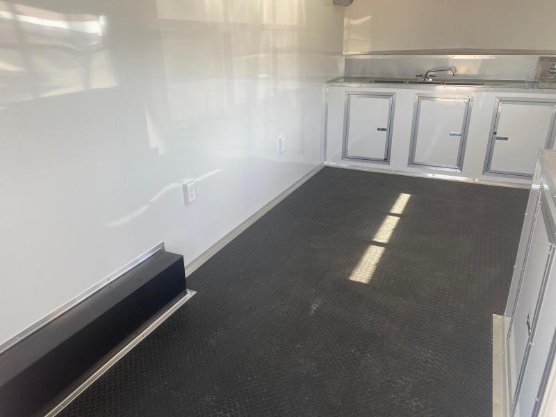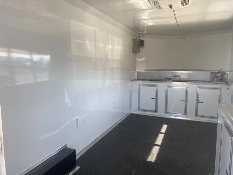 This is a new enclosed food trailer with a 8' porch in the rear ready for any exterior cooking needs. This food trailer is ready to be customized just for you! This 8.5x20 1st Place Cargo Trailer is a great start for a restaurant on wheels. All appliances that we use are commercial kitchen rated. The specs of this trailer are as follows: