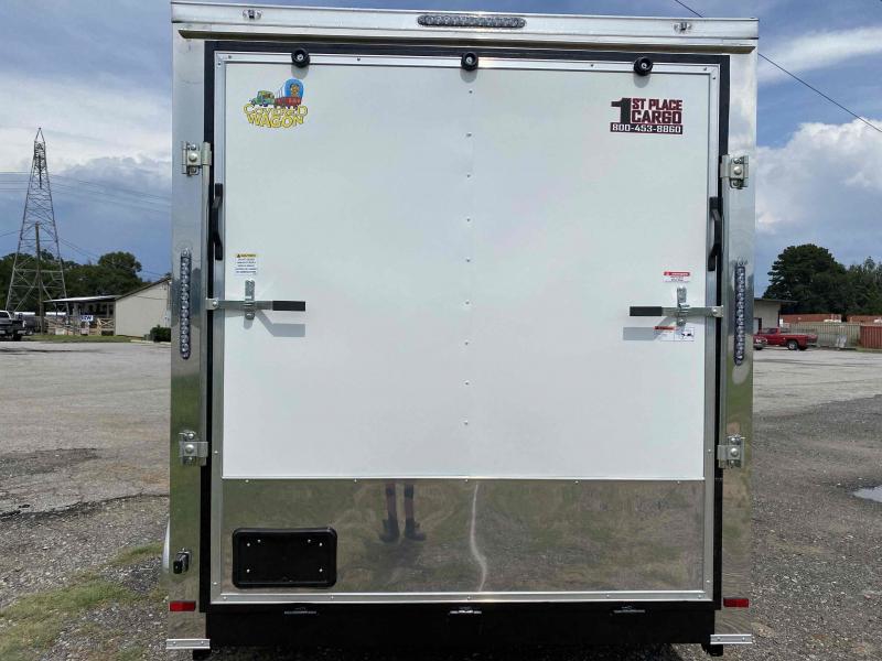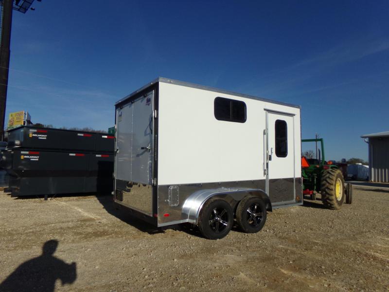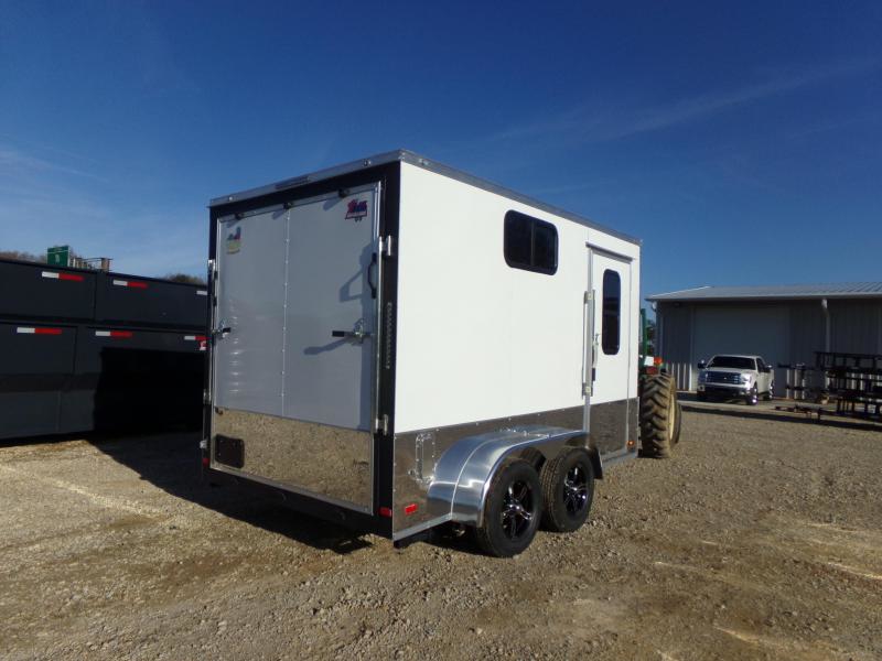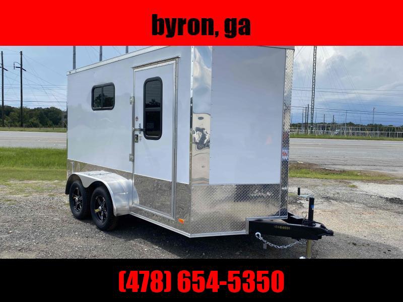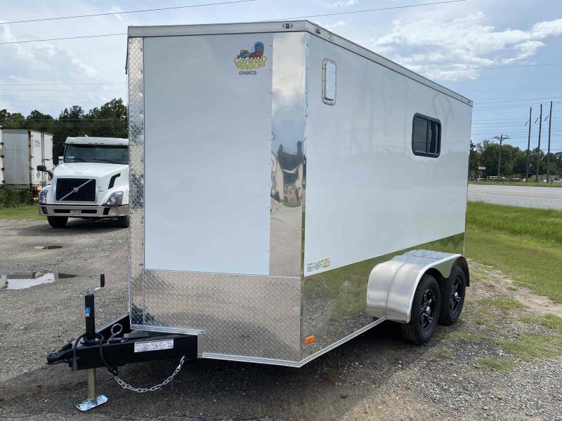 Covered Wagon Trailer 7x12 White Motorcycle PKG w/ Windows Enclosed Cargo Trailer