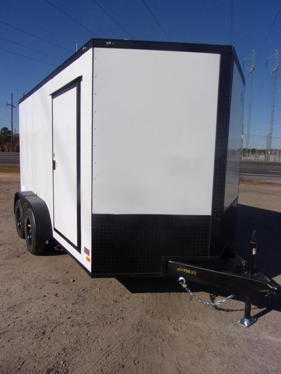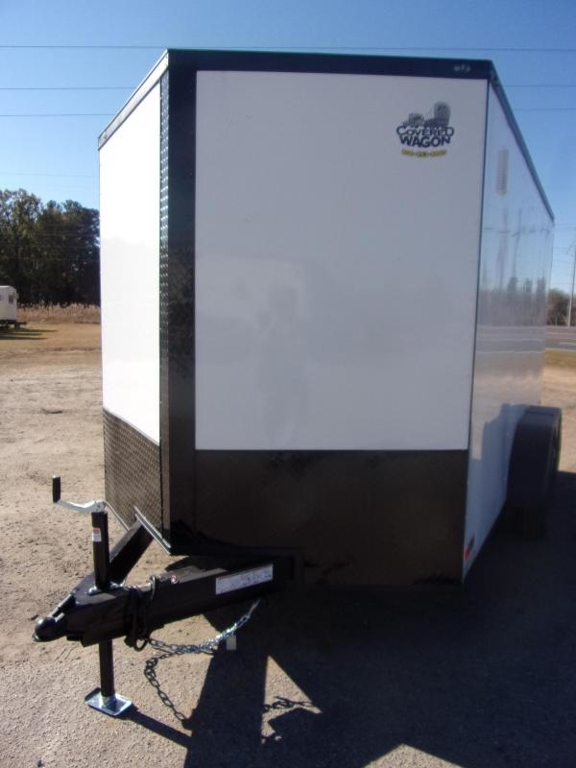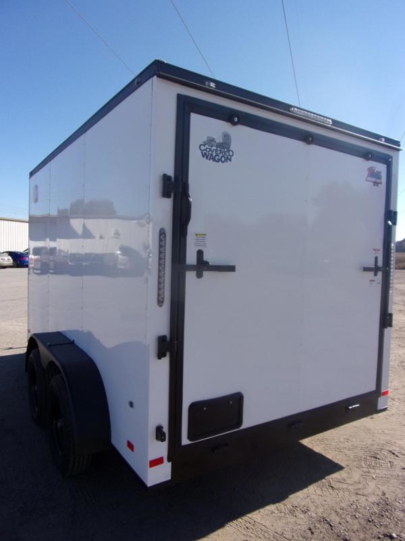Covered Wagon Trailers 7x12 White Blackout Electric Package Ramp door Enclosed Cargo Trailer