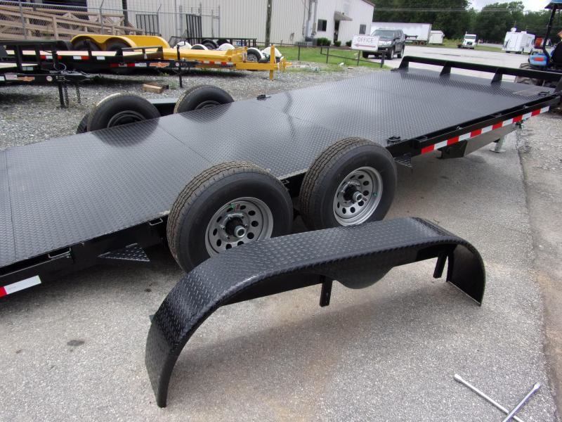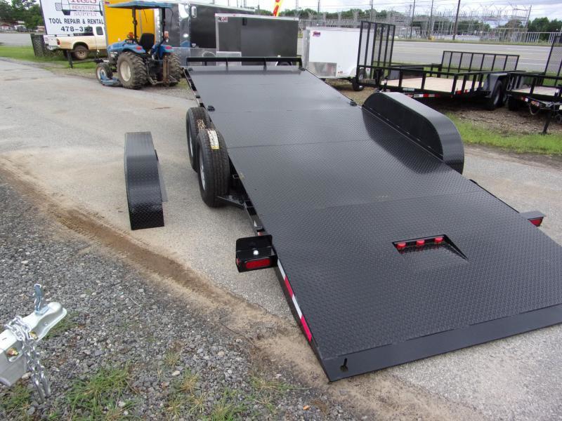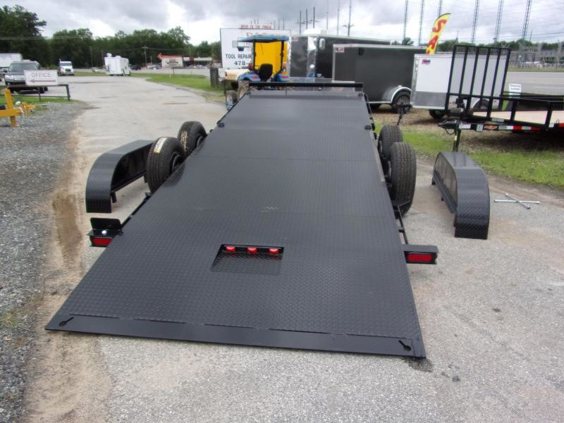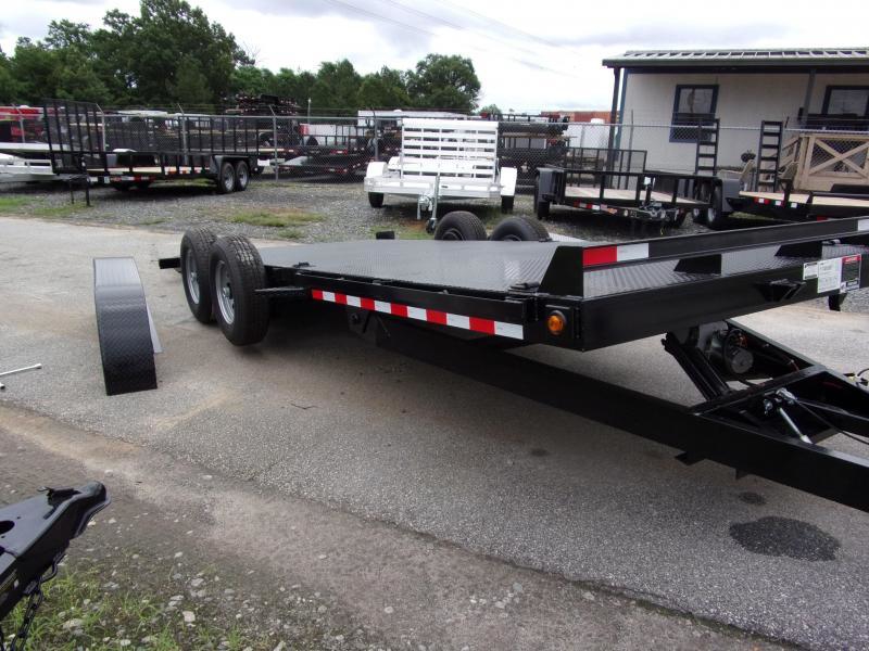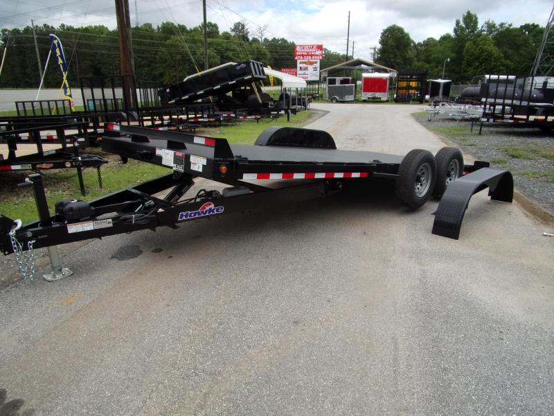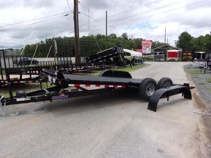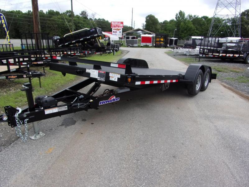 Hawke Trailers builds Hydraulic Power Tilt flatbed equipment trailers in both standard and heavy duty versions. The length is 20