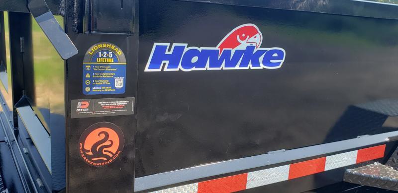 Our premium features Hawke Low Profile Dump Trailers are offered in 7,000, 10,000, 12,000, and 14,000 lb. GVWR's - as well as a heavy duty 15,000 GVWR version. Scissor lift is standard as are slide-in loading ramps. The sides are 24 tall with two-way tailgates that open for unobstructed dumping or can be set in spreader mode for spreading gravel. An adjustable coupler is included as standard. The 7,000 and 10,000 GVWR models have a 6 channel main frame. The 12,000 and 14,000 GVWR models are built with a rugged 8 channel main frame. Cylinder sizes are matched to the model capacity. The 7,000 through 14,000 GVWR models employ the standard duty scissor lift. The 15,000 GVWR heavy duty version adds a super duty scissor lift with 5 cylinder and G range radial tires. The tongue upgrades to 8 channel and floor crossmembers are 12 on center making this trailer suitable for heavy duty commercial applications. These changes are highlighted in bold type on the specs page. Dexter brand axles along with premium Westlake radial tires on all models provide a long life running gear.