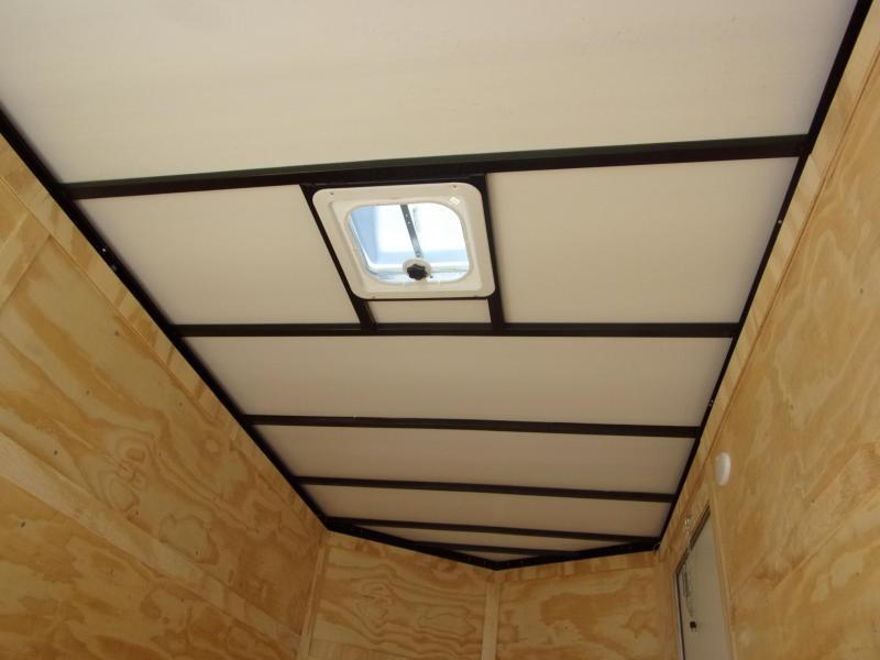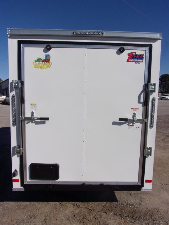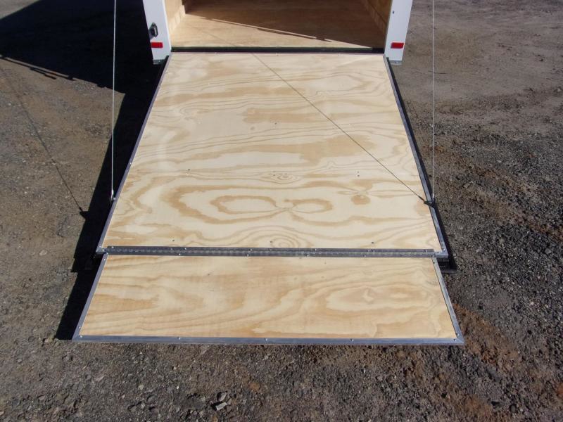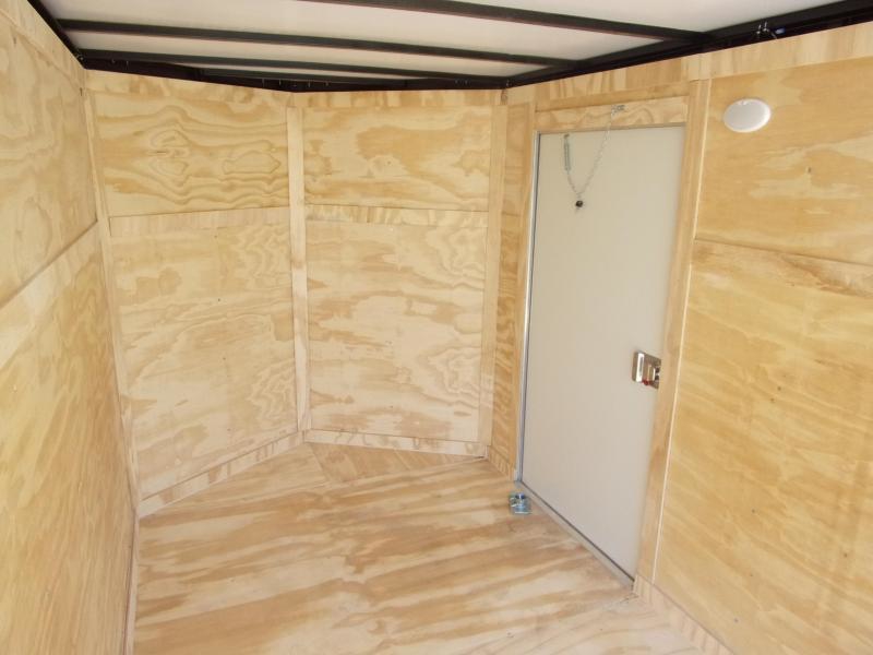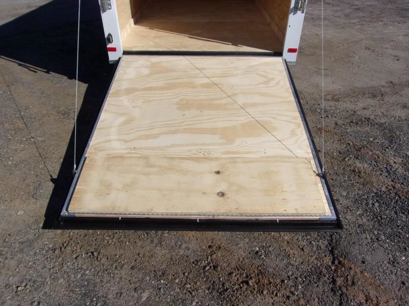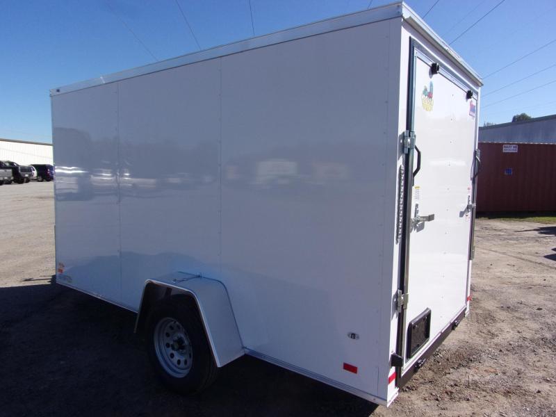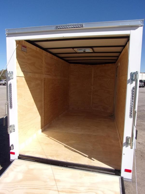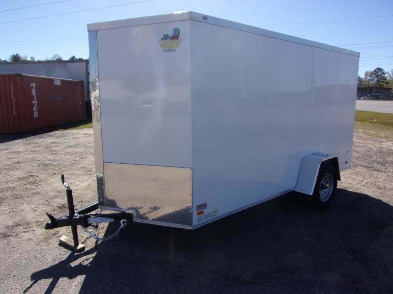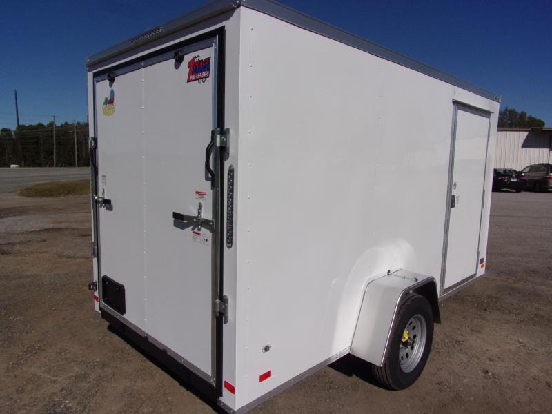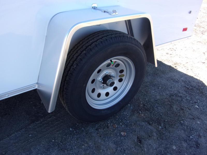 800-543-1810 FREE WHITE WHEEL SPARE TIRE WHEN YOU PAY CASH at pick up 6x12 6ft 6 in enclosed cargo trailer White Standard Features 16" O.C. Cross Members Semi-Screwed Exterior ST205 15" Steel Belted Tires E-Z Lube Hubs 24" O.C. Roof Members Interior Height 78" 1-pc. Aluminum Roof 4-Way Plug 16" O.C. Side Walls " Plywood Floors 1-12 Volt Dome Light Ramp Door 2" A-Frame Coupler 8mm Birch Luan Jeep Style Fenders 2-K Jack 11ga. 3" Tube Main Frame 24" ATP Stone Guard Incandescent Tail Lights 36" Side Door w RV style Lock V-nose (2') Safety Door Chain 0.024 Alum side Metal Mods Rims 2990# Leaf Spring Drop Axle 800-453-1810 Any questions concerns or Info on this trailer please call our sales team delv is $2.00 per loaded mile Please call to check stock 800-453-1810