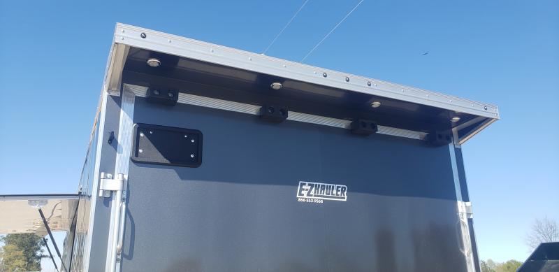 The E-Z Hauler Aluminum Trailers Standard Car Hauler Series offers 100% box tube aluminum construction and features 16" o/c wall and ceiling studs throughout. With a hidden beaver-tail this aluminum trailer is designed specifically for car hauling. These aluminum car haulers come standard with LED lights radials and screw-less exterior.