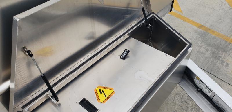 This unique suspension system enables the user to raise and lower the equipment trailer by using a remote transmitter or switch located at the toolbox storage system. The patent pending design provides a 4-degree approach angle enabling easy loading of equipment with minimal ground clearance; such as scissor lifts sports cars motorcycles and so much more.