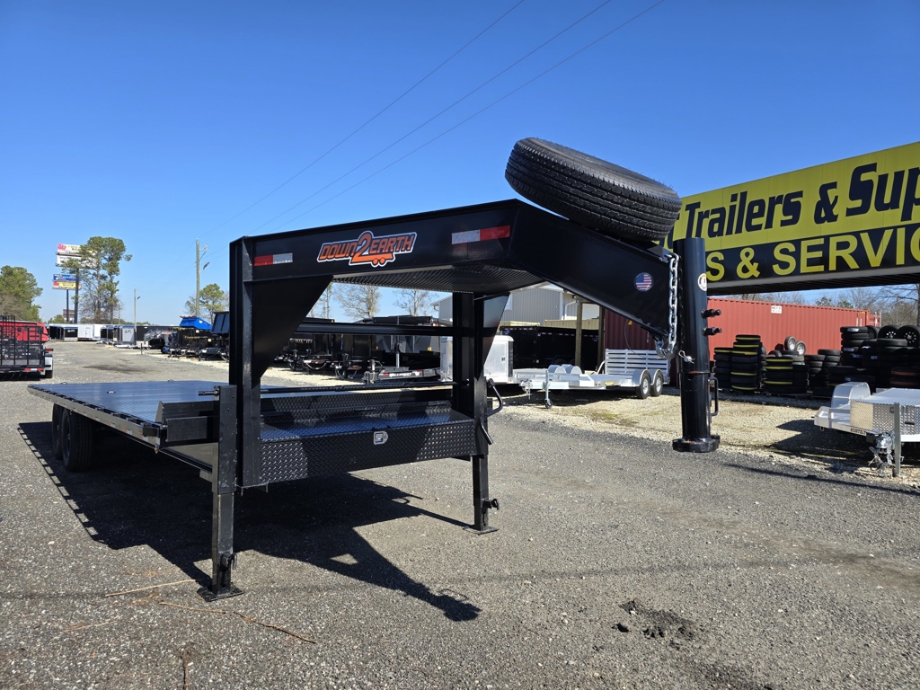 💥 Welcome to Best Trailers & Supply – Your Ultimate Trailer Destination! 💥 📍 Location: Byron, GA 🍑 📞 Call us at 478.654.5350 for Expert Advice and Unbeatable Deals! Down to Earth 102″ x 26′ Gooseneck Deckover Hydraulic Tilt Trailer – 14K GVWR The Down to Earth 102” x 26’ Gooseneck Deckover Hydraulic Tilt Trailer is built for heavy-duty hauling, offering effortless loading and unloading with its hydraulic tilt deck. With a 14,000 lb GVWR, this trailer is designed for contractors, equipment haulers, and professionals who need a durable, reliable, and high-performance trailer. Key Features: Heavy-Duty Construction: 102” wide x 26’ long steel deck for ample cargo space Fully steel deck for superior durability and longevity Powder-coated finish for added protection against rust and wear Hydraulic Tilt System: Twin hydraulic cylinders for smooth tilting operation Electric over hydraulic power unit for effortless deck movement Tilt design eliminates the need for ramps Axles & Suspension: Tandem 7,000 lb E-Z Lube brake axles for stability and safety 235/80R16 tires and wheels for reliable performance on the road Towing & Hitch System: Gooseneck hitch with an adjustable 2-5/16” coupler for a secure connection Dual 12K drop-leg jacks for added stability when parked Lighting & Safety: All LED lighting for maximum visibility Sealed wiring harness for long-term durability Enclosed taillight brackets to protect against damage DOT reflective tape & breakaway kit for added road safety Convenience & Storage: Powder-coated tongue box for secure storage of power unit and battery Spare tire mount included Ideal for: ✔ Hauling heavy equipment, machinery, and materials ✔ Construction, agriculture, and commercial use ✔ Anyone needing a reliable, easy-to-load hydraulic tilt trailer The Down to Earth 102″ x 26′ Gooseneck Deckover Hydraulic Tilt Trailer delivers strength, efficiency, and ease of use, making it the perfect solution for heavy-duty hauling. Contact us today to check availability or customize your trailer! 🚚 Delivery Available at $3 per Loaded Mile! 🚚 📞 For any questions, concerns, or info on this trailer, don’t hesitate to call our dedicated sales team at 478.654.5350! 📍 Visit us at Best Trailers & Supply in Byron, GA or call 478.654.5350 for more information! 🌟