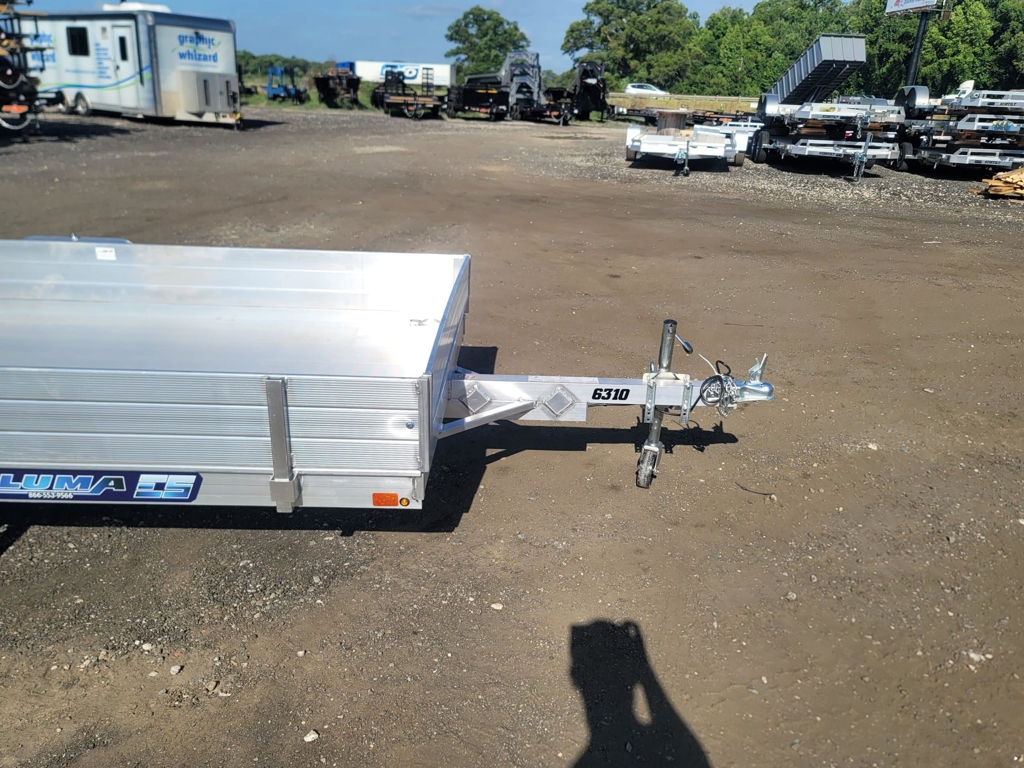 ๐Ÿ’ฅ Welcome to Best Trailers & Supply – Your Ultimate Trailer Destination! ๐Ÿ’ฅ ๐Ÿ“ Location: Byron, GA ๐Ÿ‘ ๐Ÿ“ž Call us at 478.654.5350 for Expert Advice and Unbeatable Deals! Aluma 6310ES Aluminum Utility Trailer with Tailgate and Side Rails The Aluma 6310ES is a lightweight, durable, and versatile all-aluminum utility trailer, designed for hauling ATVs, lawn equipment, and other cargo. With its spaciousย 63โ€ x 10โ€™ bed sizeย and a weight of justย 550 lbs, this trailer is easy to tow and built to last. Key Features Lightweight and Durable: Weighs only 550 lbs for effortless towing and handling. All-aluminum construction ensures resistance to rust and a long lifespan. Spacious Design: Bed Size: 63โ€ x 10โ€™, offering plenty of room for a variety of loads. Includes a 12โ€ aluminum side rail kit and a 6โ€ front retaining bumper to keep cargo secure. Axle and Tires 2000# Rubber Torsion Axle: Provides a smooth ride and requires minimal maintenance. ST175/80R13 LRC Radial Tires: 1,360# capacity per tire for dependable performance. Steel wheels with a 5-4.5 BHP bolt pattern. Convenience and Safety Aluminum Tailgate: Lightweight yet durable for easy loading and unloading. Tie-Down Loops: Two loops per side for securing cargo. Swivel Tongue Jack: 1,200# capacity for effortless trailer positioning. LED Lighting Package: Improves visibility and ensures safety on the road. Safety Chains: Included for secure towing. Specifications Overall Length: 145โ€ Tires: 13โ€ The Aluma 6310ES is the perfect blend of lightweight design, rugged construction, and practical features, making it a top choice for utility work or recreational use.ย Contact us today to learn more or place your order! ๐Ÿšš Delivery Available at $2 per Loaded Mile! ๐Ÿšš ๐Ÿ“ž For any questions, concerns, or info on this trailer, don’t hesitate to call our dedicated sales team at 478.654.5350! ๐Ÿ“ Visit us at Best Trailers & Supply in Byron, GA or call 478.654.5350 for more information! ๐ŸŒŸ