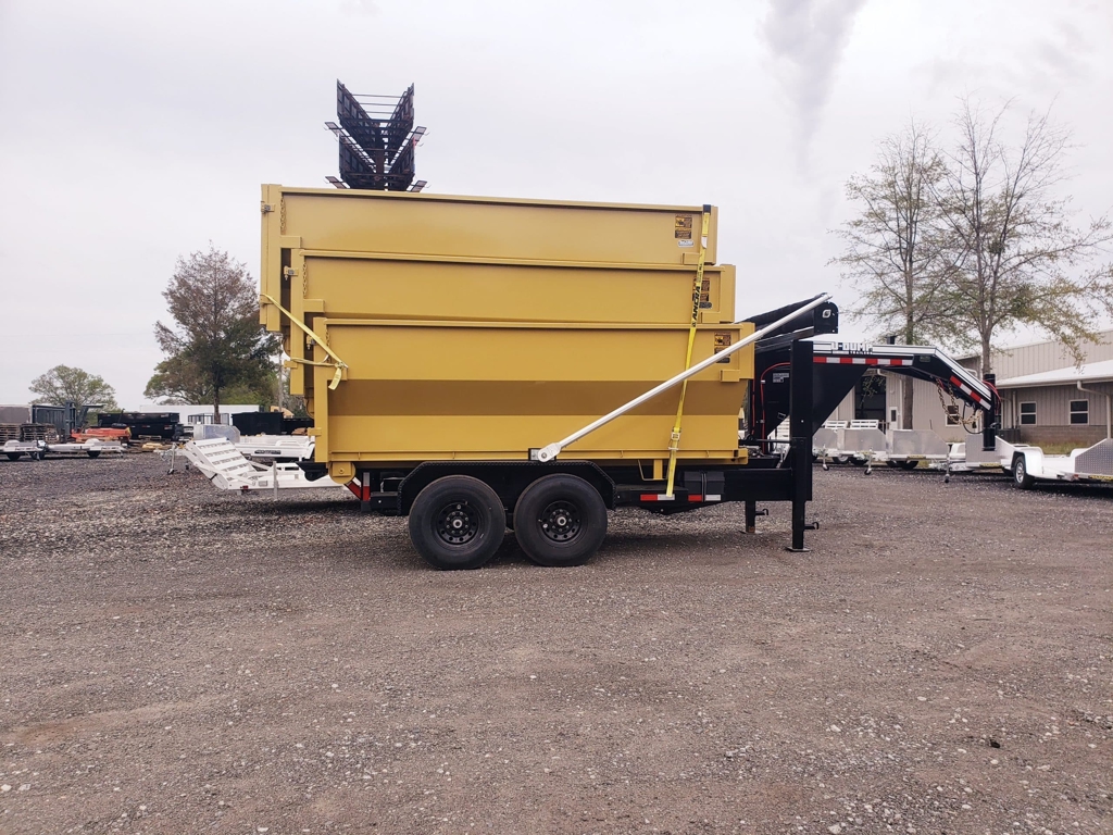 💥 Welcome to Best Trailers & Supply – Your Ultimate Trailer Destination! 💥 📍 Location: Byron, GA 🍑 📞 Call us at 478.654.5350 for Expert Advice and Unbeatable Deals! 🆓 Don’t Miss Out! Get a FREE White Wheel Spare Tire when you Pay Cash at Pick Up! 🆓 this is a package deal 1 trailer (GOOSENECK) and (3) 12 yard dumpsters USA Made Dumpsters – Package Deal When calling, please specify that you want the package deal (1 trailer and 3 x 12-yard dumpsters). The Electric Tarp Upgrade is included in this deal, adding convenience and efficiency to your hauling needs. Standard Features Heavy-Duty Tubing Frame: Designed for maximum durability. 15,000 LB Warn Winch & Snatch Block: Capable of managing heavy loads with ease. Dexter EZ Lube Axles with Self-Adjusting Brakes: Ensures smooth towing and minimal maintenance. Mod Wheels & Radial Tires: Reliable performance with long-lasting tires. 2 5/16″ Adjustable Coupler: Secures the trailer to your towing vehicle. Removable Zinc-Plated Safety Chains with Stow Hooks: Provides extra safety and ease of use. 12K Top Wind Drop Leg Jack: Offers stability during loading and unloading. High-Quality Urethane Paint Primer & Top Coat: Enhances durability and resists weather damage. Sealed Modular Wiring Harness: Reliable electrical connections for safe operation. Grommet Mounted LED Lights: Ensures visibility and safety. Diamond Plate Fenders: Durable and protective. USA Made: Proudly manufactured domestically to high standards. Bucher 12V Hydraulic Power Unit: Features power-up and power-down operation. (2) 12V Deep Cycle Batteries & Onboard Battery Charger: Provides consistent power for hydraulic operations. 12-Yard Roll-Off Dumpsters Capacity: 12-yard capacity, perfect for construction, landscaping, or cleanup jobs. Dimensions: 4 ft tall walls for easy access. Package Includes 1 Trailer 3 x 12-Yard Dumpsters Note: When calling, make sure to mention that you are inquiring about the package deal, not the trailer-only option. 🚚 Delivery Available at $3 per Loaded Mile! 🚚 📞 For any questions, concerns, or info on this trailer, don’t hesitate to call our dedicated sales team at 478.654.5350! 📍 Visit us at Best Trailers & Supply in Byron, GA or call 478.654.5350 for more information! 🌟