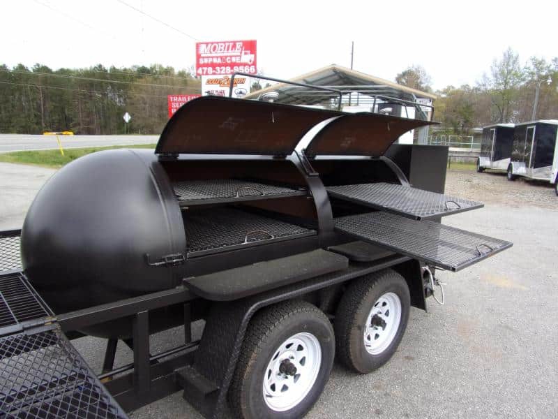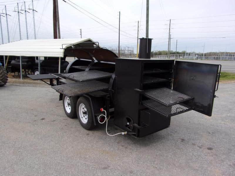 πŸ’₯ Welcome to Best Trailers & Supply – Your Ultimate Trailer Destination! πŸ’₯ πŸ“ Location: Byron, GA πŸ‘ πŸ“ž Call us at 478.654.5350 for Expert Advice and Unbeatable Deals! 500 Gallon Smoker Grill on 6×12 Utility Trailer with Storage & 4 Rack Rib Box This 500 Gallon Reverse Flow Bubba Grill is the ultimate concession smoker for catering and events, offering a professional cooking setup on a 6×12 utility trailer. With a gas starter in the firebox, double burners for versatility, and a storage area, this grill is perfect for large-scale cooking, including smoking ribs, brisket, chicken, and more. Key Features 500 Gallon Smoker – Real wood burning smoker for authentic BBQ flavor Grill & Smoker Options – Smoke or use charcoal for versatile cooking Large Firebox with Gas Starter – Easily start wood or charcoal fires Cooking Capacity: 4 Cooking Racks Inside: Lower rack: 36.5″ x 36.5″ Upper rack: 28.5″ x 36.5″ Reverse airflow plate for efficient smoking Double Burners on Front – Great for fish frying or a low country boil Propane Setup: 2 Propane holders in front for convenience Gas for starting wood or charcoal (not for cooking inside the grill) Safety Features: 2 doors on one side with safety latches Fully welded trailer for durability Safety chains and 2-5/16″ ball coupler for secure towing Temperature Monitorin 2 stainless steel thermometers (500Β°F capacity) for accurate cooking temperatures Easy to Clean – Low-maintenance design for quick setup and breakdown Cargo Area: 14 sq. ft. of storage space for convenience and supplies Trailer & Construction Details 1200Β°F High Temp Coating on the body for long-lasting protection DOT Trailer Lights for safe road use 2 3500 lb. axles with new 15″ tires for smooth towing Perfect for Catering & Events This 500-gallon smoker grill on a 6×12 trailer is built for professionals who need a reliable and versatile BBQ pit for catering, festivals, and large events. With ample cooking space, easy setup, and quality construction, it’s the perfect addition to any mobile kitchen or concession operation. πŸ“ž Call us today for pricing and availability! 🚚 Delivery Available at $2 per Loaded Mile! 🚚 πŸ“ž For any questions, concerns, or info on this trailer, don’t hesitate to call our dedicated sales team at 478.654.5350! πŸ“ Visit us at Best Trailers & Supply in Byron, GA or call 478.654.5350 for more information! 🌟
