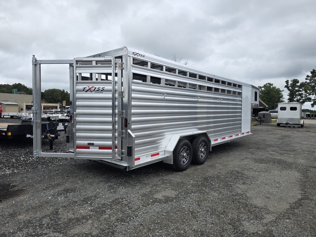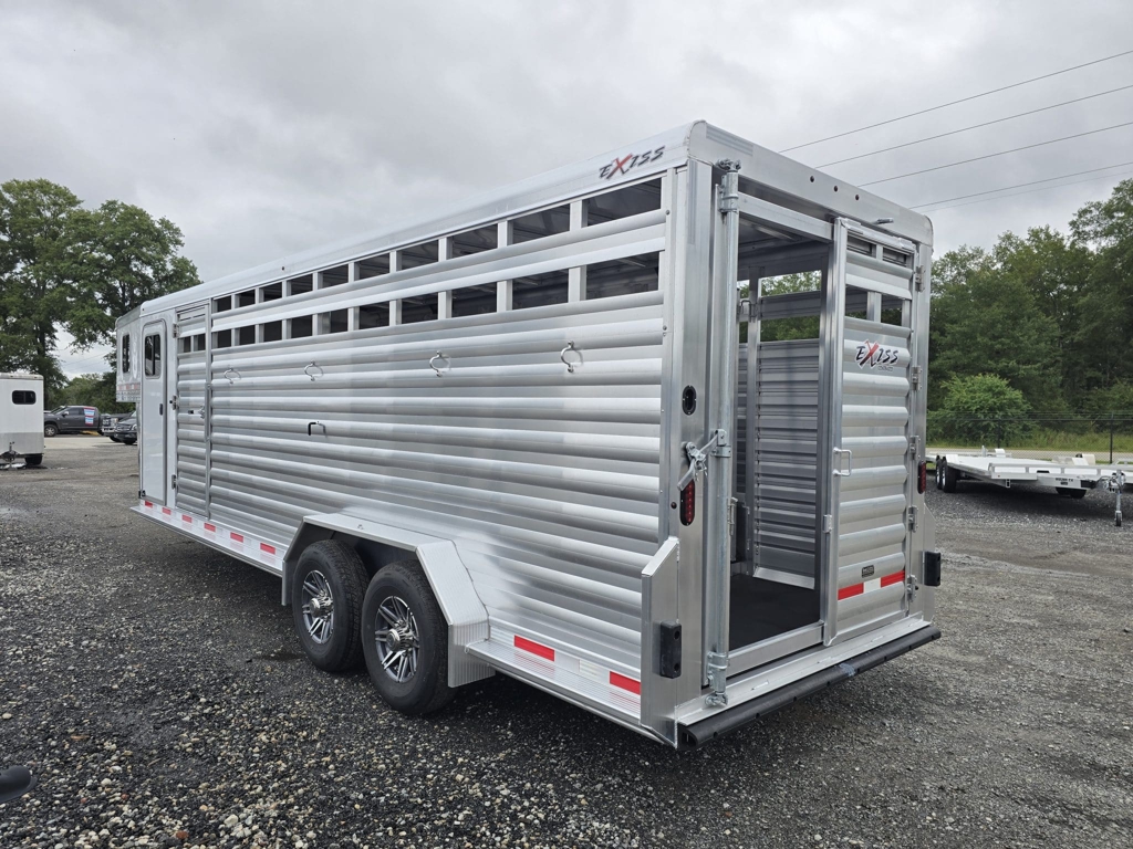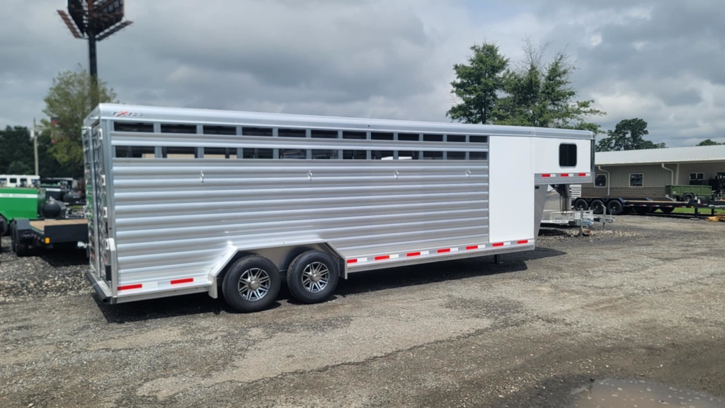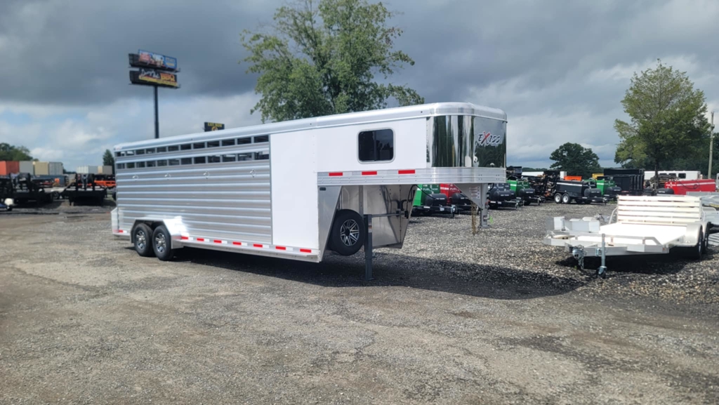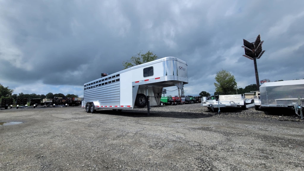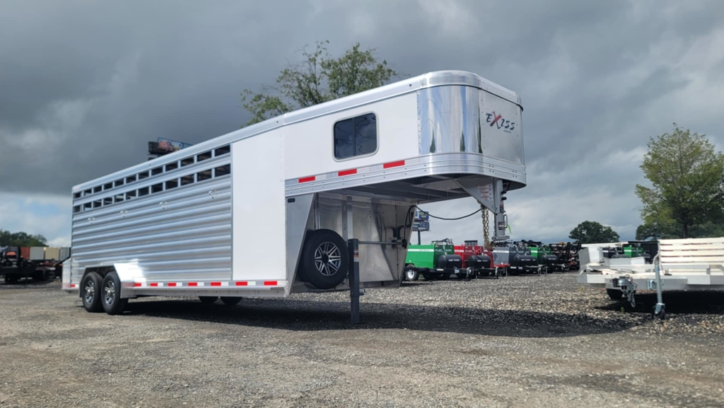 πŸ’₯ Welcome to Best Trailers & Supply – Your Ultimate Trailer Destination! πŸ’₯ πŸ“ Location: Byron, GA πŸ‘ πŸ“ž Call us at 478.654.5350 for Expert Advice and Unbeatable Deals! πŸ†“ Don’t Miss Out! Get a FREE White Wheel Spare Tire when you Pay Cash at Pick Up! πŸ†“ Exiss 7024 Gooseneck Aluminum Livestock Trailer – Durable, Spacious, and Built for Performance The Exiss 7024 Gooseneck Livestock Trailer combines lightweight aluminum construction with heavy-duty performance, making it ideal for transporting cattle, horses, or other livestock safely and efficiently. Built with a 7’0″ exterior width and a 7’2″ interior height, this trailer offers ample space for your animals while maintaining strength and stability. Featuring extruded aluminum slats along the stock area and a .063 white aluminum sheeted rounded nose, it delivers both durability and a clean, professional appearance. Two air gaps with Plexiglas tracks ensure proper ventilation, while the full swing rear door with a half-slide and full swing center gate with slam latch make loading and unloading smooth and secure. Equipped with (2) 7,000 lb. rubber torsion axles with electric brakes, 16” aluminum wheels, and a full-width rear rubber bumper, this trailer is designed for long-lasting performance on the road. The interlocking extruded aluminum non-skid floor with stall mats provides safe footing, and the 4’ tack room with saddle holders, LED lighting, and storage over the gooseneck keeps your gear organized. Key Features: Length: 24 ft. (available in lengths from 16’ to 30’) Gooseneck hitch with adjustable 2 5/16” coupler and single-leg landing gear Heavy-duty 37” side access door with air gaps LED interior and exterior lighting for enhanced visibility Pre-framed windows in gooseneck area 3 year transferable warranty for added peace of mind Whether you’re hauling to the market, a show, or between pastures, the Exiss 7024 Gooseneck Livestock Trailer offers the durability, functionality, and ease of use that livestock owners demand. 🚚 Delivery Available at $2 per Loaded Mile! 🚚 πŸ“ž For any questions, concerns, or info on this trailer, don’t hesitate to call our dedicated sales team at 478.654.5350! πŸ“ Visit us at Best Trailers & Supply in Byron, GA or call 478.654.5350 for more information! 🌟