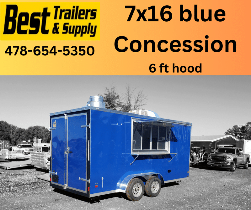 πŸ’₯ Welcome to Best Trailers & Supply – Your Ultimate Trailer Destination! πŸ’₯ πŸ“ Location: Byron, GA πŸ‘ πŸ“ž Call us at 478.654.5350 for Expert Advice and Unbeatable Deals! πŸ†“ Don’t Miss Out! Get a FREE White Wheel Spare Tire when you Pay Cash at Pick Up! πŸ†“ 7′ x 16′ Concession Trailer with Sink Package – Fully Equipped and Ready to Serve This 7′ x 16′ concession trailer with a sink package and 6 ft hood is perfect for food vendors, caterers, or event organizers looking to start or expand their mobile business. Built for efficiency, comfort, and durability, this trailer features everything you need to run a successful operation. Key Features: 7000 lb GVWR for reliable hauling and heavy-duty use 7′ interior height for spacious and comfortable work environment 3×6 window with glass and screen for easy customer interaction Full finished interior with electric package, including a motorbase plug Sink package with tanks and water heater for sanitation and convenience 6′ hood for kitchen ventilation and safety AC unit with heat for year-round comfort Barn door for easy access and loading/unloading Silver mod wheels for durability and a sleek look Stabilizer jacks for added security when parked 3500 lb axles with electric brakes for safe towing 15″ tires (205/75R15) for smooth and reliable towing Flat front for sleek and aerodynamic design Side door with RV lock for security and easy access One-piece aluminum roof for durability and weather protection 3/4″ wood floor with rubber covering for easy cleaning 3/8″ wood walls with metal covering for added durability and protection .030 blue metal exterior for a modern and attractive appearance Side door with RV-style lock for security This concession trailer is designed to meet the needs of mobile food businesses with all the essential features and premium upgrades for a professional setup. Perfect for festivals, fairs, markets, or catering events, it’s ready to hit the road and start serving. πŸ“ž Call today for more details, pricing, and availability! 🚚 Delivery Available at $2 per Loaded Mile! 🚚 πŸ“ž For any questions, concerns, or info on this trailer, don’t hesitate to call our dedicated sales team at 478.654.5350! πŸ“ Visit us at Best Trailers & Supply in Byron, GA or call 478.654.5350 for more information! 🌟