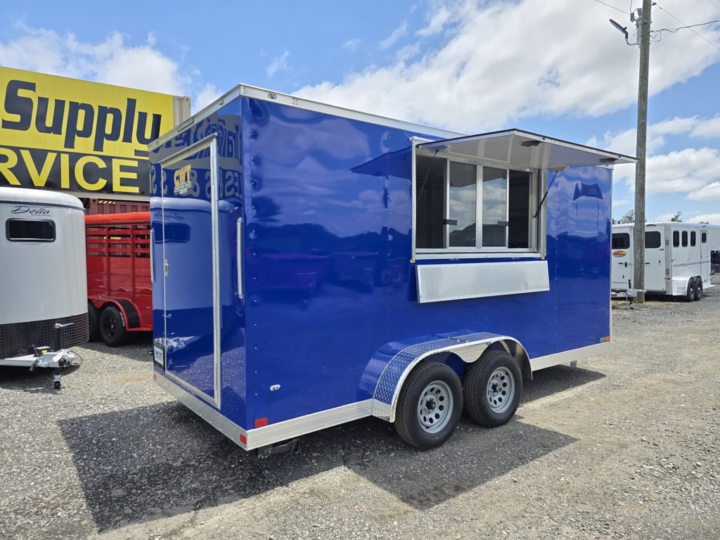Concession/Vending 2025 7X16 Covered Wagon Trailers 7X16 blue concession trailer w sinks and powe