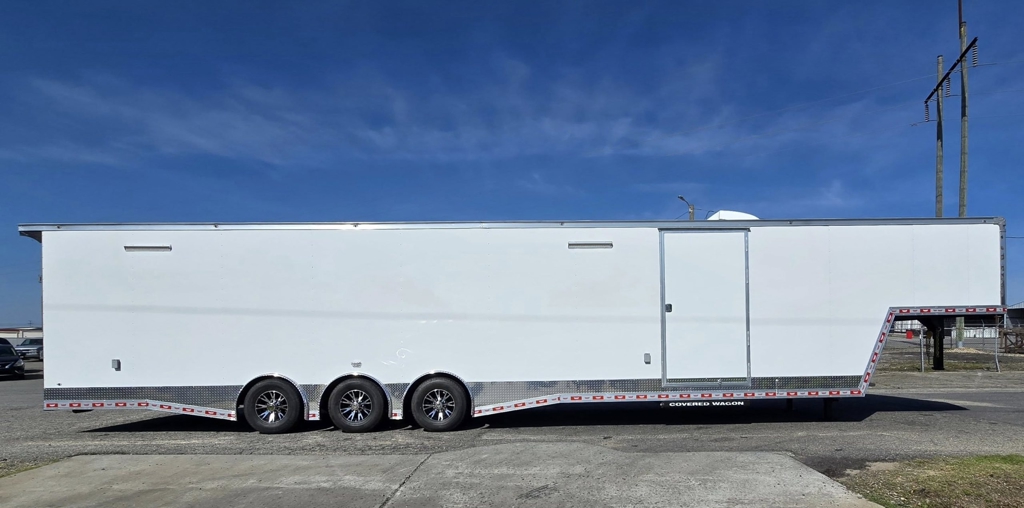 πŸ’₯ Welcome to Best Trailers & Supply – Your Ultimate Trailer Destination! πŸ’₯ πŸ“ Location: Byron, GA πŸ‘ πŸ“ž Call us at 478.654.5350 for Expert Advice and Unbeatable Deals! πŸ†“ Don’t Miss Out! Get a FREE White Wheel Spare Tire when you Pay Cash at Pick Up! πŸ†“ Covered Wagon 8.5′ x 44′ Gold Mine Series Gooseneck Trailer – Heavy-Duty Performance, Premium Build When you need serious hauling capability paired with professional-grade construction, the Covered Wagon 8.5′ x 44′ Gold Mine Series Gooseneck Trailer delivers. Built tough for commercial use, this trailer offers strength, versatility, and premium upgrades throughout. Key Features: Size: 8.5′ x 44′ overall length Axles: Triple 7,000 lb torsion axles for smooth, reliable towing Frame: Heavy-duty 8” main frame with 6” steel tubing walls Exterior: .030 White Aluminum Siding with Stagecoach Exterior Trim Package Floorin Upgraded RTP Rubberized Tread Plate Floor Ramp: Heavy-duty rear ramp with flap for easy loading Side Access: 48” Side Door with Flush Lock and Step Roof: One-piece, seamless roof for extra durability Electrical & Lightin 50 Amp Electrical Package with Marine Battery Box 24″x6′, 12V LED Surface Mount Flood/Spot Lights (2 units) LED DOT Approved Lighting Exterior Scene Lights with Overhead and Side Spoiler Lights 110V GFI Receptacles and Interior/Exterior LED Lighting Interior Upgrades: Stagecoach Anodized Radius Front Corners with Top & Bottom Trim Extrusions White Vinyl Walls and Ceiling Black and White Rubber Coin Floor and Ramp 12V Marine Battery, Power Converter/Charger Additional 12V Lights and 110V Power Package Convenience Features: Generator-Ready Setup with Slide Tray and Gen Box (40″x32″) 50 Amp MBP with Female Connector Base Cabinet Storage in Front 6′ x 6′ Front Nose Ramp for easy loading/unloading at the V-nose Additional Spoiler Lighting with 15” White Down Lights Perfect For: Mobile command centers Large equipment hauling Race teams or motorsports setups Commercial and industrial use 🚚 Delivery Available at $2 per Loaded Mile! 🚚 πŸ“ž For any questions, concerns, or info on this trailer, don’t hesitate to call our dedicated sales team at 478.654.5350! πŸ“ Visit us at Best Trailers & Supply in Byron, GA or call 478.654.5350 for more information! 🌟