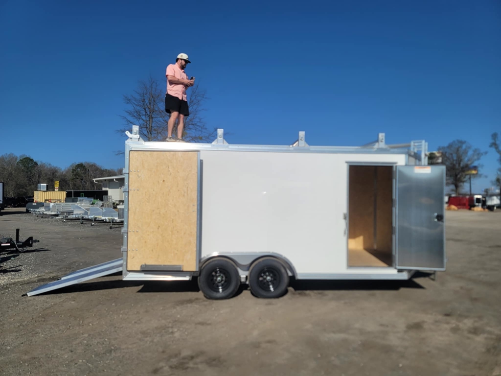 💥 Welcome to Best Trailers & Supply – Your Ultimate Trailer Destination! 💥 📍 Location: Byron, GA 🍑 📞 Call us at 478.654.5350 for Expert Advice and Unbeatable Deals! 🆓 Don’t Miss Out! Get a FREE White Wheel Spare Tire when you Pay Cash at Pick Up! 🆓 EZ Hauler 8.5′ x 16′ Ultimate Contractor Trailer – Built for Professionals The EZ Hauler 8.5’ x 16’ Ultimate Contractor Trailer is a lightweight, all-aluminum enclosed trailer designed for contractors, builders, and professionals who need a secure, efficient, and organized mobile workspace. With rugged construction, premium features, and customizable options, this trailer is built to handle tools, equipment, and materials while maintaining durability and ease of use. Key Features: Heavy-Duty Construction & Frame: All-aluminum integrated frame design for lightweight durability 2” x 5” subframe for added strength 16” O/C floor, wall, and roof studs for maximum support One-piece Translucent roof for long-lasting protection and added light Screwless .080 bonded aluminum side panels for a smooth, professional look V-nose construction (36”) for improved aerodynamics and extra storage Spacious & Functional Interior: Interior Dimensions: 96”W x 15’10”L x 79”H for a roomy workspace 3/4” water-resistant decking for durability and easy cleanup 3/8” water-resistant interior walls for enhanced strength and longevity Interior cove trim for a clean, finished look (2) Interior LED dome lights with switch for superior visibility Loading & Access Features: Rear barn doors with stowable ramp kit for easy equipment loading 91” x 75” rear door opening for larger tools and materials 32” x 72” side access door for convenient entry Catwalk system with (4) HD ladder racks & front ladder for extra storage options Rear roller for last ladder rack to assist with loading Axles, Suspension & Towin Tandem 5,200 lb braked leaf spring axles with 4” drop for smooth towing 10,000 lb GVWR for heavy-duty hauling capacity 15” silver mod wheels with 205/75R15 tires for reliable performance 2-5/16” coupler with 10,000 lb center jack for secure hitching Exterior LED lighting & safety chains for increased visibility and security Ideal for: ✔ Contractors, electricians, and builders needing a mobile workspace ✔ Secure equipment storage and tool organization ✔ A high-quality, lightweight, and durable enclosed trailer The EZ Hauler 8.5’ x 16’ Ultimate Contractor Trailer is engineered for strength, efficiency, and convenience, making it the perfect mobile workshop for professionals. Contact us today to check availability or customize your trailer! 🚚 Delivery Available at $2 per Loaded Mile! 🚚 📞 For any questions, concerns, or info on this trailer, don’t hesitate to call our dedicated sales team at 478.654.5350! 📍 Visit us at Best Trailers & Supply in Byron, GA or call 478.654.5350 for more information! 🌟