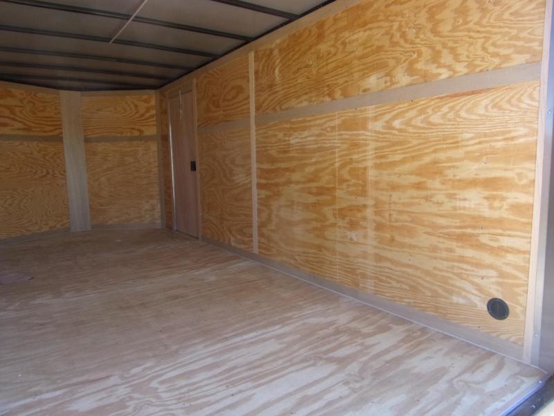 Mobile Space Sale and Rental Bonaire GA 800-453-1810 FREE WHITE WHEEL SPARE TIRE WHEN YOU PAY CASH at pick up Up grades on this 7X16 Trailer Charcoal Square tube cross-members in Floor Walls & Ceiling 6FT 3 IN Loading Light Standard Features V-Nose adds 2' to the interior Screwless Exterior ST205 15" Steel Belted Tires 24" O.C. Roof Members Galvalume Roof Electric Brakes & E-Z Lube Hubs 16" O.C. Side Walls and Floor 3/4" Plywood Floors 1-12 Volt LED Strip on Ceiling 7-Way & Electric Breakaway 2-5/16" Coupler 3/8" Plywood Walls Salem Vents amp & 16" Flap 2-K Jack 4" Tube Frame 24" ATP Stone Guard & J-Rail Alum. Teardrop Style Fenders 36" Side Door w RV style. Locks LED Light Package 0.024 White Alum. Metal White Mods Rims 3500# Leaf Spring Drop Axle Deluxe Tag Bracket 800-453-1810 Any questions concerns or Info on this trailer please call our sales team delv is $1.50 per loaded mile Please call to check stock 800-453-1810
