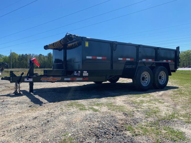 Down to Earth is proud to offer quality dump trailers for sale at the lowest possible price. Our dump trailers are built for performance. We can even make a custom dump trailers to fit your specific needs and your budget. Our premium features Low Profile Dump Trailers are offered in 7 000 10 000 12 000 and 14 000 lb. GVWR's. The standard sides are 24 tall with two-way tailgates that open for unobstructed dumping or can be set in spreader mode for spreading gravel. An adjustable coupler is included as standard on most models. The 7 000 and 10 000 GVWR models have a 6 main frame. The 12 000 and 14 000 GVWR models are built with a rugged 8 channel main frame. Cylinder sizes are matched to the model capacity.