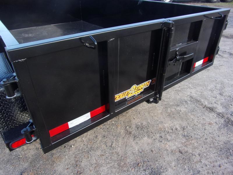 Down to Earth is proud to offer quality dump trailers for sale at the lowest possible price. Our dump trailers are built for performance. We can even make a custom dump trailers to fit your specific needs and your budget. Our premium features Low Profile Dump Trailers are offered in 7 000 10 000 12 000 and 14 000 lb. GVWR's. The standard sides are 24 tall with two-way tailgates that open for unobstructed dumping or can be set in spreader mode for spreading gravel. An adjustable coupler is included as standard on most models. The 7 000 and 10 000 GVWR models have a 6 main frame. The 12 000 and 14 000 GVWR models are built with a rugged 8 channel main frame. Cylinder sizes are matched to the model capacity.