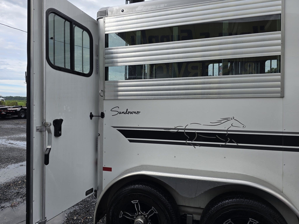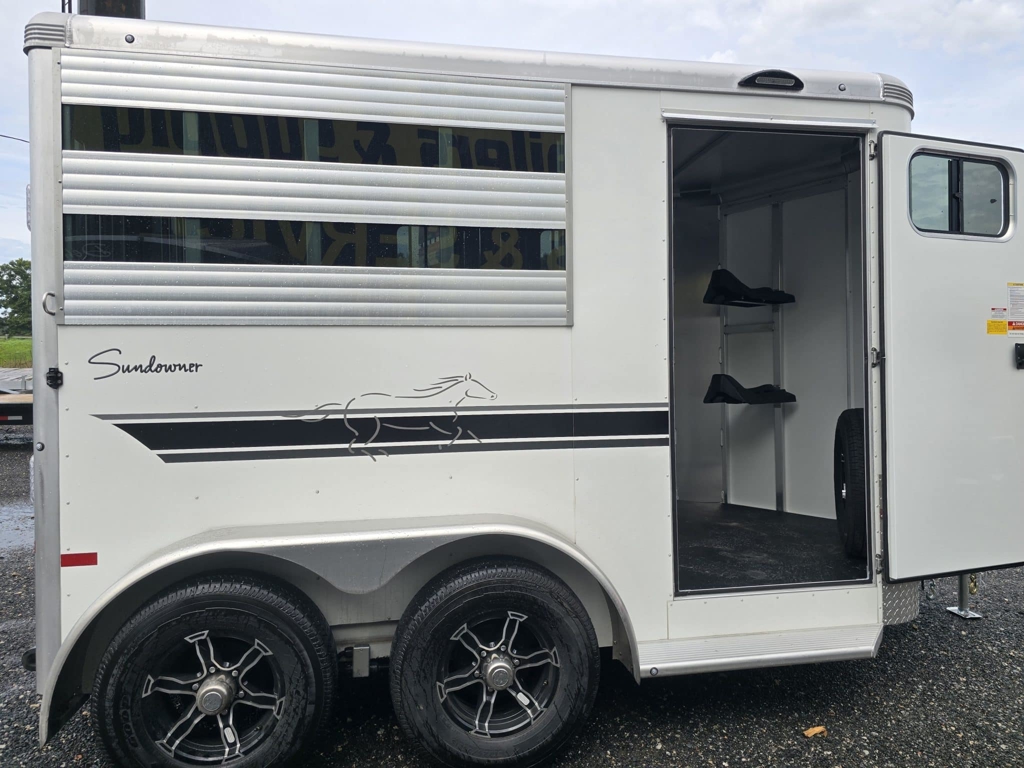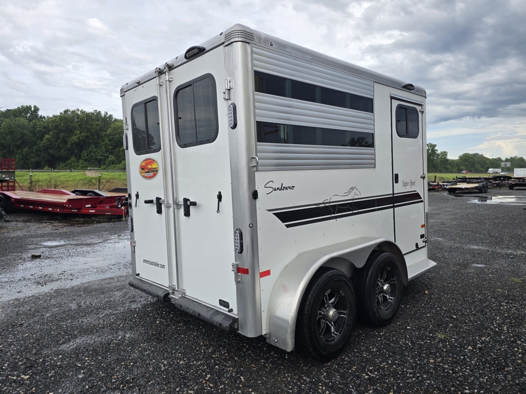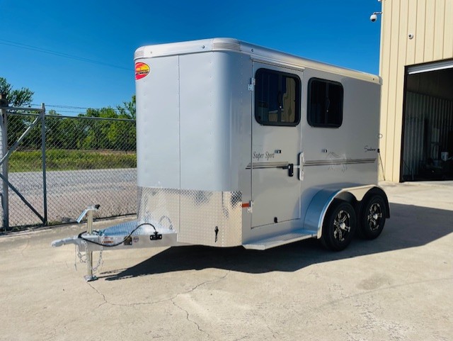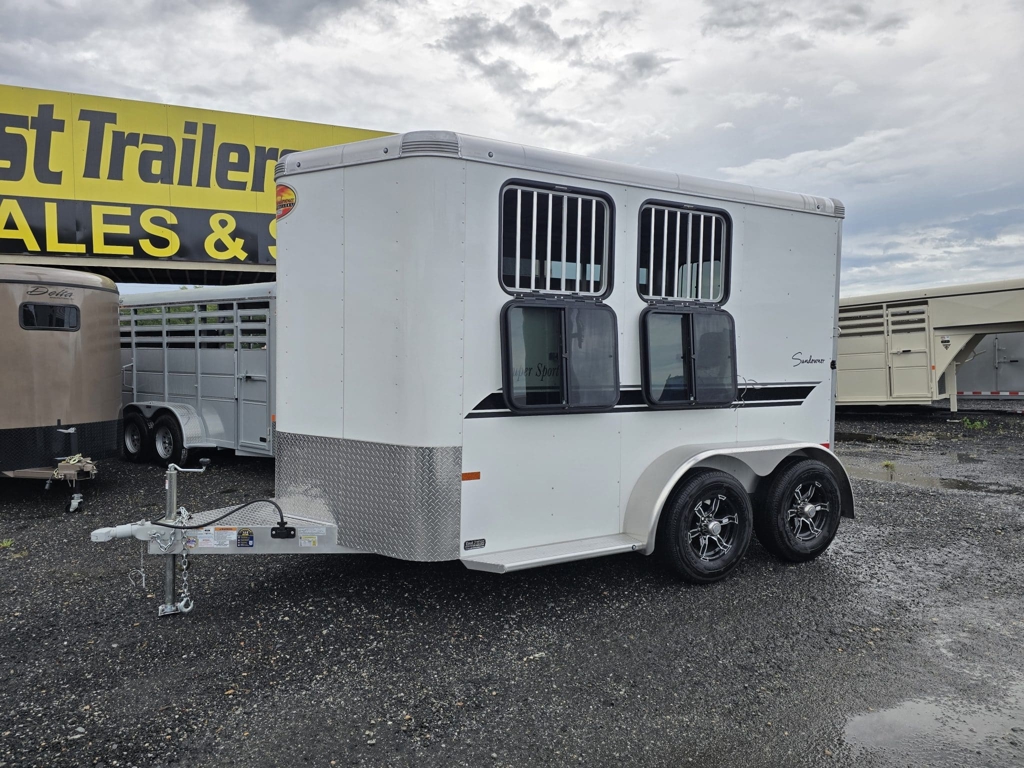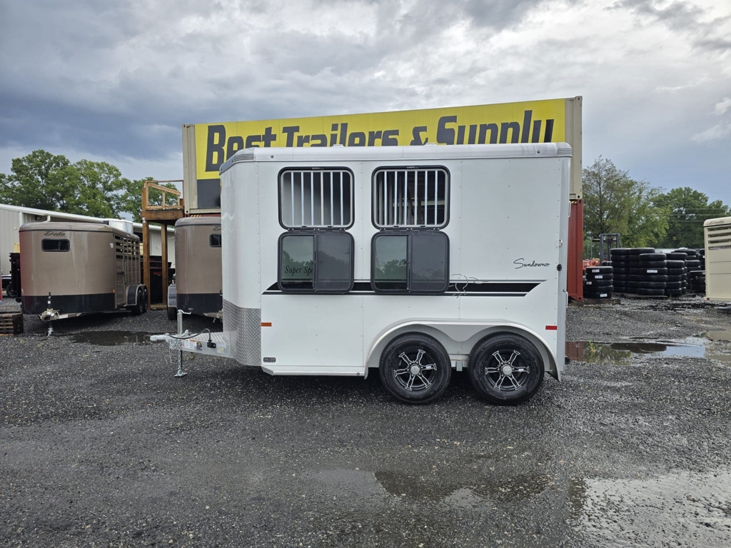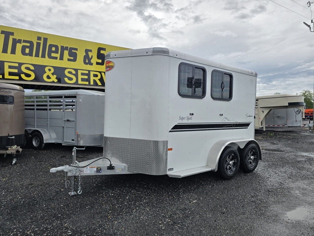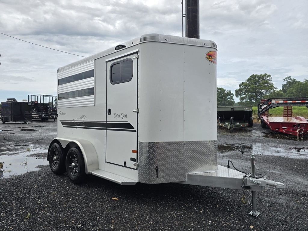 ๐Ÿ’ฅ Welcome to Best Trailers & Supply – Your Ultimate Trailer Destination! ๐Ÿ’ฅ ๐Ÿ“ Location: Byron, GA ๐Ÿ‘ ๐Ÿ“ž Call us at 478.654.5350 for Expert Advice and Unbeatable Deals! ๐Ÿ†“ Don’t Miss Out! Get a FREE White Wheel Spare Tire when you Pay Cash at Pick Up! ๐Ÿ†“ Sundowner Super Sport 2 Horse Bumper Pull TrailerBuilt for the safety of your horses and the convenience of your travel, the Sundowner Super Sport 2 Horse Bumper Pull Trailer is a premium, all-aluminum slant-load trailer that combines function, durability, and comfort into one sleek package. Key Features: Size & Capacity:6’9″ wide with a 7′ interior height, designed to comfortably fit two horses with 39″ stall widths.Slant-load layout maximizes space and horse comfort. Construction:All-aluminum build with I-beam crossmembers and tube frame walls ensures long-lasting performance and rust resistance.Finished with a pre-painted aluminum exterior skin and full-length running boards. Horse Area: Padded airflow head and shoulder dividers 48″ Suncoatedโ„ข lined and insulated walls Drop-down feed windows with face grills on the head side Two air gaps with removable Plexiglas on the rump side Double rear doors with sliding windows Pop-up vent per stall for airflow Rubber floor mats and dome light in the horse area Two inside and one outside tie rings per stall Tack Room: Locking front tack door with sliding window Rubber floor mats Dome light for visibility 6 bridle hooks and a saddle rack per stall Additional Equipment: Rubber torsion axles 4-wheel electric brakes with safety breakaway LED clearance and tail lights Top-wind jack and rear rubber bumper Exterior graphics for a clean, stylish look Whether you’re headed to a local show or a weekend getaway, the Sundowner Super Sport offers everything you need in a lightweight, well-built trailer. Reliable, secure, and thoughtfully designedโ€”this trailer has it all. ๐Ÿšš Delivery Available at $2 per Loaded Mile! ๐Ÿšš ๐Ÿ“ž For any questions, concerns, or info on this trailer, donโ€™t hesitate to call our dedicated sales team at 478.654.5350! ๐Ÿ“ Visit us at Best Trailers & Supply in Byron, GA or call 478.654.5350 for more information! ๐ŸŒŸ