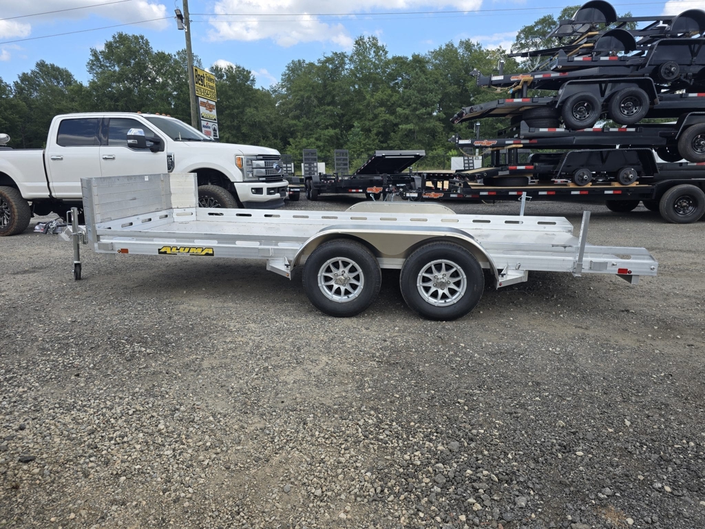 Aluma 7816 7800-Series Tandem Utility Trailer The Aluma 7816, part of the 7800 Series, is a lightweight, all-aluminum utility trailer built for durability, low maintenance, and versatile hauling. Ideal for lawn care, equipment transport, or general utility use, it offers strength without the excess weight. Key Specifications GVWR: 7,000 lb (2 × 3,500 lb axles) Curb Weight: Approximately 1,050 lb — offers over 5,900 lb payload capacity Deck Size: 78″ wide × 192″ long (16′) Tires & Wheels: ST205/75R14 radial tires on 14″ aluminum wheels; easy-lube hubs Brakes: Electric brakes with breakaway kit Built Tough with Smart Features All-Aluminum Construction: Frame, floor, walls, rails, and fenders resist corrosion Removable Teardrop Fenders: Easy access for maintenance Bi-Fold Tailgate or Ramp Option: Choose bi-fold tailgate or full ramp configuration depending on the model LED Lighting & Sealed Wirin DOT-compliant for safety and visibility Tie-Downs: Integrated stake pockets and rub rails offer flexible cargo securing Why Choose the 7816? High payload capacity: Over 5,900 lb Durable, rust-resistant aluminum build Lightweight and easy to tow Versatile tailgate options for multiple cargo types Low maintenance and built to last Perfect for hauling mowers, ATVs, equipment, or materials, the Aluma 7816 delivers professional-grade reliability with the convenience of an aluminum frame and a compact, easy-to-use design.