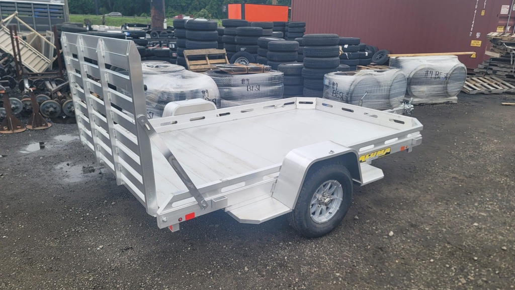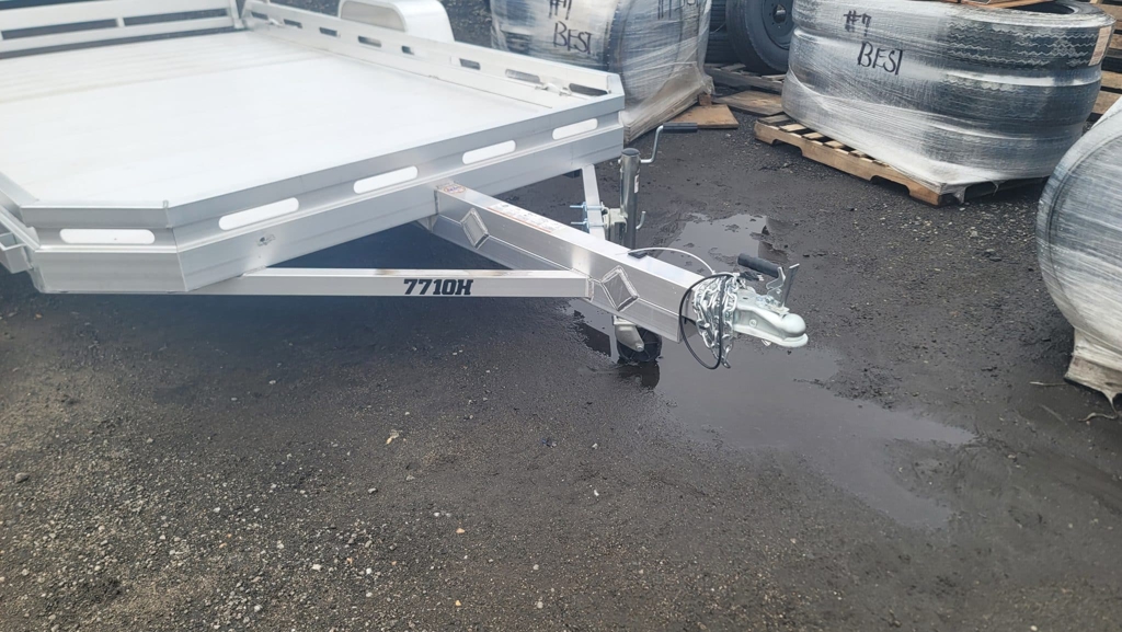 πŸ’₯ Welcome to Best Trailers & Supply – Your Ultimate Trailer Destination! πŸ’₯ πŸ“ Location: Byron, GA πŸ‘ πŸ“ž Call us at 478.654.5350 for Expert Advice and Unbeatable Deals! Aluma 7710 Heavy Duty Utility Trailer with 3500# Axle and 24β€³ Slat Sides The Aluma 7710 is a heavy-duty, all-aluminum utility trailer built to handle tough jobs while staying lightweight and easy to tow. With a 3500# rubber torsion axle, 24” slat sides, and a spacious 77.5” x 44” aluminum tailgate, this trailer is ideal for hauling large loads, construction equipment, or anything that requires a reliable and sturdy platform. Key Features Heavy-Duty Construction: Built with an aluminum frame and extruded aluminum floor, providing strength while remaining lightweight. Front & Side Retaining Rails for added security during transport. Towing and Stability: 3500# Rubber Torsion Axle rated at 2,990# with easy lube hubs for smooth and maintenance-friendly operation. ST205/75R14 LRC Radial Tires with a 1,760# tire capacity for durable, reliable performance. Aluminum Wheels with a 5-4.5 BHP bolt pattern for corrosion resistance. A-Framed Aluminum Tongue (48” long) with a 2” coupler for secure towing. Convenience and Safety Aluminum Tailgate: 77.5” wide x 44” long, lightweight and easy to operate for loading and unloading. Tie-Down Loops and Stake Pockets: 4 Tie-Down Loops (2 per side) and 4 Stake Pockets (2 per side) for versatile cargo securing options. Swivel Tongue Jack: 1,200# capacity for easy trailer positioning. LED Lighting Package: Provides visibility and safety on the road. Safety Chains: Included for secure towing. Specifications Overall Width: 101.5” Tire Size: 14” The Aluma 7710 is a rugged, dependable, and functional trailer, designed for heavy-duty use. Perfect for anyone who needs a strong, lightweight trailer that can handle a variety of tasks. Contact us today to order or learn more! 🚚 Delivery Available at $2 per Loaded Mile! 🚚 πŸ“ž For any questions, concerns, or info on this trailer, don’t hesitate to call our dedicated sales team at 478.654.5350! πŸ“ Visit us at Best Trailers & Supply in Byron, GA or call 478.654.5350 for more information! 🌟