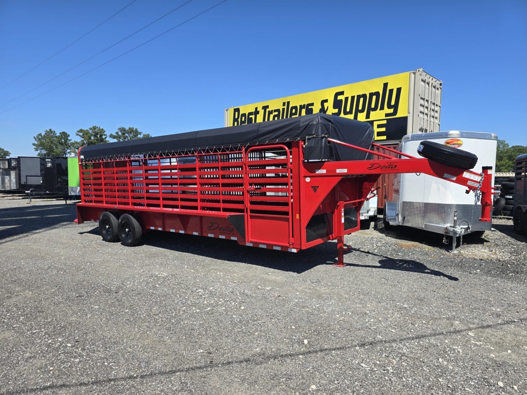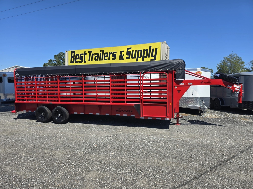 Livestock/Horse Trailer 2026 7X24 Delta Trailers 600 Cattleman Canvas Top Gooseneck -AGLSGN24-070