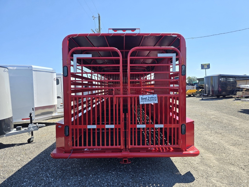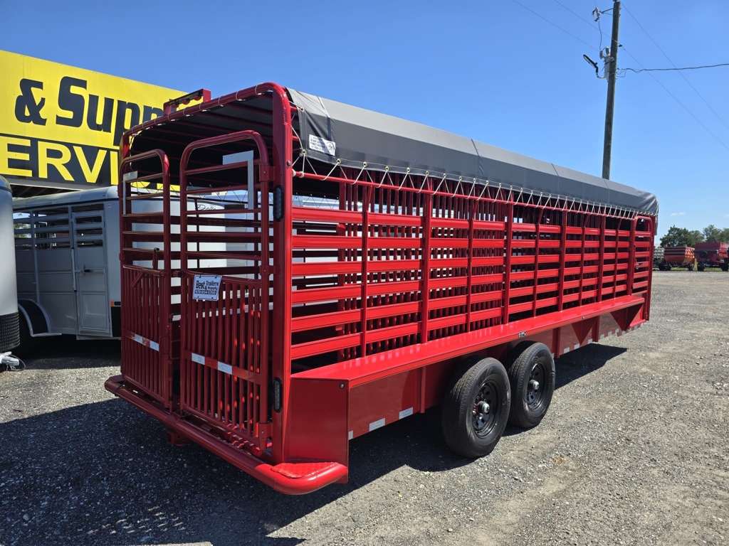 πŸ’₯ Welcome to Best Trailers & Supply – Your Ultimate Trailer Destination! πŸ’₯ πŸ“ Location: Byron, GA πŸ‘ πŸ“ž Call us at 478.654.5350 for Expert Advice and Unbeatable Deals! πŸ†“ Don’t Miss Out! Get a FREE White Wheel Spare Tire when you Pay Cash at Pick Up! πŸ†“ Cattleman 600 Series 24β€² Livestock Trailer – 14K Gooseneck The Cattleman 600 Series 24β€² Livestock Trailer is built for ranchers and haulers who need strength, reliability, and livestock-first design. With heavy-duty steel construction, practical features, and a durable finish, this trailer is ready to handle the daily demands of the pasture, highway, or stockyard. Key Features: Length: 24 ft. GVWR: 14,000 lbs. Axles: Tandem 7,000 lb torsion axles Brakes: Electric brakes on both axles Frame: Strong steel construction with full-length runners and crossmembers Floorin Rubber cleated floor for superior traction and durability Gates: Two cut gates with spring-loaded latches for sorting and dividing livestock Rear Gate: Butterfly rear doors for secure and efficient loading/unloading Side Access: Side door for convenience and easy handling Roof: Black canvas top with rounded design for shade, protection, and added airflow Ventilation: Slatted sides for natural ventilation Lightin Full LED lighting package for enhanced visibility and safety Coupler: 2 5/16β€³ gooseneck for secure towing Finish: Durable, corrosion-resistant paint in red Ideal For: Cattle Sheep and goats Hogs and other livestock Whether you’re running a family farm or managing a large ranch, the Cattleman 600 Series 24β€² Livestock Trailer delivers dependable performance, livestock safety, and long-lasting value. 🚚 Delivery Available at $2 per Loaded Mile! 🚚 πŸ“ž For any questions, concerns, or info on this trailer, don’t hesitate to call our dedicated sales team at 478.654.5350! πŸ“ Visit us at Best Trailers & Supply in Byron, GA or call 478.654.5350 for more information! 🌟