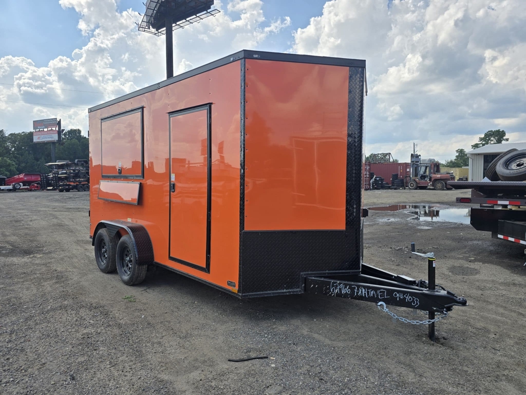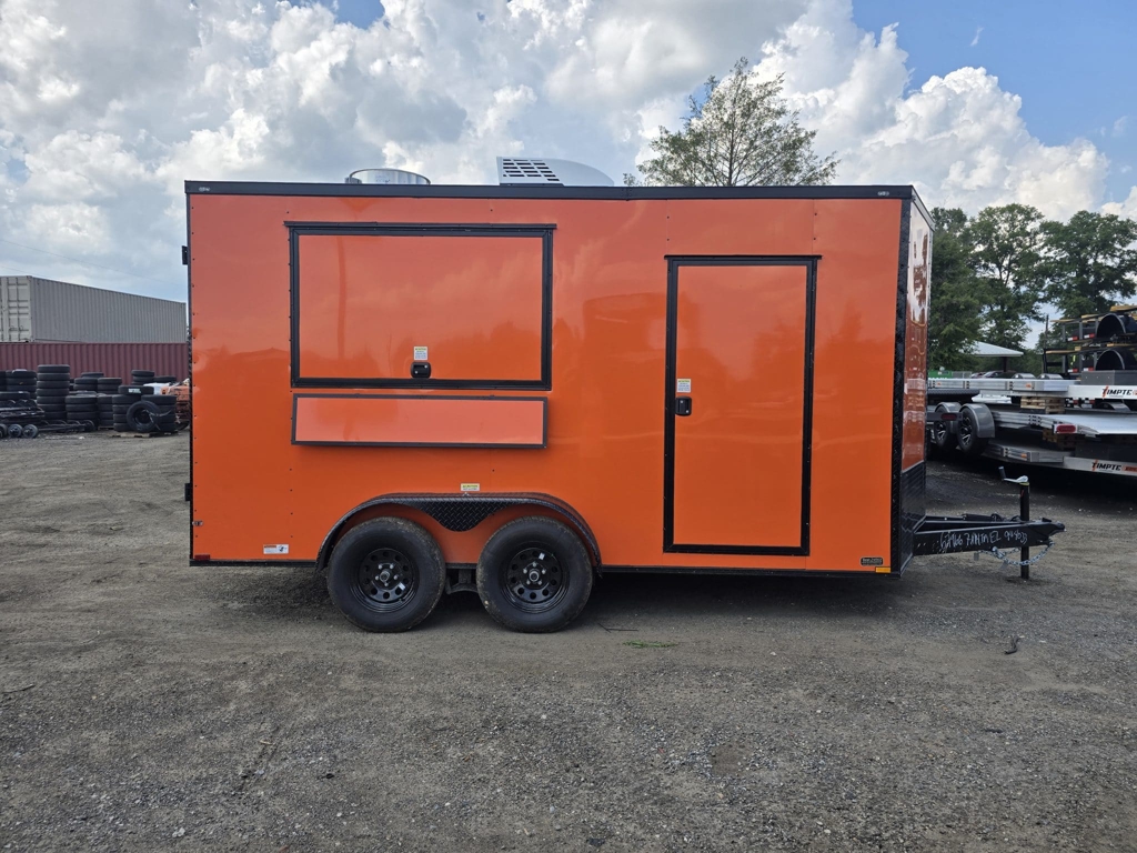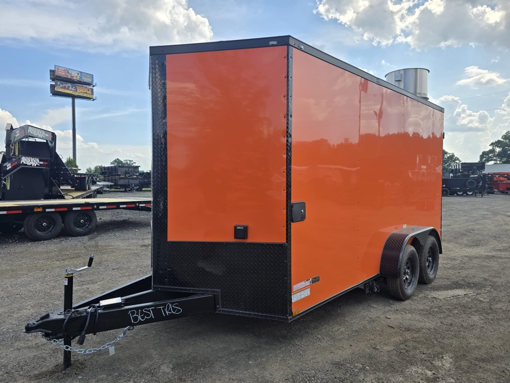 πŸ’₯ Welcome to Best Trailers & Supply – Your Ultimate Trailer Destination! πŸ’₯ πŸ“ Location: Byron, GA πŸ‘ πŸ“ž Call us at 478.654.5350 for Expert Advice and Unbeatable Deals! πŸ†“ Don’t Miss Out! Get a FREE White Wheel Spare Tire when you Pay Cash at Pick Up! πŸ†“ Quality Cargo 7×14 Concession Trailer – Compact, Efficient, and Ready to Work This 7×14′ Quality Cargo concession trailer is built for food service professionals who need a fully functional mobile setup in a smaller, easy-to-tow package. Finished with a sleek blackout trim package and packed with key upgrades, this trailer is ready to be your next mobile kitchen or vending unit. Key Features: Interior Finish: Clean white metal walls and ceiling combined with a heavy-duty rubber tread plate floor create a sanitary, low-maintenance workspace. Electrical System: Includes a 50 AMP electrical package with interior outlets and lighting to power your equipment with ease. Climate Control: A rooftop A/C unit keeps the interior comfortable while you’re working hard. Plumbing Setup: Three-compartment sink and separate hand-wash sink are installed in the front nose of the trailer for health code compliance. Ventilation: Comes with a 4′ commercial hood package, perfect for safely running fryers, grills, or other heat-producing appliances. Access Points: Features a curbside entry door and rear barn doors for convenient loading and staff access. Trailer Frame: Built on tandem 3,500 lb. leaf spring axles for dependable towing and handling. Interior Height: A generous 7’ interior height provides added headroom and working space. Perfect for:Food vendors, event catering, concession businesses, and mobile kitchens looking for a solid foundation with room for custom equipment and branding. 🚚 Delivery Available at $2 per Loaded Mile! 🚚 πŸ“ž For any questions, concerns, or info on this trailer, don’t hesitate to call our dedicated sales team at 478.654.5350! πŸ“ Visit us at Best Trailers & Supply in Byron, GA or call 478.654.5350 for more information! 🌟