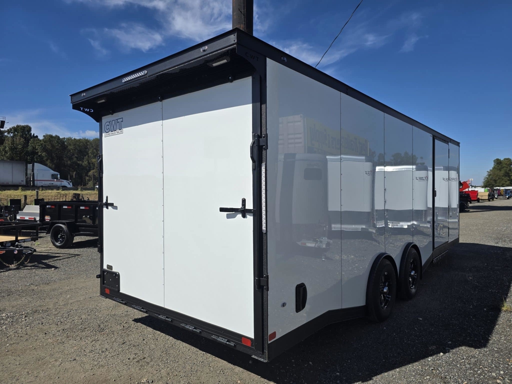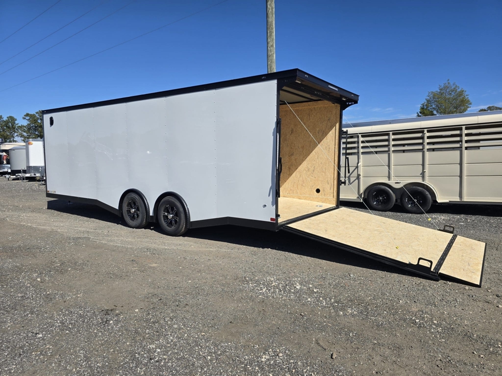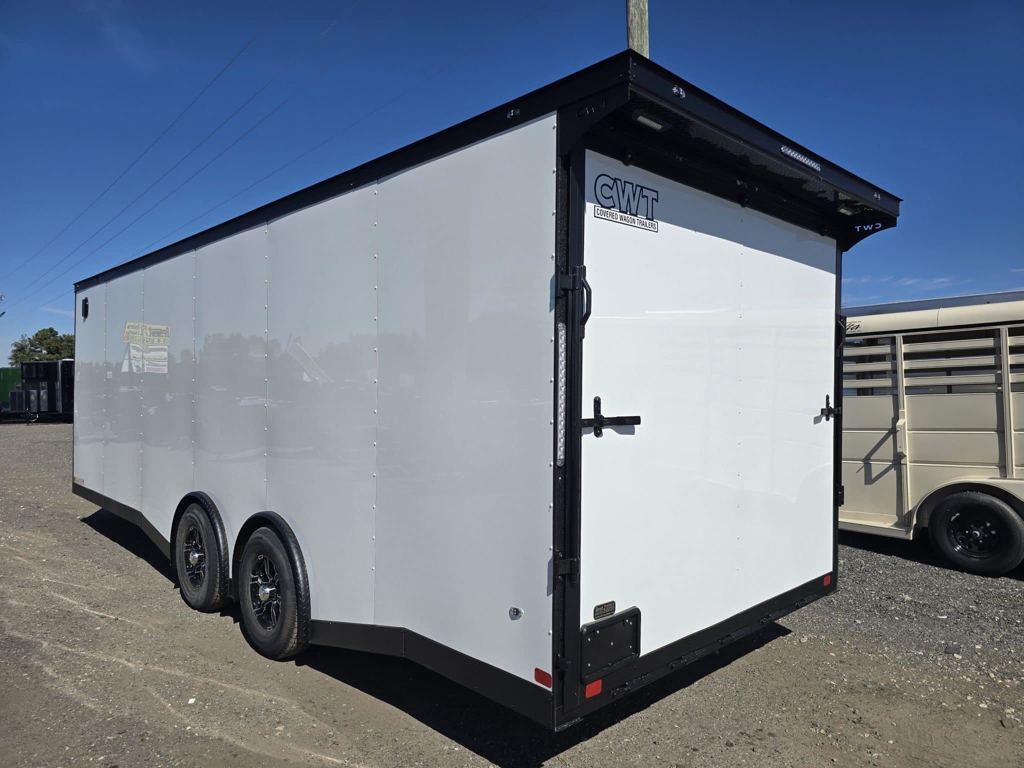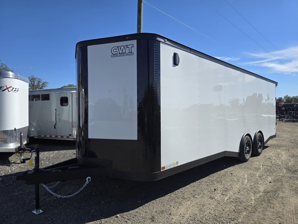 Enclosed 2026 8.5X24 Covered Wagon Trailers 8.5×24 White Blackout Trailer spread axle auto h