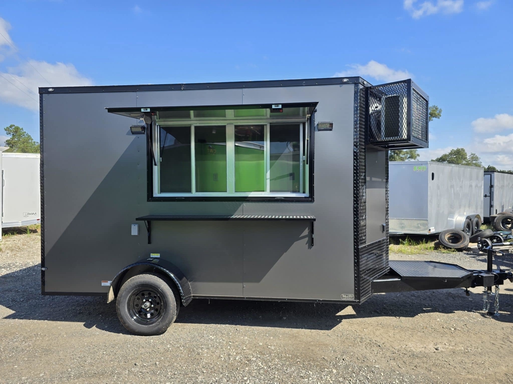 πŸ’₯ Welcome to Best Trailers & Supply – Your Ultimate Trailer Destination! πŸ’₯ πŸ“ Location: Byron, GA πŸ‘ πŸ“ž Call us at 478.654.5350 for Expert Advice and Unbeatable Deals! πŸ†“ Don’t Miss Out! Get a FREE White Wheel Spare Tire when you Pay Cash at Pick Up! πŸ†“ Empire Cargo 6Γ—12 Concession Trailer – Size: 6Γ—12 enclosed concession trailer Color: Charcoal Gray with blackout package Interior: Mill FinishΒ metal walls & ceiling, rubber coin flooring for durability Electrical: 50 AMP electrical package Comfort: Air conditioning installed Kitchen Setup: Sinks in the nose for convenience Tongue: Extended tongue with generator platform Rear Access: Walkthrough door for easy entry/exit Axle: 3,500 lb. leaf spring axle for dependable performance This Empire Cargo concession trailer is designed for fairs, festivals, and food service businesses, giving you a durable and efficient mobile setup with everything you need to get started. 🚚 Delivery Available at $2 per Loaded Mile! 🚚 πŸ“ž For any questions, concerns, or info on this trailer, don’t hesitate to call our dedicated sales team at 478.654.5350! πŸ“ Visit us at Best Trailers & Supply in Byron, GA or call 478.654.5350 for more information! 🌟