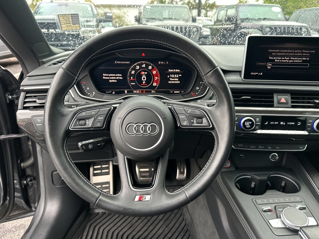 S5 SPORTBACK PRESTIGE AWD, S SPORT PACKAGE, BLACK OPTIC PACKAGE, COLD WEATHER PACKAGE, CARBON ATLAS INLAYS, GPS / NAVIGATION, MOONROOF / SUNROOF, FACTORY 20 INCH WHEELS WITH RED BRAKE CALIPERS, SURROUND VIEW 360 DEGREE CAMERA, BLIND SPOT & CROSS PATH DETECTION, LEATHER INTERIOR, HEATED SEATS, HEATED STEERING WHEEL, BOSE AUDIO, SATELLITE RADIO, KEYLESS ENTRY, PUSH BUTTON START, FRONT & REAR PARK ASSIST SENSORS, BLUETOOTH, STEERING WHEEL MOUNTED AUDIO CONTROLS, DUAL POWER SEAT WITH DRIVER MEMORY, DUAL ZONE FRONT CLIMATE, FACTORY SECURITY SYSTEM, POWER TELESCOPING STEERING WHEEL, FOG LAMPS, TIRE PRESSURE MONITORING DISPLAY, ALL POWER AND MUCH MORE, CARFAX CERTIFIED, EXTENDED WARRANTY AVAILABLE. Daytona Gray Pearl 2019 Audi S5 Sportback Prestige 3.0L TFSI quattro 21/30 City/Highway MPGMUST MENTION OR PRESENT AD AT TIME OF PURCHASE TO RECEIVE THE ADVERTISED PRICE. Welcome to Palmer DCJR! We are proud to be a family-owned business serving the greater Roswell area for 30 years. Here at Palmer, we make customer service our top priority. We are also pleased to be able to offer a buying process that can be completed from start to finish online! We will deliver your new vehicle right to your door. Whether you are in search of your next car or looking for a service center you can trust, Palmer Dodge Chrysler Jeep Ram is the place to go. Give us a call, fill out our online form, or stop by for an incredible automotive experience today! THE ADVERTISED PRICE INCLUDES ALL INCENTIVES INCLUDING IRS EV CREDIT BUT DOES NOT INCLUDE SALES TAX, VEHICLE REGISTRATION FEES, OTHER FEES REQUIRED BY LAW, OR FINANCE CHARGES. SOME OFFERS INCLUDE FINANCING WITH APPROVED LENDERS FOR ADVERTISED PRICE. Palmer Dodge is proudly serving... Atlanta, Buckhead, Duluth, Suwanee, Alpharetta, Cumming, Gainesville, Flowery Branch, Buford, Roswell, Jasper, Canton, Woodstock, Peachtree, Ball Ground, Jefferson, Athens, Augusta, Buford, Conyers, Decatur, Tucker, Milton, Douglasville, Alpharetta, Marietta, Sandy Springs, Dunwoody, Johns Creek, Lawrenceville, Lilburn, Chamblee, Stone Mountain, Vinings, Norcross, Oakwood, Sugar Hill, Athens, Kennesaw, Dawsonville. We also service the following states... Georgia, Florida, Alabama, South Carolina, North Carolina, Mississippi, & more.