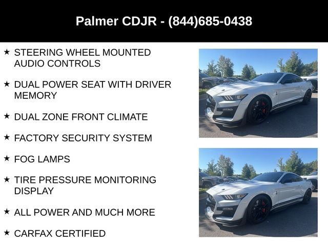 GT500, TECHNOLOGY PACKAGE, HANDLING PACKAGE, EXPOSED CARBON FIBER, VINYL SIDE STRIPES, PAINTED BLACK ROOF, GPS / NAVIGATION, REAR BACK UP CAMERA, AUTOMATIC TRANSMISSION, BLIND SPOT & CROSS PATH DETECTION, LEATHER INTERIOR, TOUCHSCREEN DISPLAY, HEATED SEATS, VENTILATED FRONT SEATS, BANG & OLUFSEN SOUND, SATELLITE RADIO, KEYLESS ENTRY, REMOTE START, SIDE AIRBAGS, REAR PARK ASSIST SENSORS, BLUETOOTH, STEERING WHEEL MOUNTED AUDIO CONTROLS, DUAL POWER SEAT WITH DRIVER MEMORY, DUAL ZONE FRONT CLIMATE, FACTORY SECURITY SYSTEM, FOG LAMPS, TIRE PRESSURE MONITORING DISPLAY, ALL POWER AND MUCH MORE, CARFAX CERTIFIED, INCLUDES THE REMAINDER OF THE FACTORY WARRANTY, EXTENDED WARRANTY AVAILABLE. Oxford White 2020 Ford Mustang Shelby GT500 5.2L V8 RWDMUST MENTION OR PRESENT AD AT TIME OF PURCHASE TO RECEIVE THE ADVERTISED PRICE. Welcome to Palmer DCJR! We are proud to be a family-owned business serving the greater Roswell area for 30 years. Here at Palmer, we make customer service our top priority. We are also pleased to be able to offer a buying process that can be completed from start to finish online! We will deliver your new vehicle right to your door. Whether you are in search of your next car or looking for a service center you can trust, Palmer Dodge Chrysler Jeep Ram is the place to go. Give us a call, fill out our online form, or stop by for an incredible automotive experience today! THE ADVERTISED PRICE INCLUDES ALL INCENTIVES INCLUDING IRS EV CREDIT BUT DOES NOT INCLUDE SALES TAX, VEHICLE REGISTRATION FEES, OTHER FEES REQUIRED BY LAW, OR FINANCE CHARGES. SOME OFFERS INCLUDE FINANCING WITH APPROVED LENDERS FOR ADVERTISED PRICE. Palmer Dodge is proudly serving... Atlanta, Buckhead, Duluth, Suwanee, Alpharetta, Cumming, Gainesville, Flowery Branch, Buford, Roswell, Jasper, Canton, Woodstock, Peachtree, Ball Ground, Jefferson, Athens, Augusta, Buford, Conyers, Decatur, Tucker, Milton, Douglasville, Alpharetta, Marietta, Sandy Springs, Dunwoody, Johns Creek, Lawrenceville, Lilburn, Chamblee, Stone Mountain, Vinings, Norcross, Oakwood, Sugar Hill, Athens, Kennesaw, Dawsonville. We also service the following states... Georgia, Florida, Alabama, South Carolina, North Carolina, Mississippi, & more.