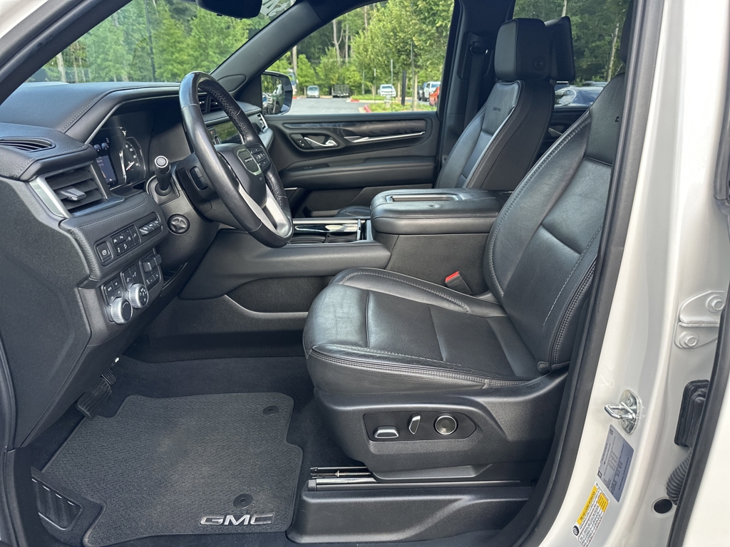 DENALI ULTIMATE PACKAGE 4X4, 4 NEW TIRES, PANORAMIC SUNROOF, POWER RUNNING BOARDS, REAR ENTERTAINMENT DUAL SCREENS, GPS / NAVIGATION, HEADS UP DISPLAY, FACTORY 22 INCH WHEELS, SURROUND VIEW 360 DEGREE CAMERA, ADAPTIVE CRUISE CONTROL, BLIND SPOT & CROSS PATH DETECTION, LANESENSE LANE DEPARTURE WARNING PLUS, MAX TRAILERING PACKAGE, FACTORY TRAILER BRAKE, LEATHER INTERIOR, MIDDLE ROW CAPTAIN CHAIRS, HEATED SEATS, HEATED STEERING WHEEL, VENTILATED FRONT SEATS, BOSE AUDIO, SATELLITE RADIO, KEYLESS ENTRY, PUSH BUTTON START, REMOTE START, SIDE AIRBAGS, POWER LIFTGATE, FRONT & REAR PARK ASSIST SENSORS, BLUETOOTH, STEERING WHEEL MOUNTED AUDIO CONTROLS, DUAL POWER SEAT WITH DRIVER MEMORY, DUAL ZONE FRONT CLIMATE, REAR ZONE CLIMATE, FACTORY SECURITY SYSTEM, POWER TELESCOPING STEERING WHEEL, FOG LAMPS, TOWING PACKAGE / HITCH, TIRE PRESSURE MONITORING DISPLAY, ALL POWER AND MUCH MORE, CARFAX CERTIFIED, 1 OWNER, EXTENDED WARRANTY AVAILABLE. White Frost Tricoat 2021 GMC Yukon Denali EcoTec3 6.2L V8 4WDMUST MENTION OR PRESENT AD AT TIME OF PURCHASE TO RECEIVE THE ADVERTISED PRICE. Welcome to Palmer DCJR! We are proud to be a family-owned business serving the greater Roswell area for 30 years. Here at Palmer, we make customer service our top priority. We are also pleased to be able to offer a buying process that can be completed from start to finish online! We will deliver your new vehicle right to your door. Whether you are in search of your next car or looking for a service center you can trust, Palmer Dodge Chrysler Jeep Ram is the place to go. Give us a call, fill out our online form, or stop by for an incredible automotive experience today! THE ADVERTISED PRICE INCLUDES ALL INCENTIVES INCLUDING IRS EV CREDIT BUT DOES NOT INCLUDE SALES TAX, VEHICLE REGISTRATION FEES, OTHER FEES REQUIRED BY LAW, OR FINANCE CHARGES. SOME OFFERS INCLUDE FINANCING WITH APPROVED LENDERS FOR ADVERTISED PRICE. Palmer Dodge is proudly serving... Atlanta, Buckhead, Duluth, Suwanee, Alpharetta, Cumming, Gainesville, Flowery Branch, Buford, Roswell, Jasper, Canton, Woodstock, Peachtree, Ball Ground, Jefferson, Athens, Augusta, Buford, Conyers, Decatur, Tucker, Milton, Douglasville, Alpharetta, Marietta, Sandy Springs, Dunwoody, Johns Creek, Lawrenceville, Lilburn, Chamblee, Stone Mountain, Vinings, Norcross, Oakwood, Sugar Hill, Athens, Kennesaw, Dawsonville. We also service the following states... Georgia, Florida, Alabama, South Carolina, North Carolina, Mississippi, & more.